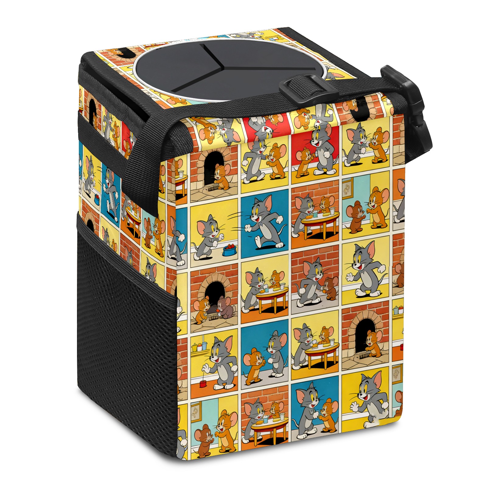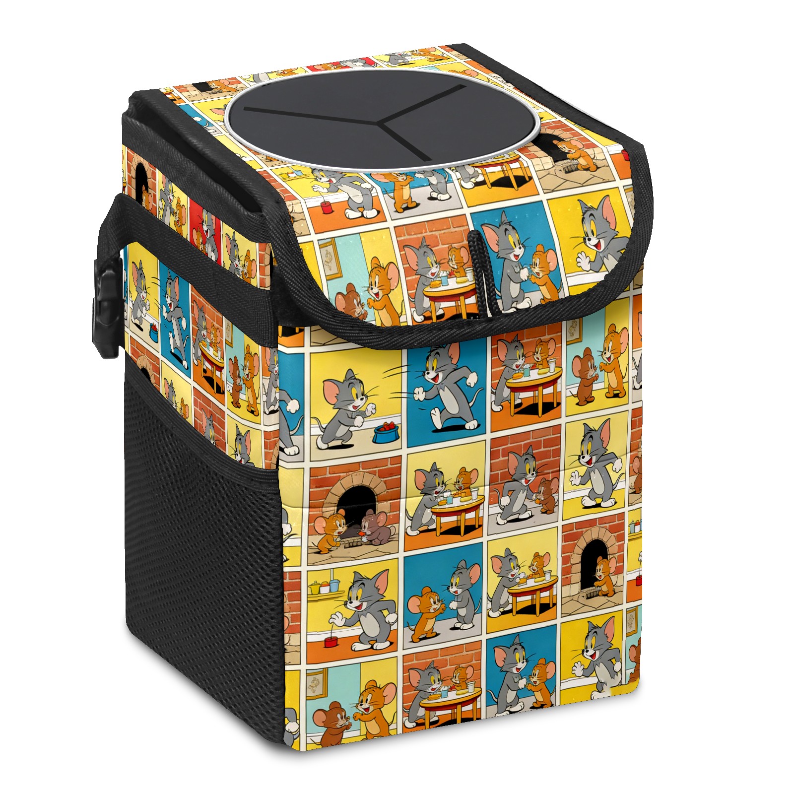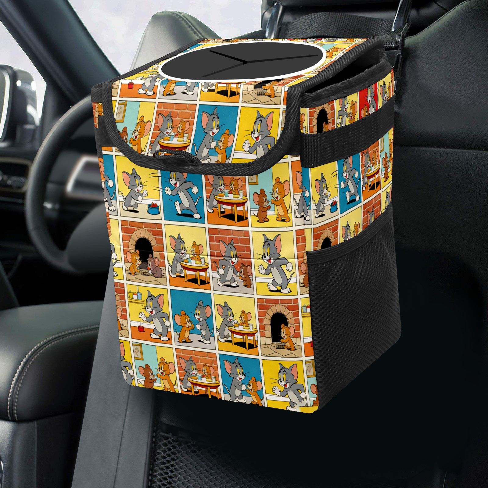 • Эта многофункциональная автомобильная мусорная корзина отличается стильным принтом, сочетающим в себе практичность и эстетику. Изготовленная из высококачественной саржевой ткани с плетеными ремнями, она прочная, долговечная и износостойкая. Размеры корзины составляют 24×17×16 см (9,5×6,7×6,3 дюйма). Верхнее отверстие имеет прорезиненное покрытие для удобной утилизации мусора; боковые сетчатые карманы и передний карман обеспечивают удобное хранение закусок, телефонов и других мелких предметов.