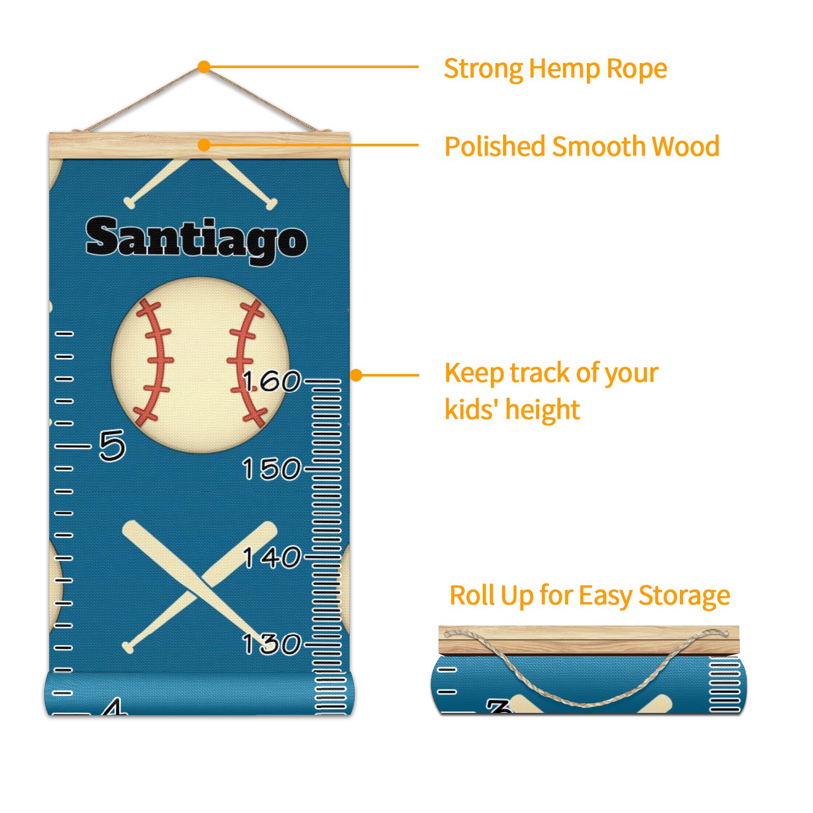 Personalized Kids Name Growth Chart Ruler for Wall Wood Frame Canvas Height Measure Chart 13.4x56 in Hanging Growth Chart Baseball And Baseball Bat Sport2.9 Boys Girls Room Decor