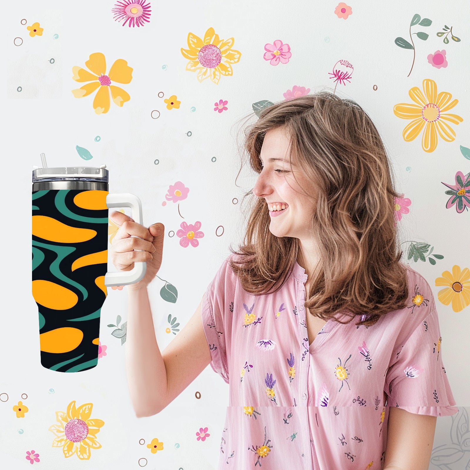 40 унций полностью напечатанный автомобильный стакан Color Waves
