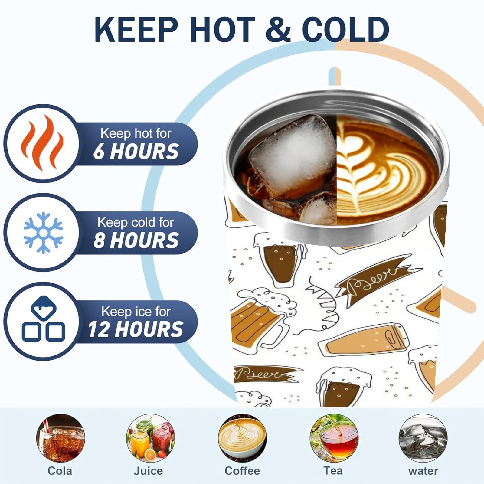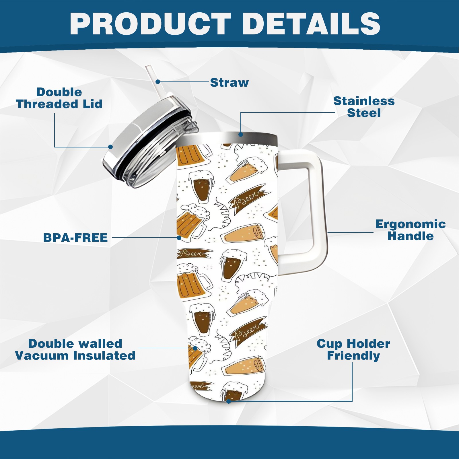 40 унций полностью напечатанный автомобильный стакан Beer Icons