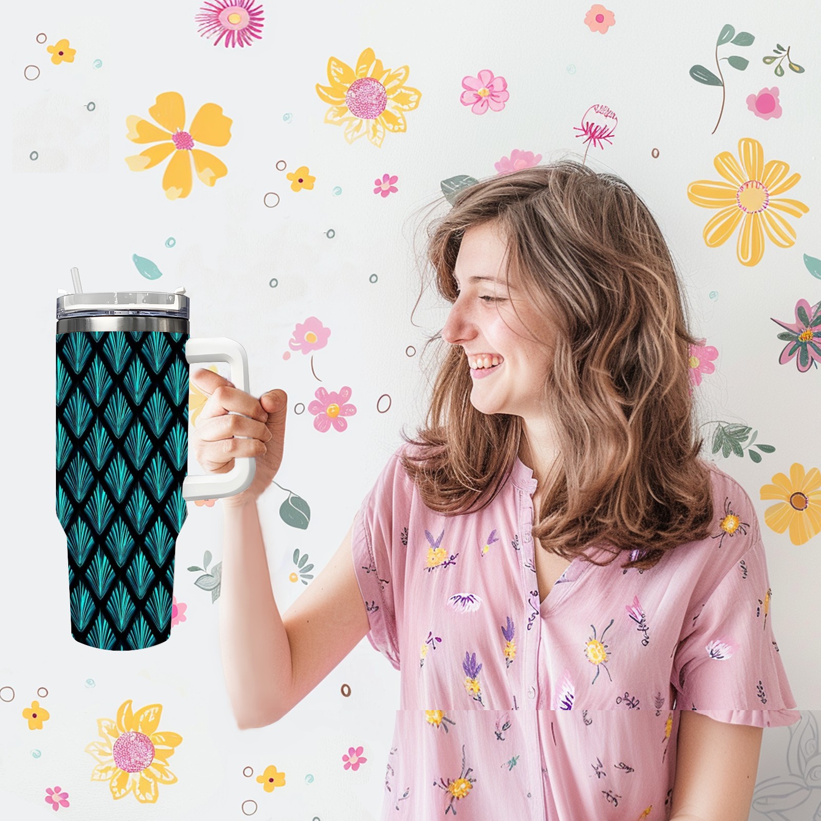 40 унций полностью напечатанный автомобильный стакан Teal Feathers
