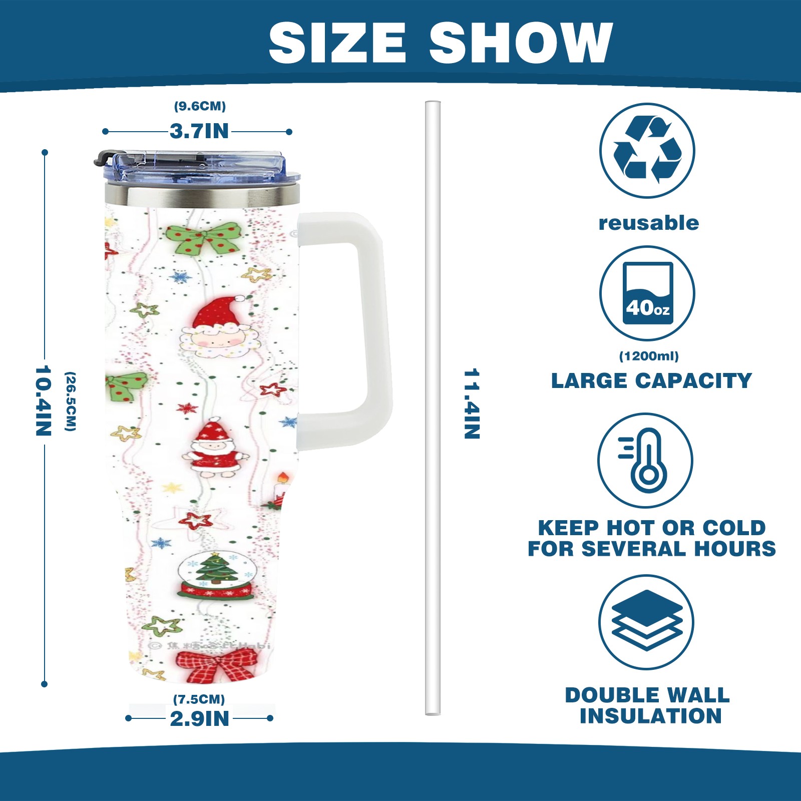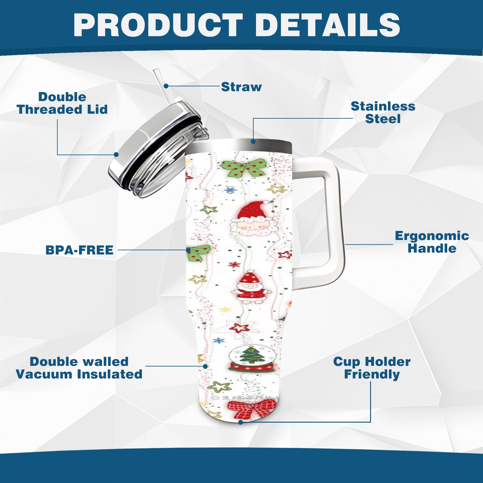 40 унций полностью напечатанный автомобильный стакан Merry Christmas