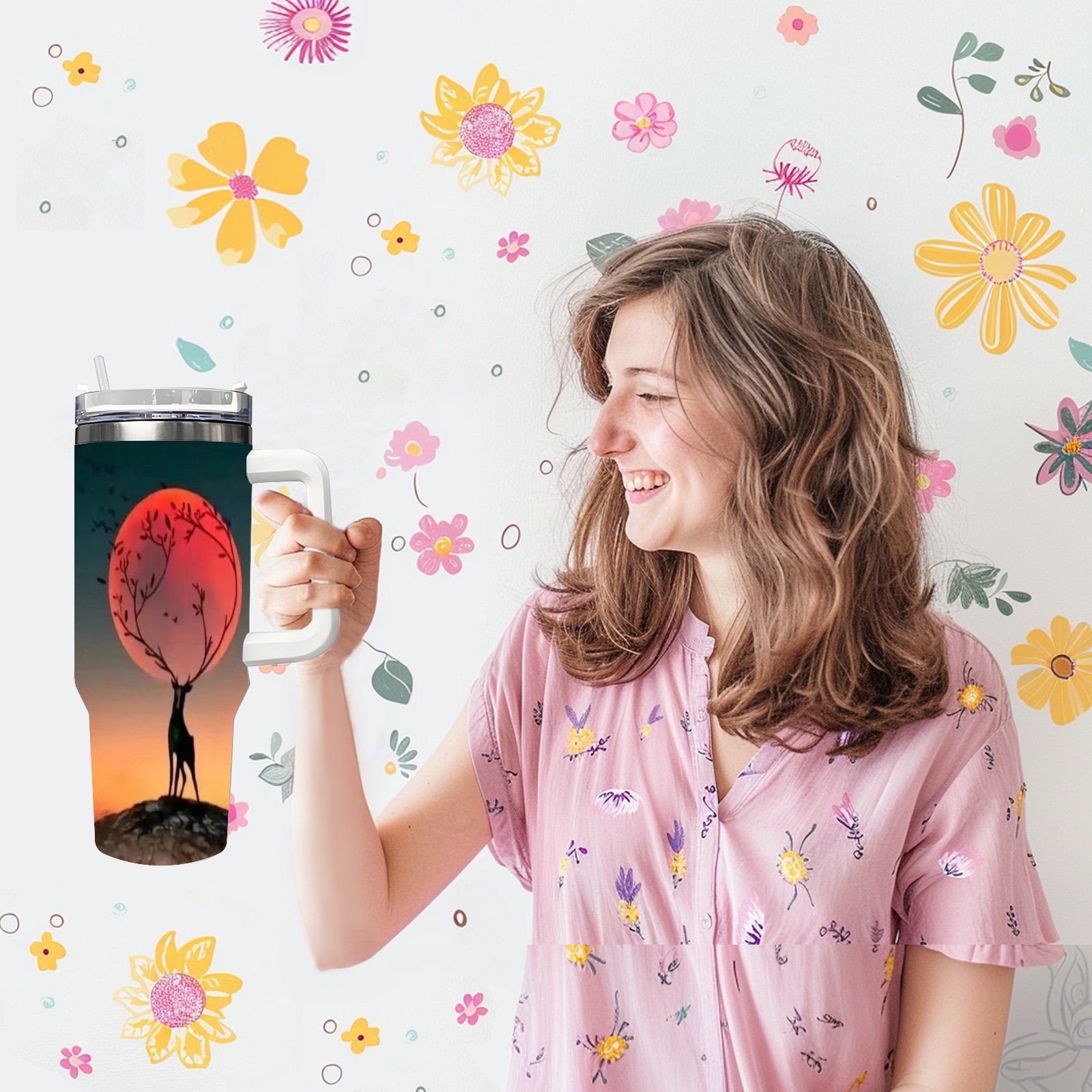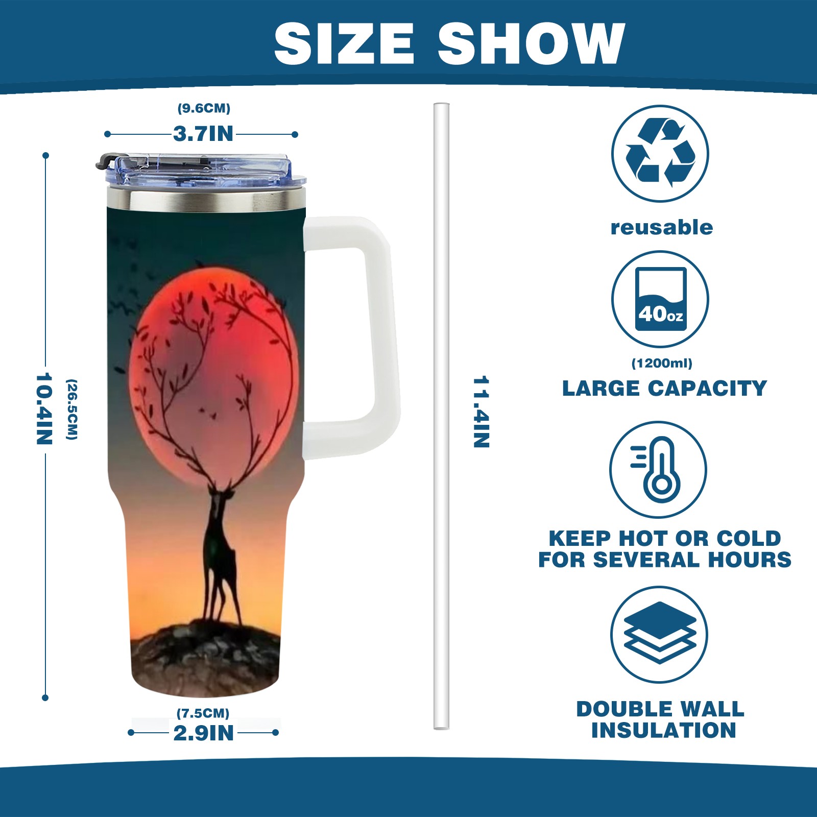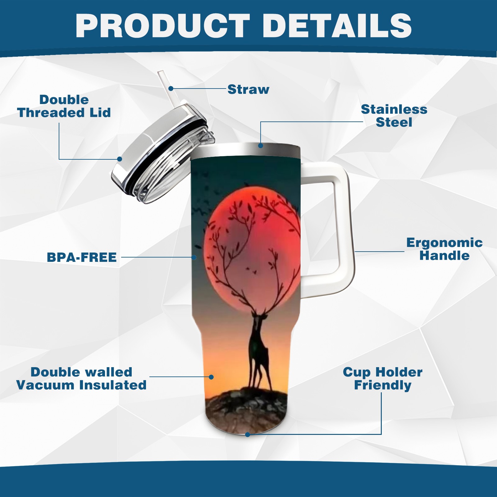 40 унций полностью напечатанный автомобильный стакан Moon Deer