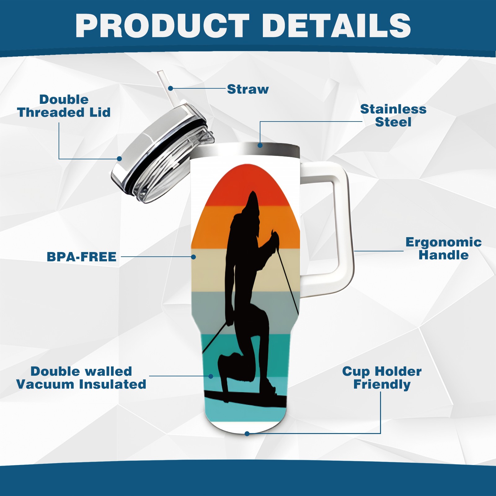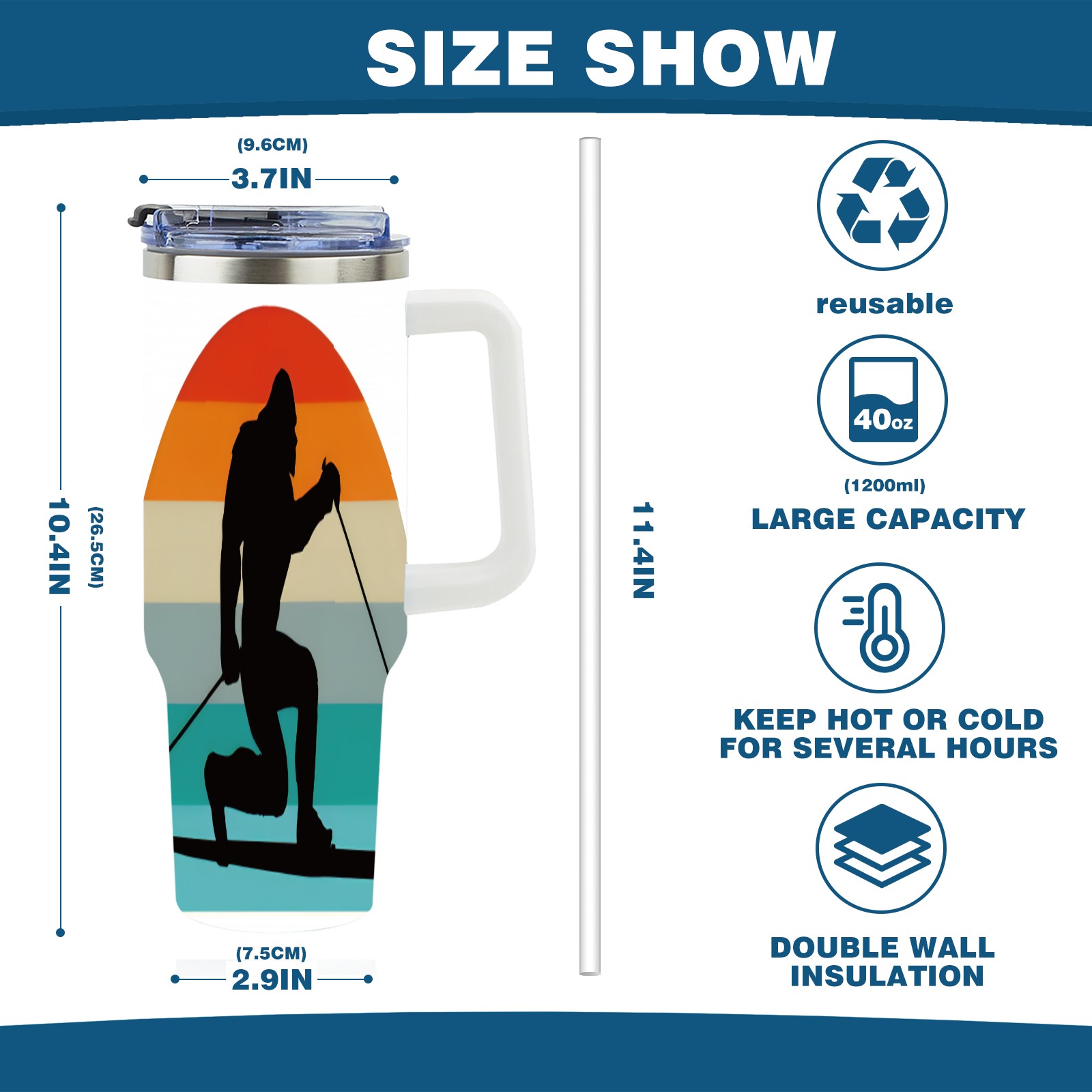• С большой емкостью 40 унций, он обеспечивает вас гидратацией в течение всего дня, идеально подходит для воды, кофе, сока или других напитков. Эргономичный дизайн идеально вписывается в автомобильные держатели для бутылок, а прочный, герметичный колпачок предотвращает утечки во время передвижения. Путешествие. Антискользящее основание обеспечивает устойчивость, а гладкие поверхности делают уборку легкой — просто мойте вручную или кладите в посудомоечную машину (рекомендуется верхний поддон).