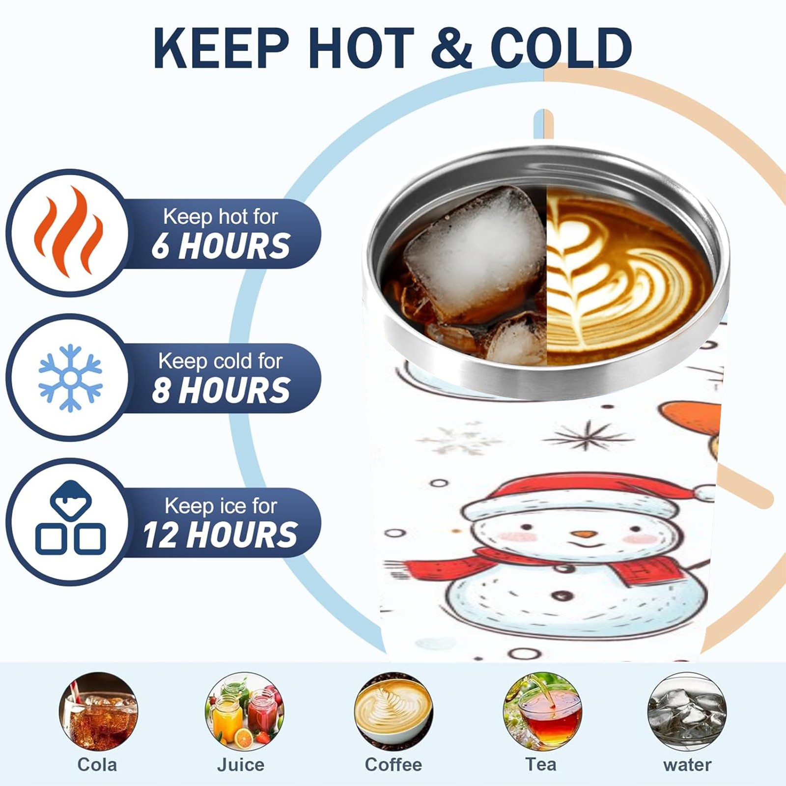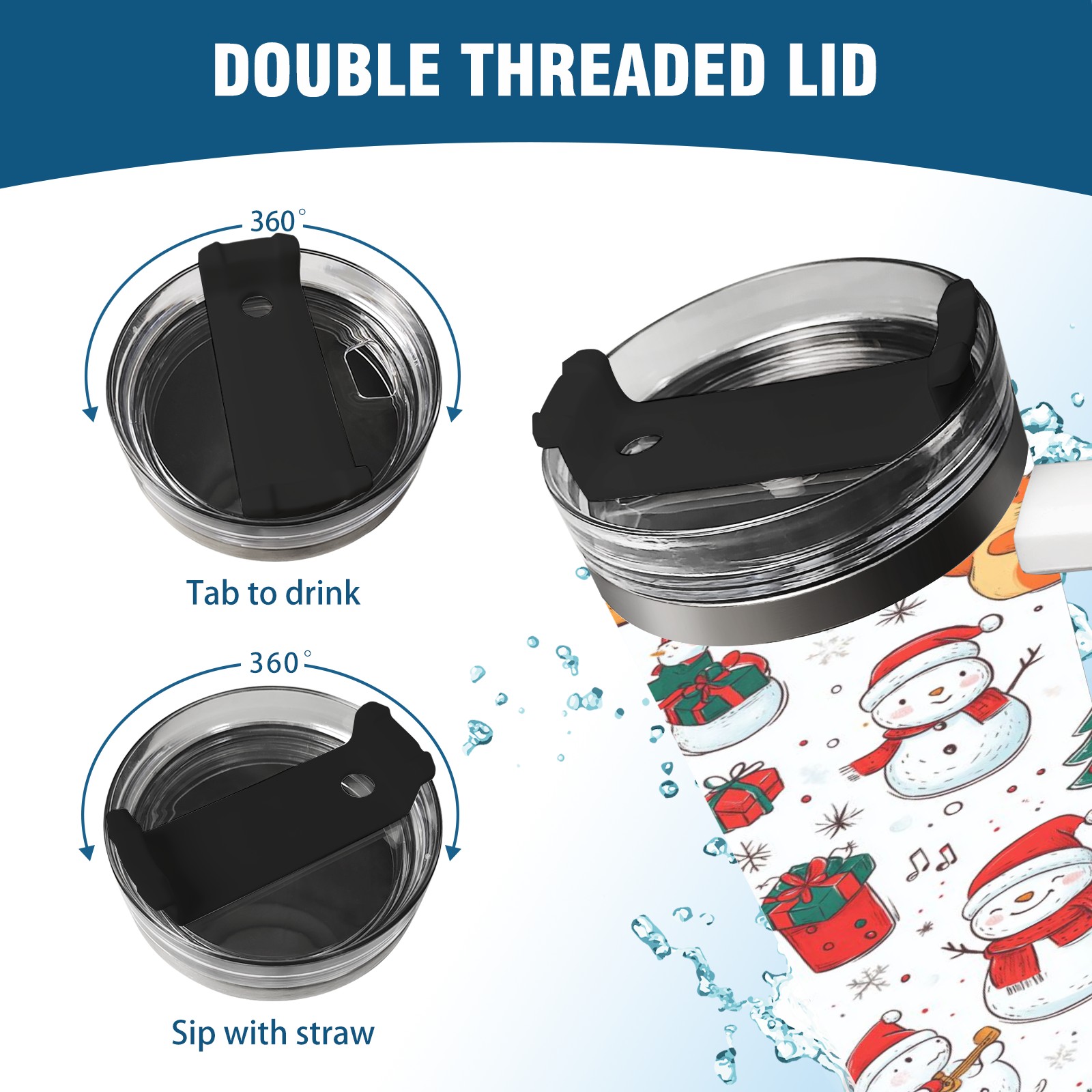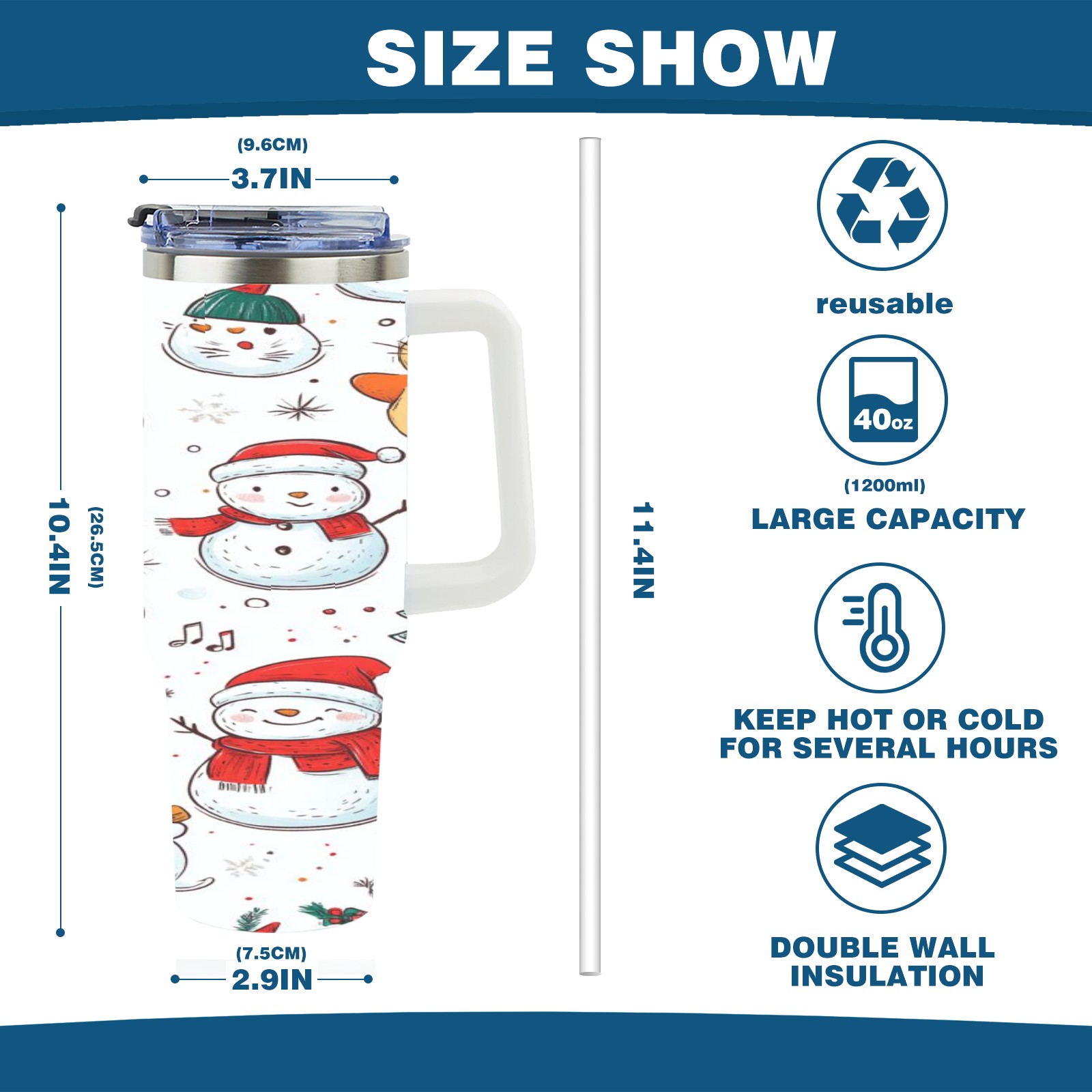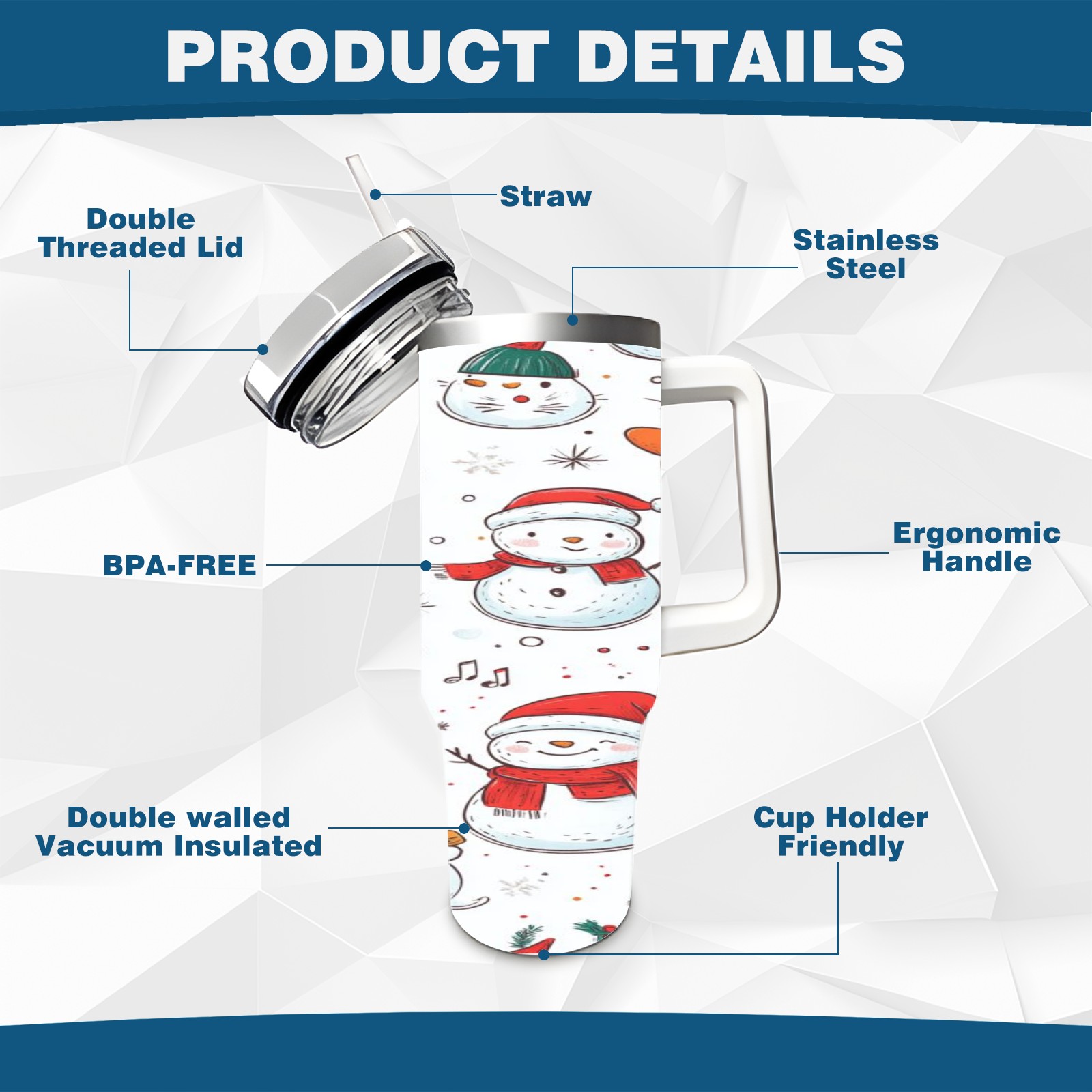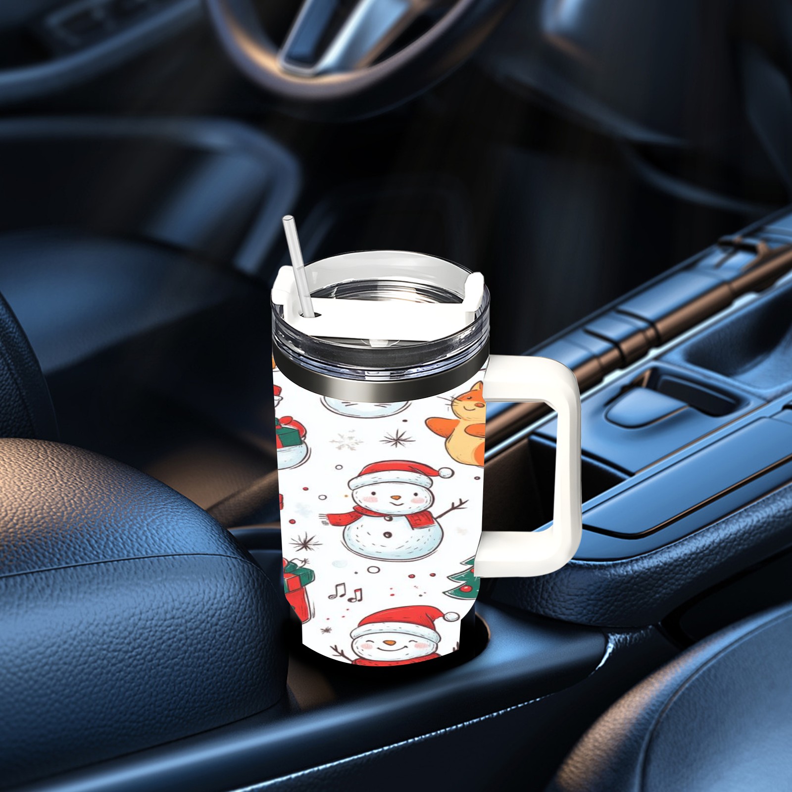40 унций полностью напечатанный автомобильный стакан Christmas Snowmen And Cat