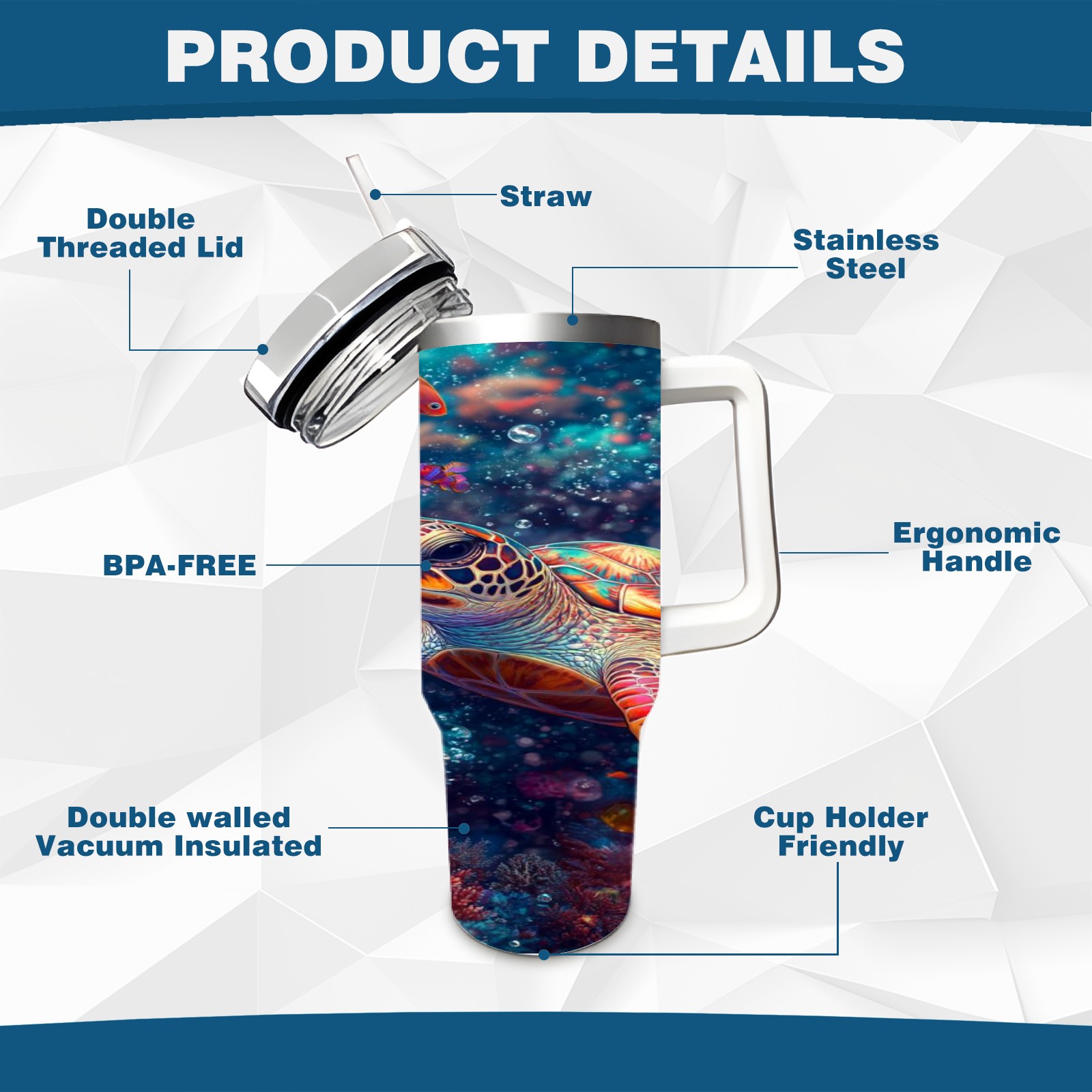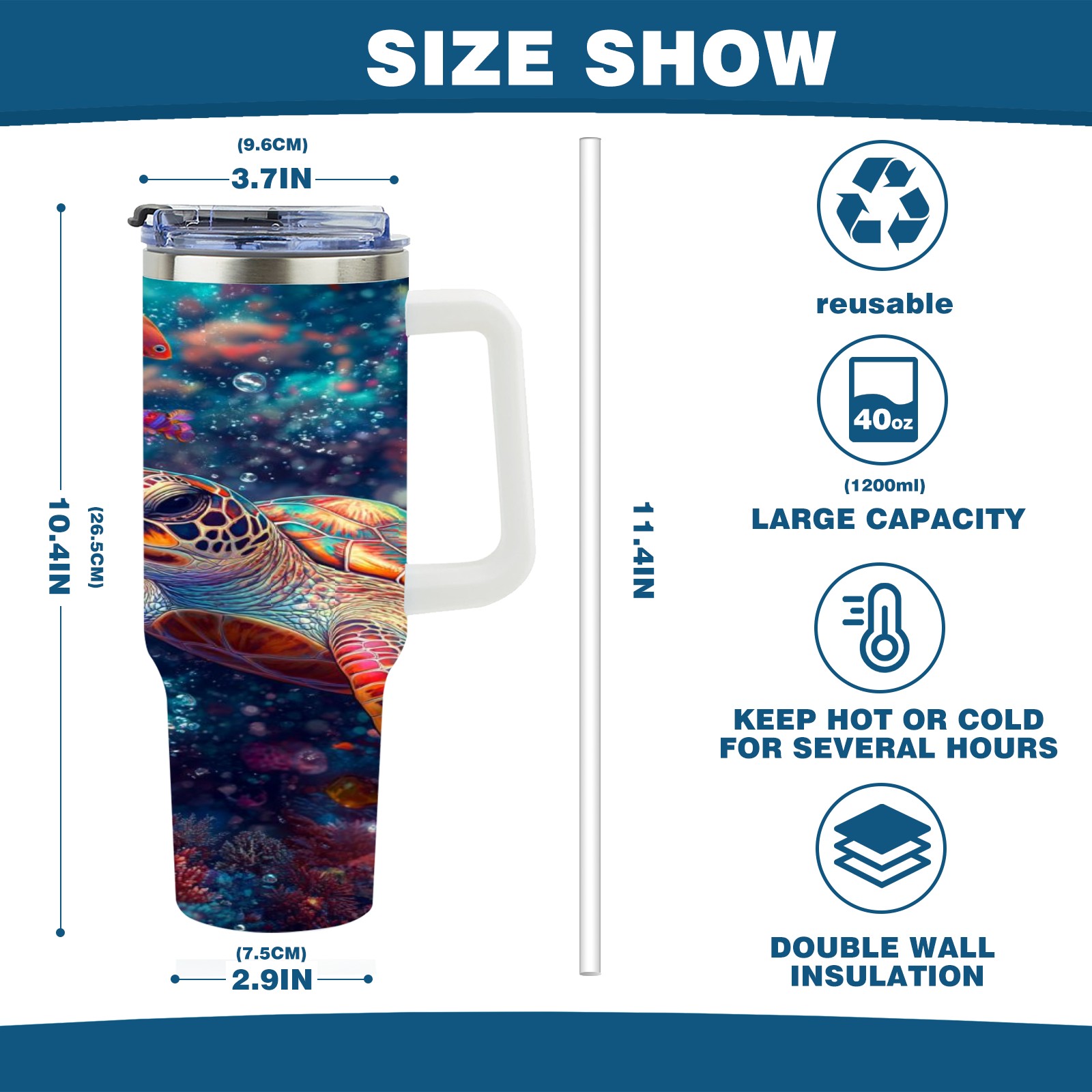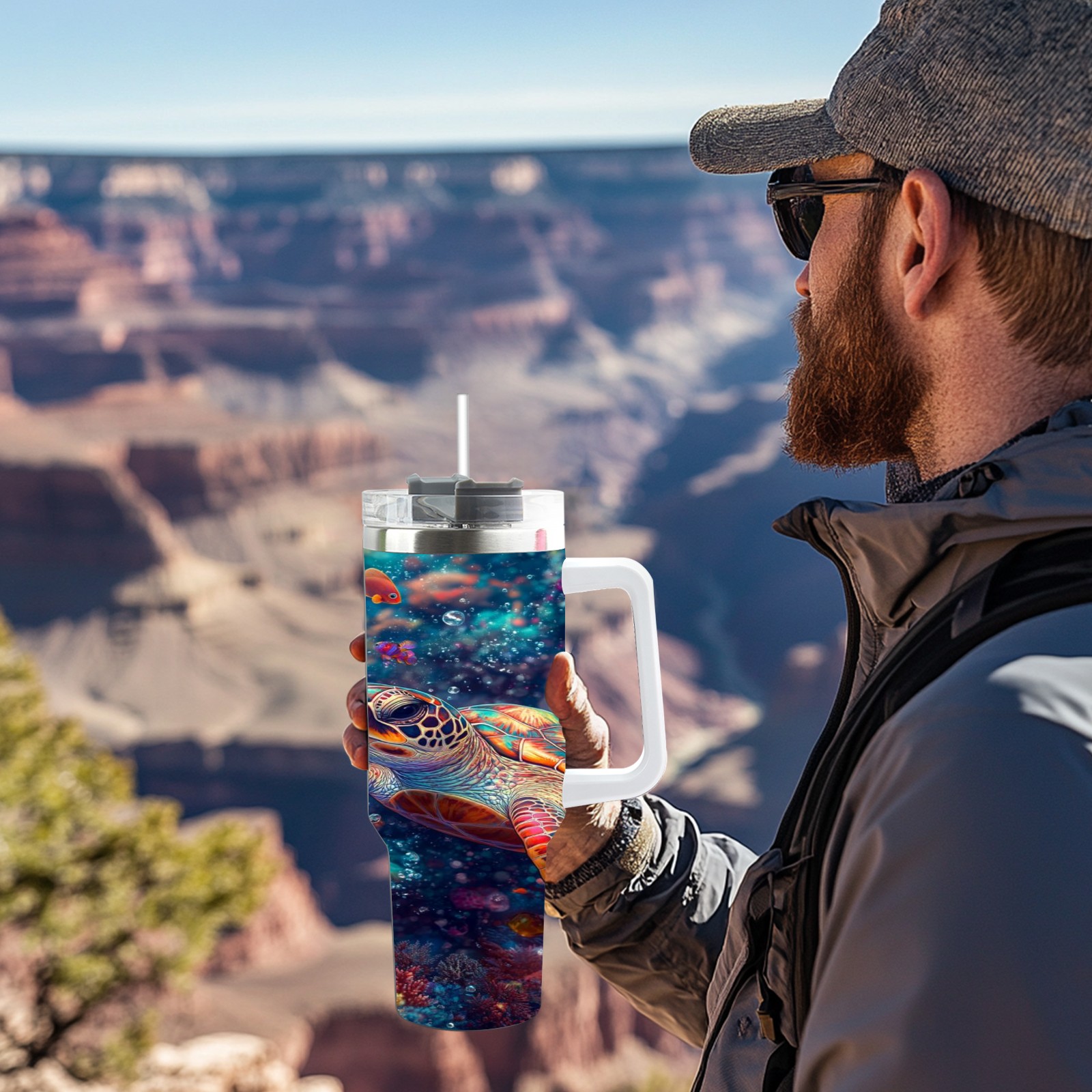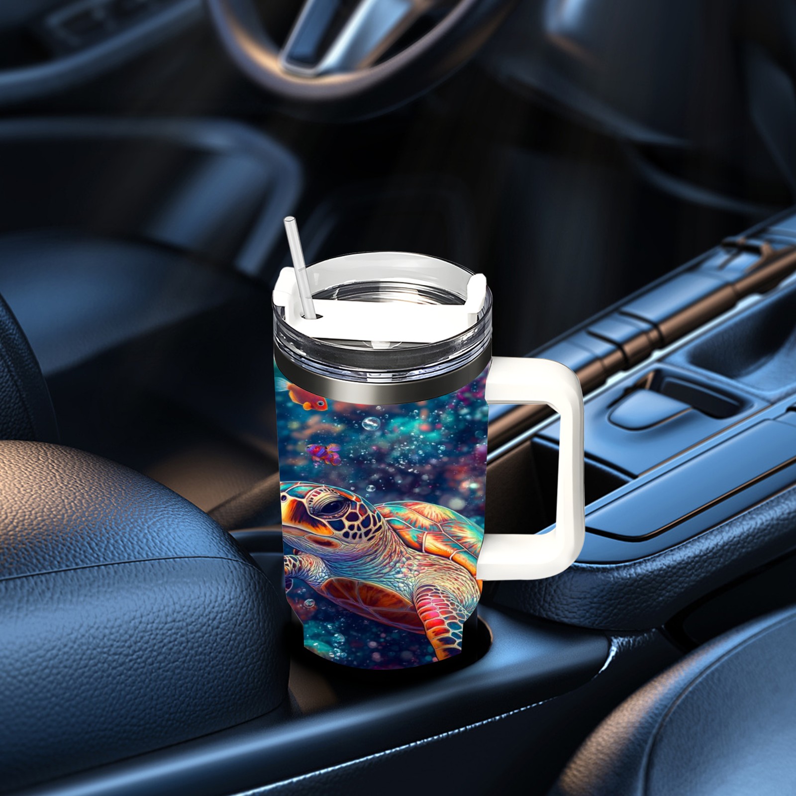40 унций полностью напечатанный автомобильный стакан Colorful Coral Sea Turtle