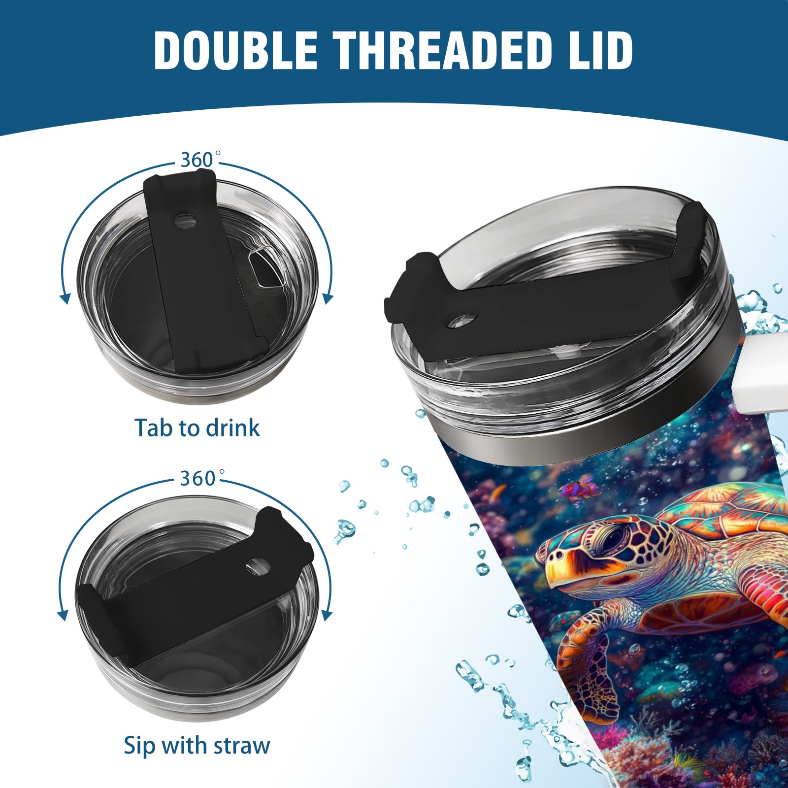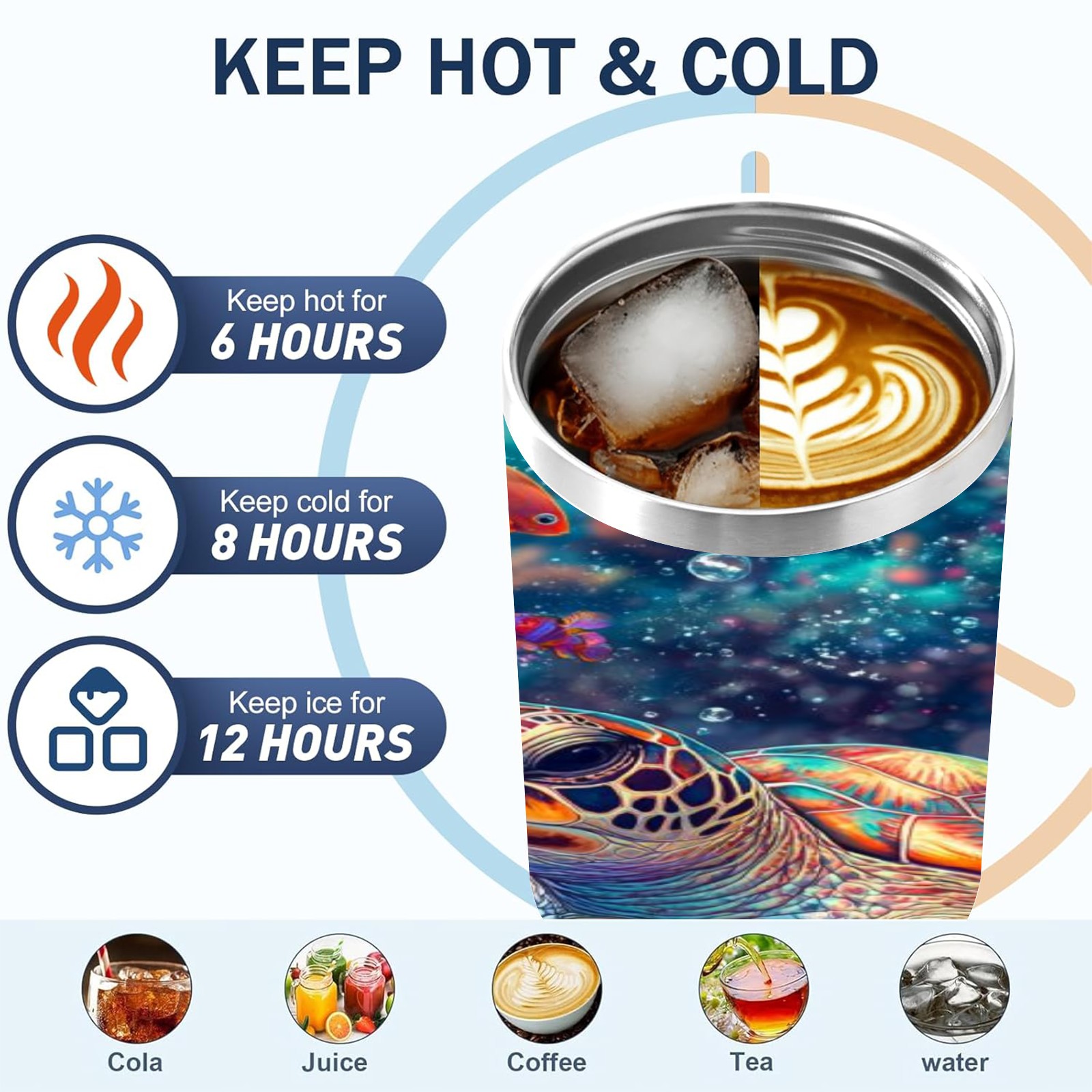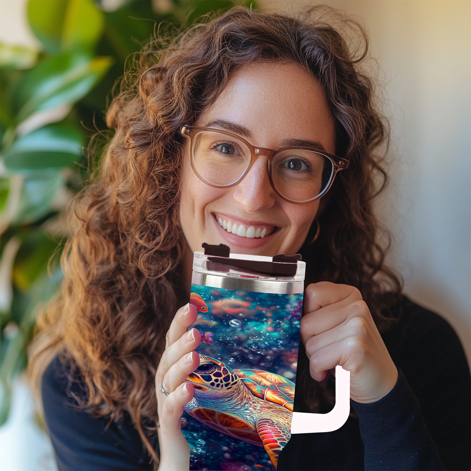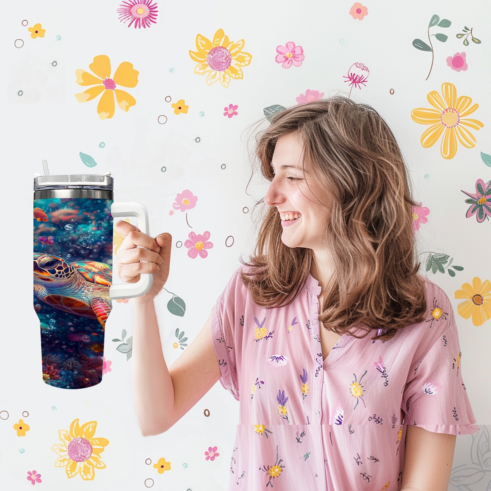 40 унций полностью напечатанный автомобильный стакан Colorful Coral Sea Turtle