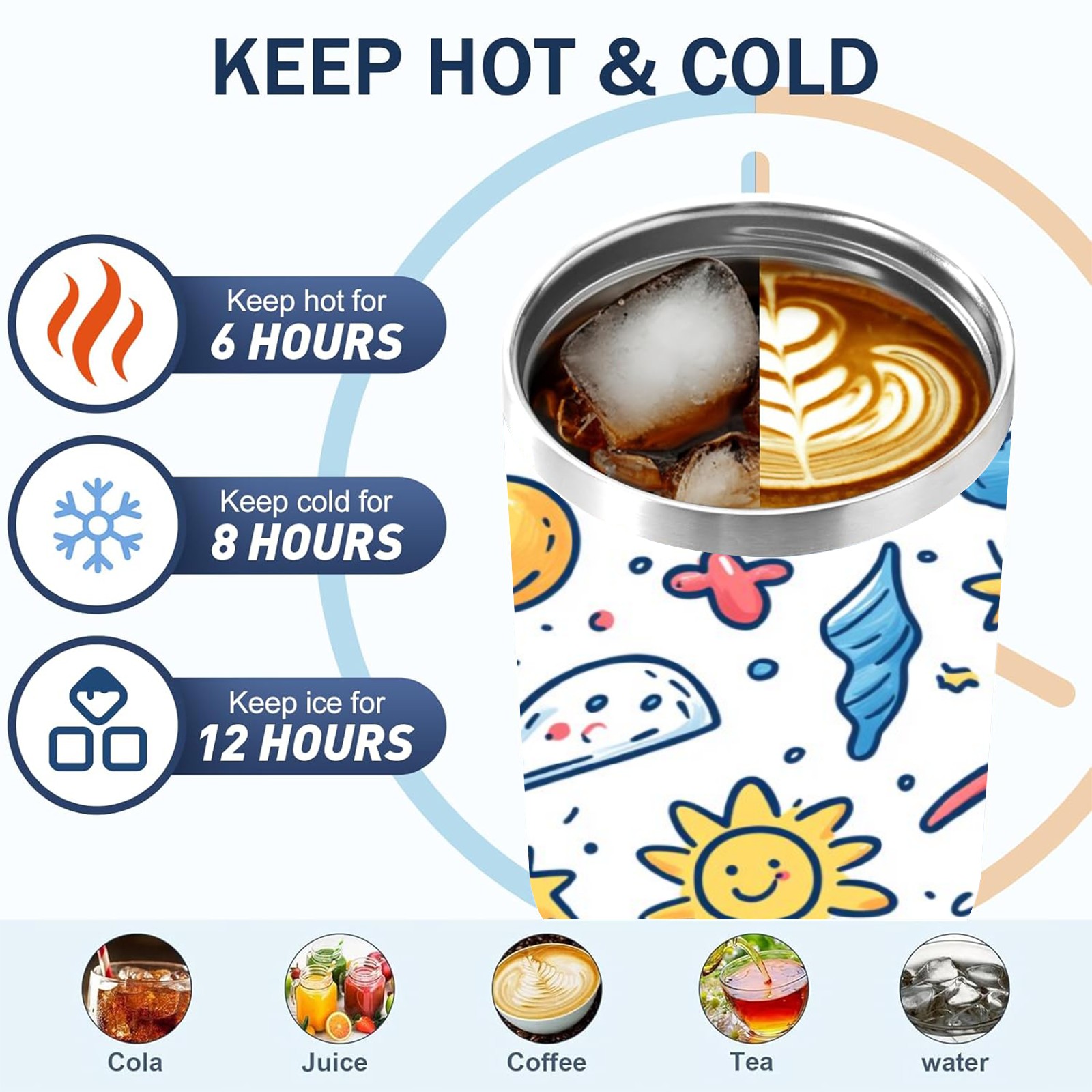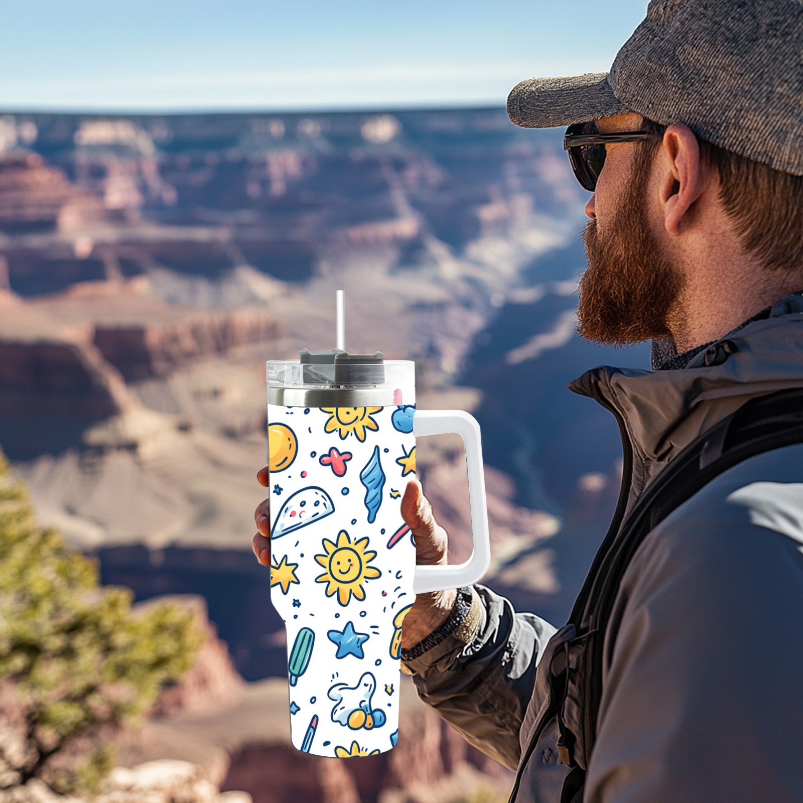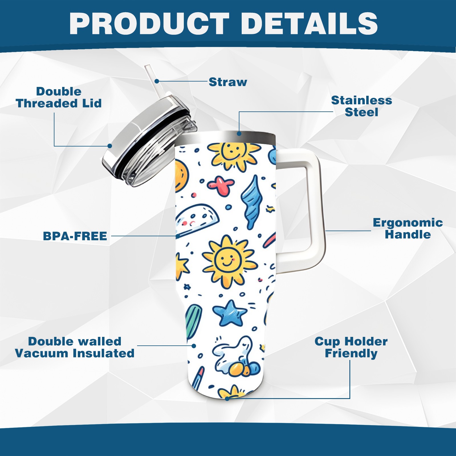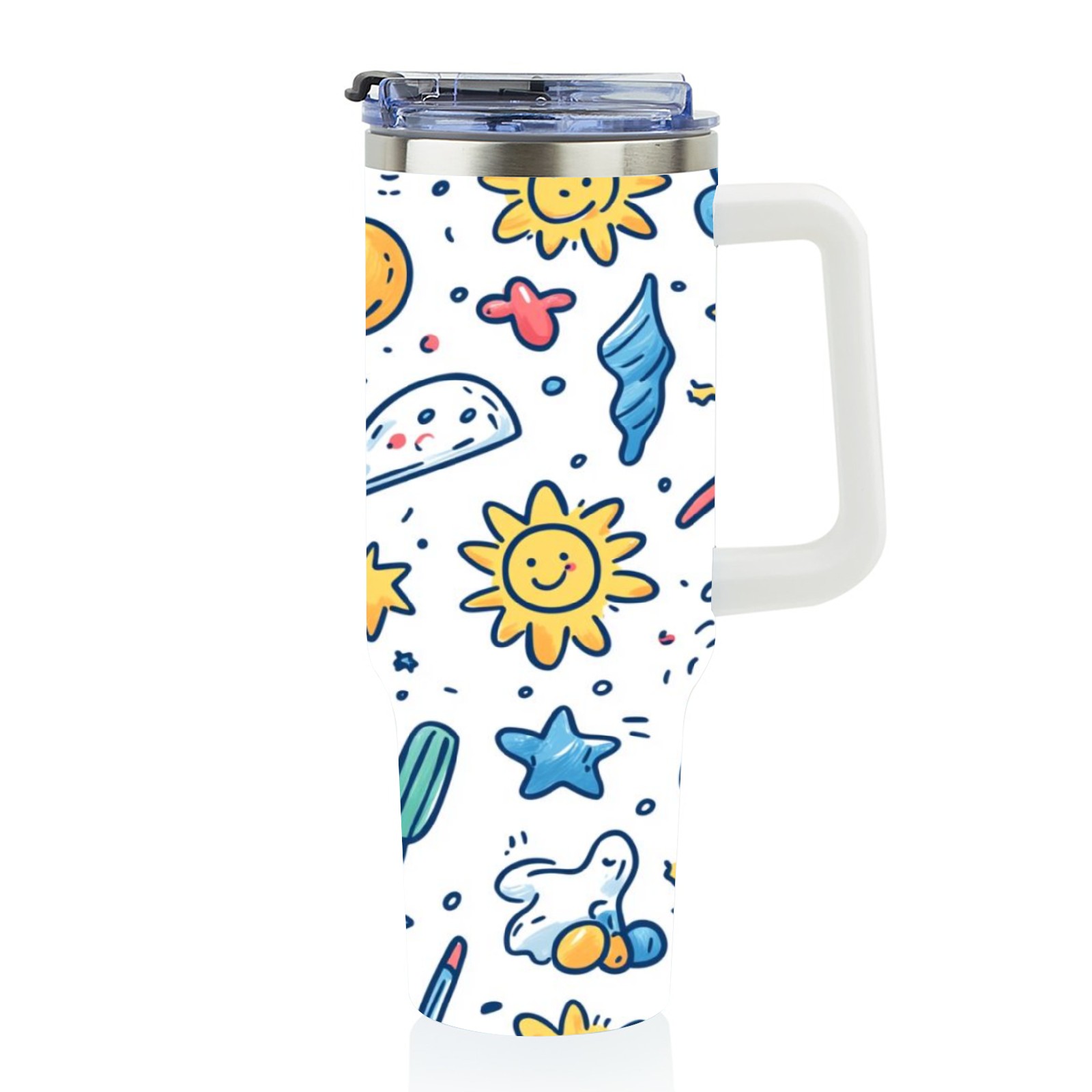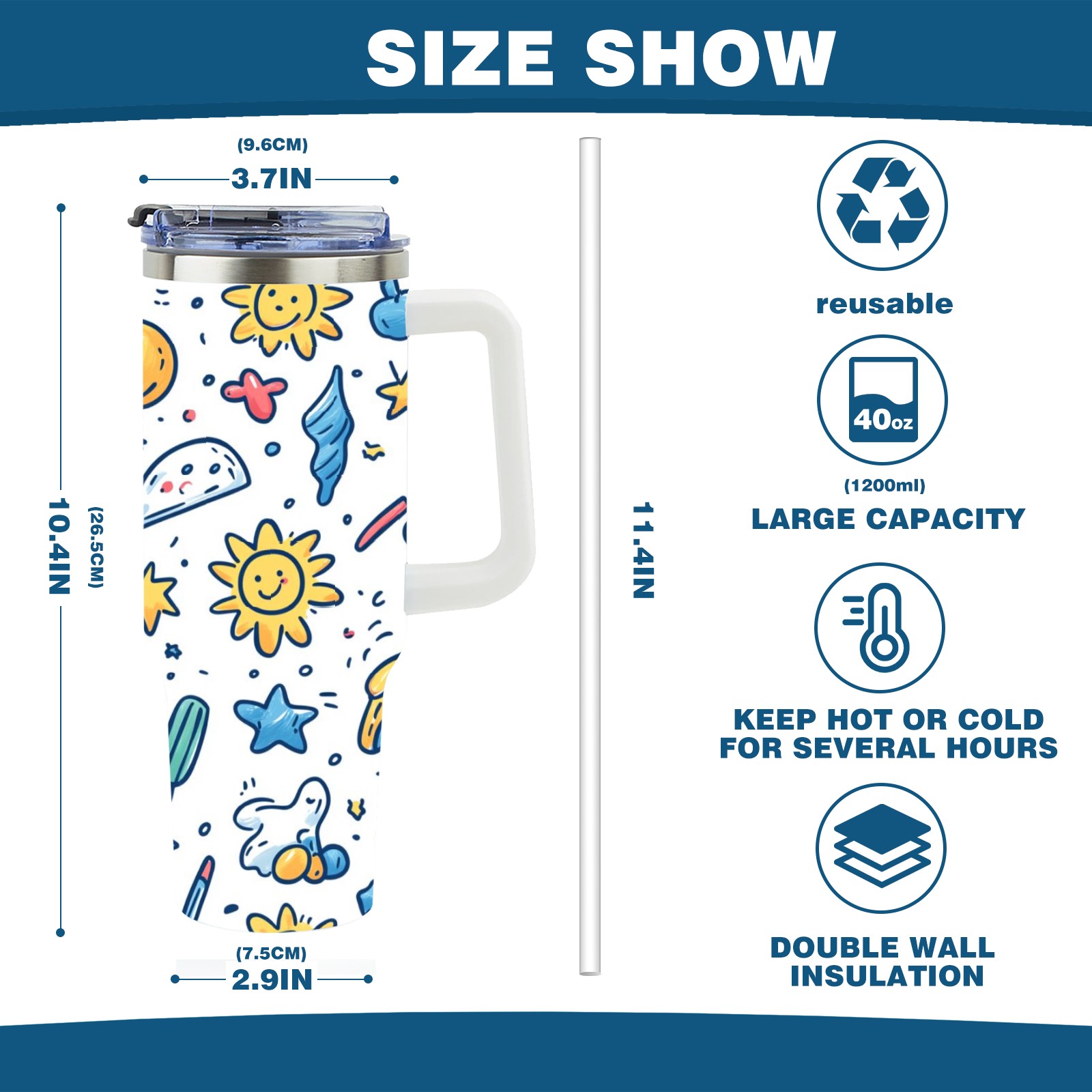 40 унций полностью напечатанный автомобильный стакан Cartoon Items, Stars And Sun Elements Pattern