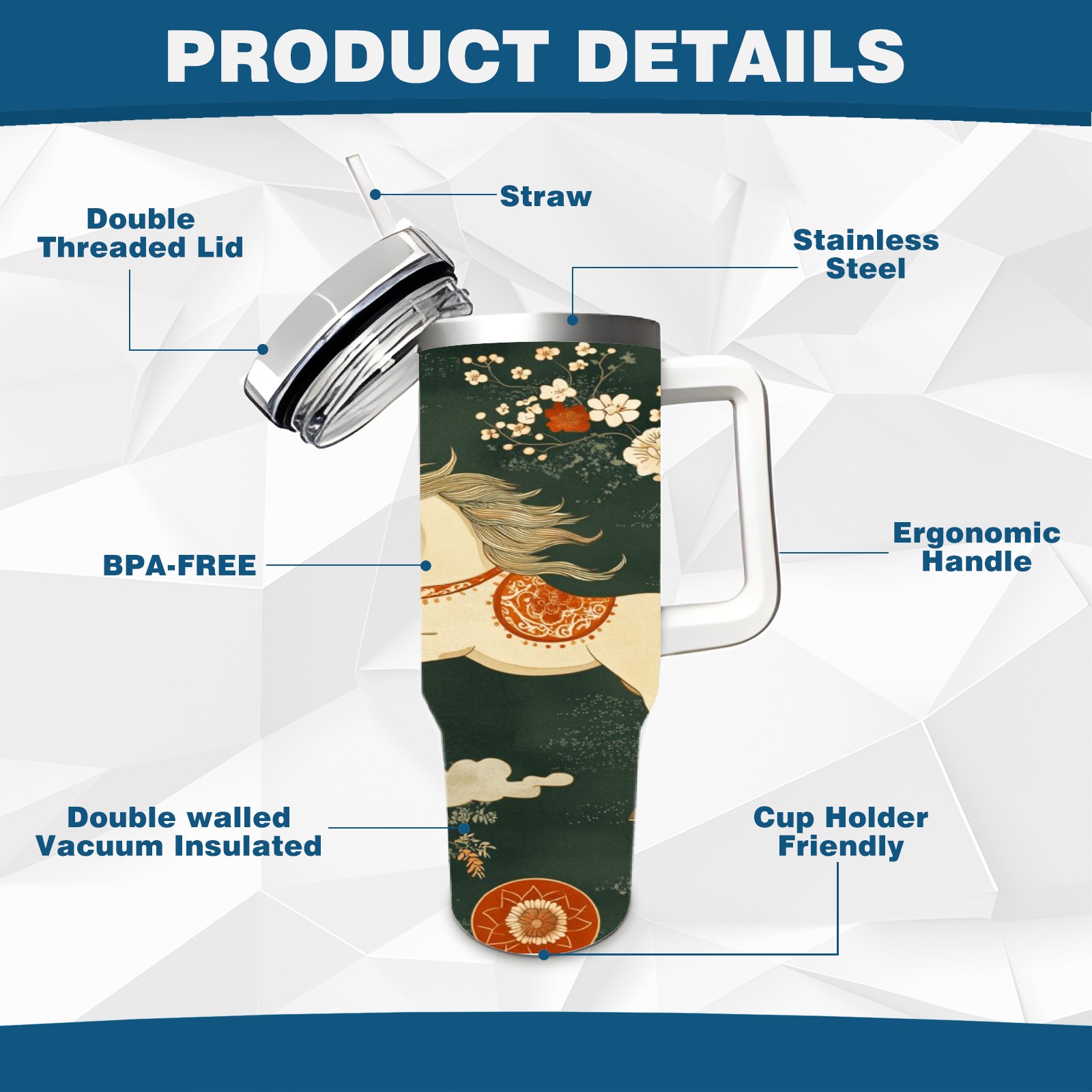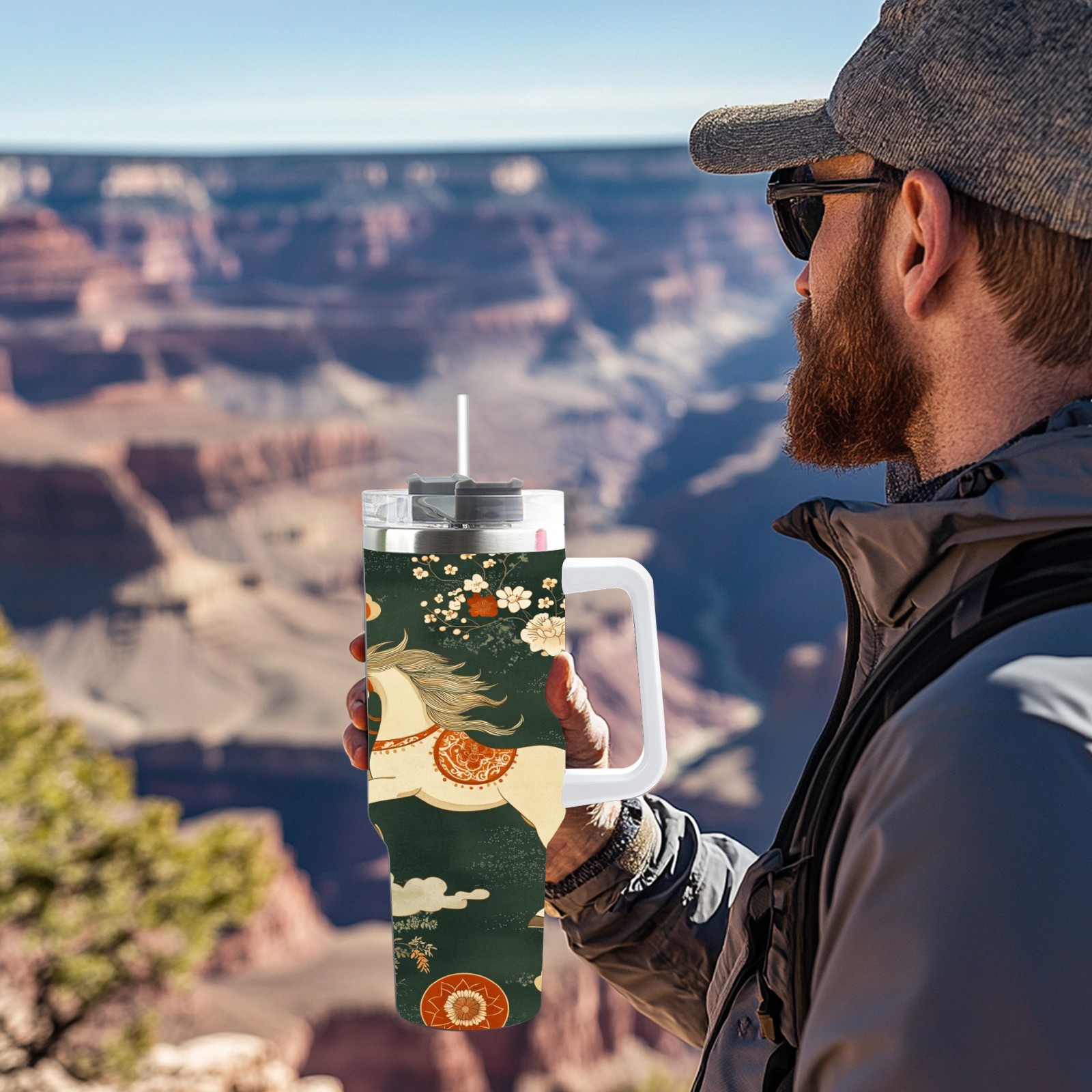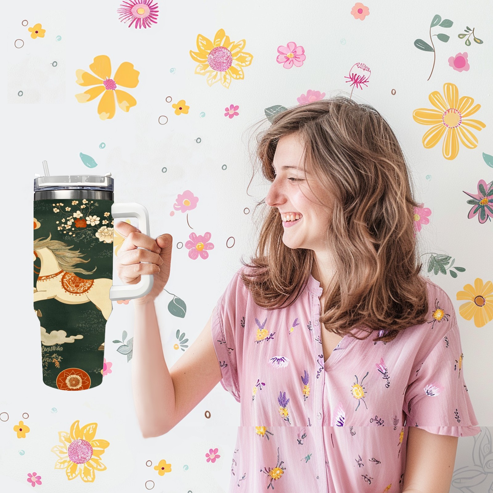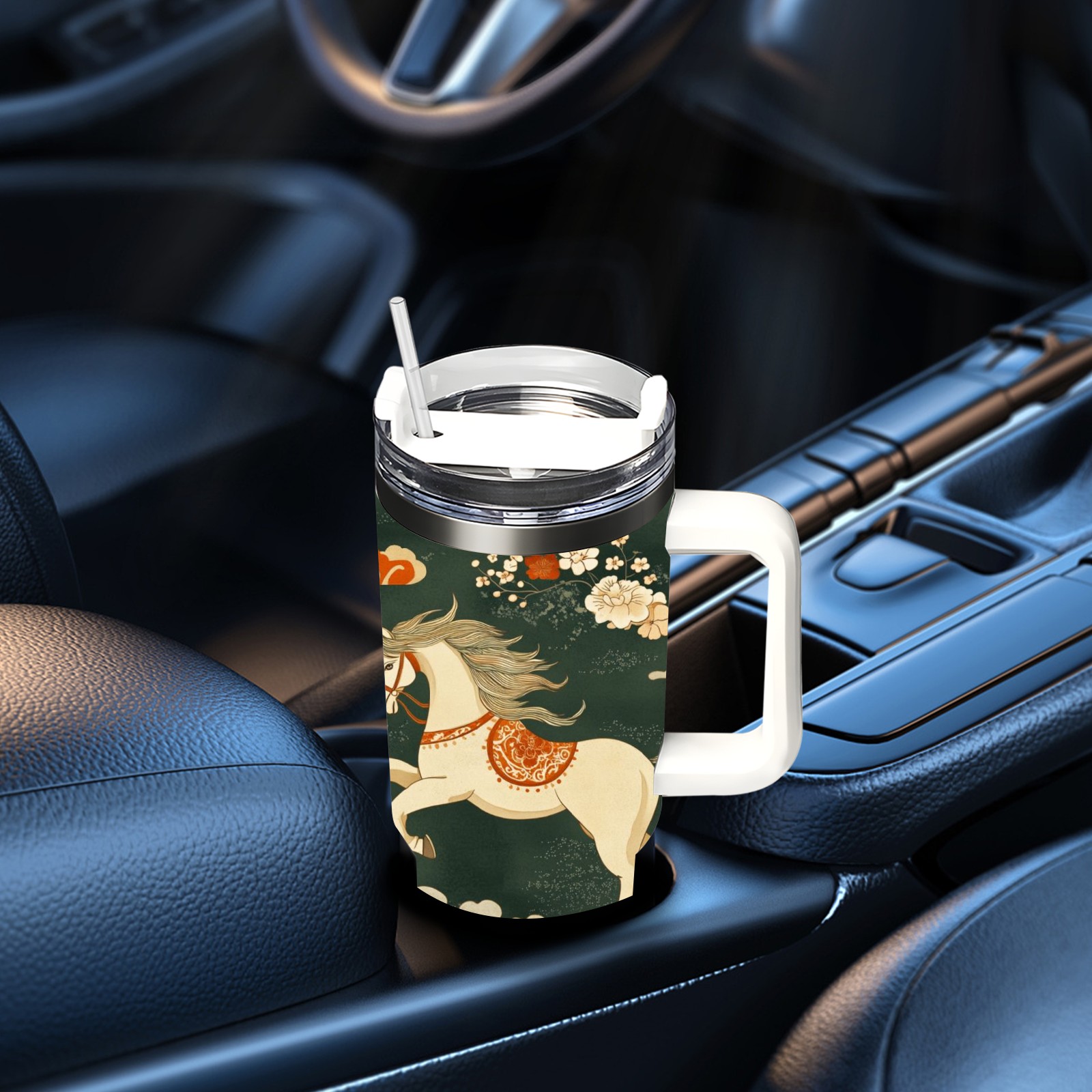 40 унций полностью напечатанный автомобильный стакан Floral Horse