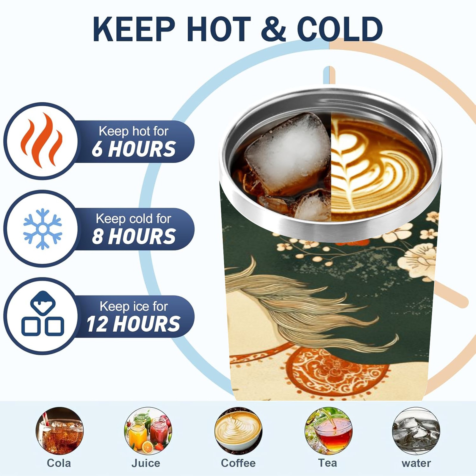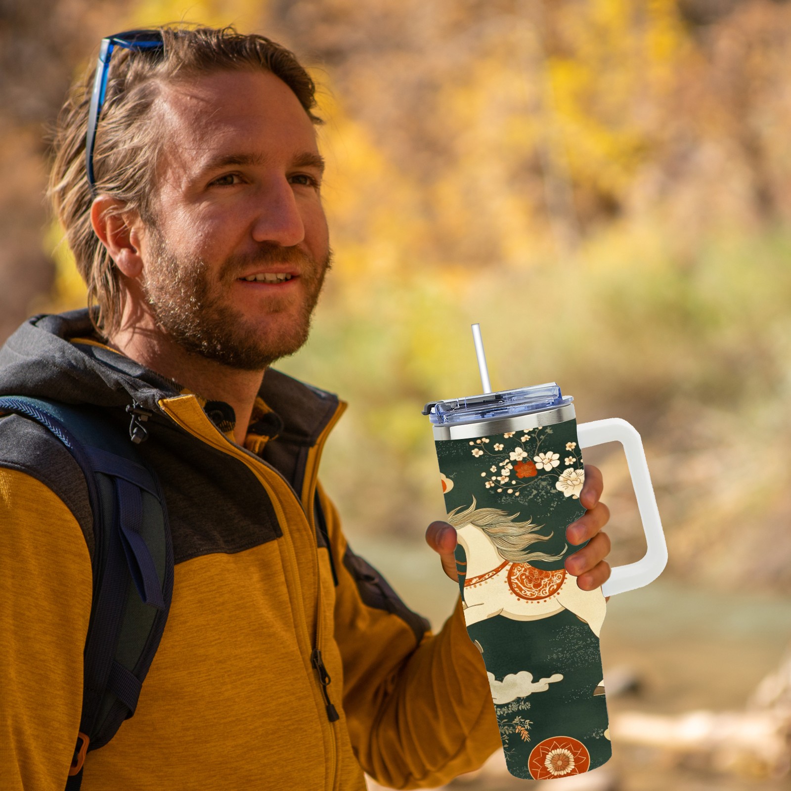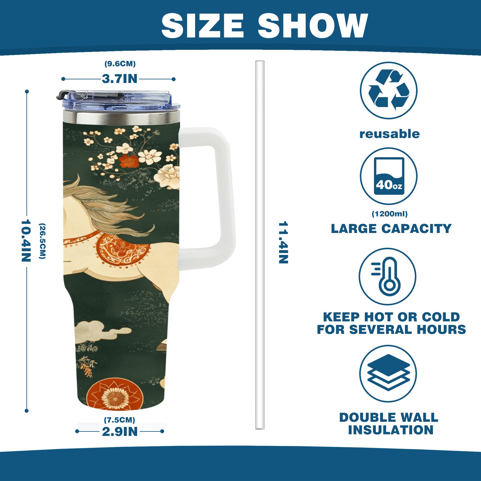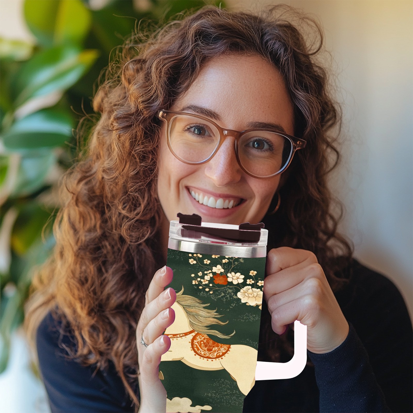 40 унций полностью напечатанный автомобильный стакан Floral Horse