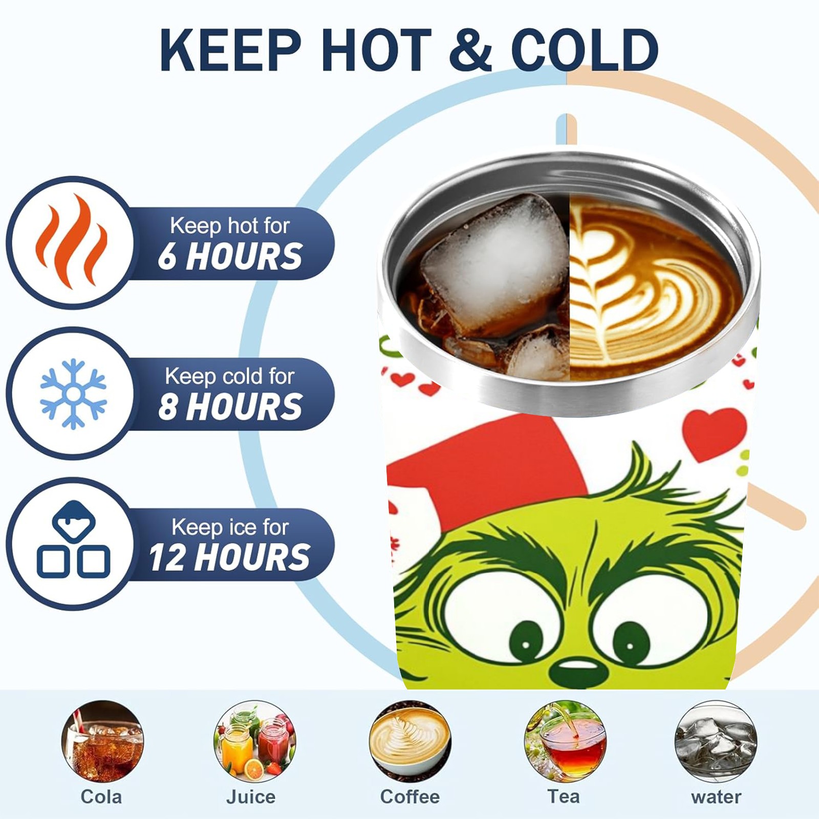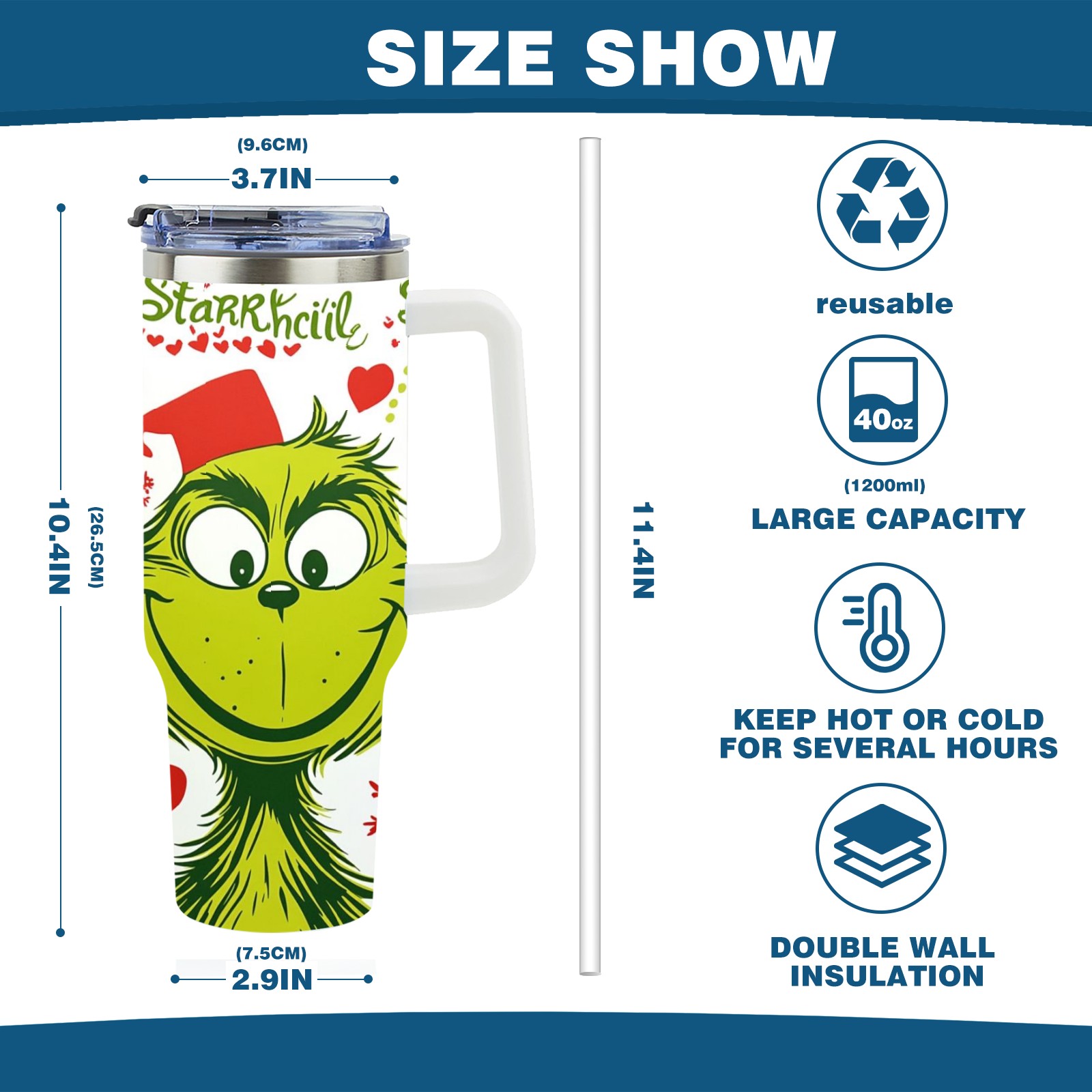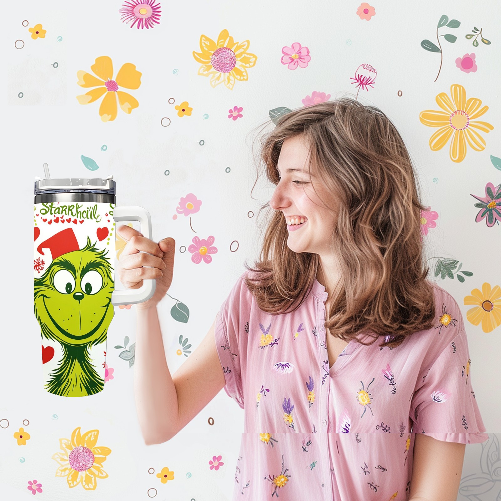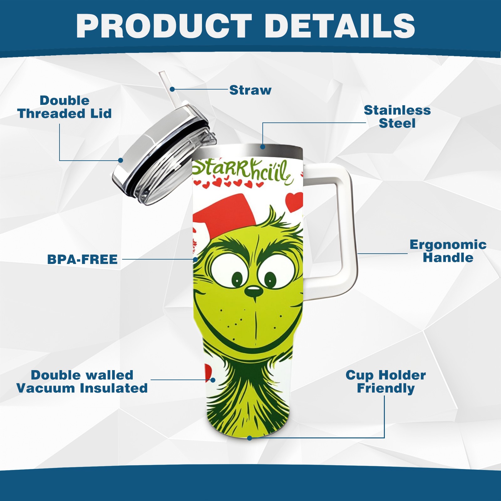 40 унций полностью напечатанный автомобильный стакан Christmas Grinch
