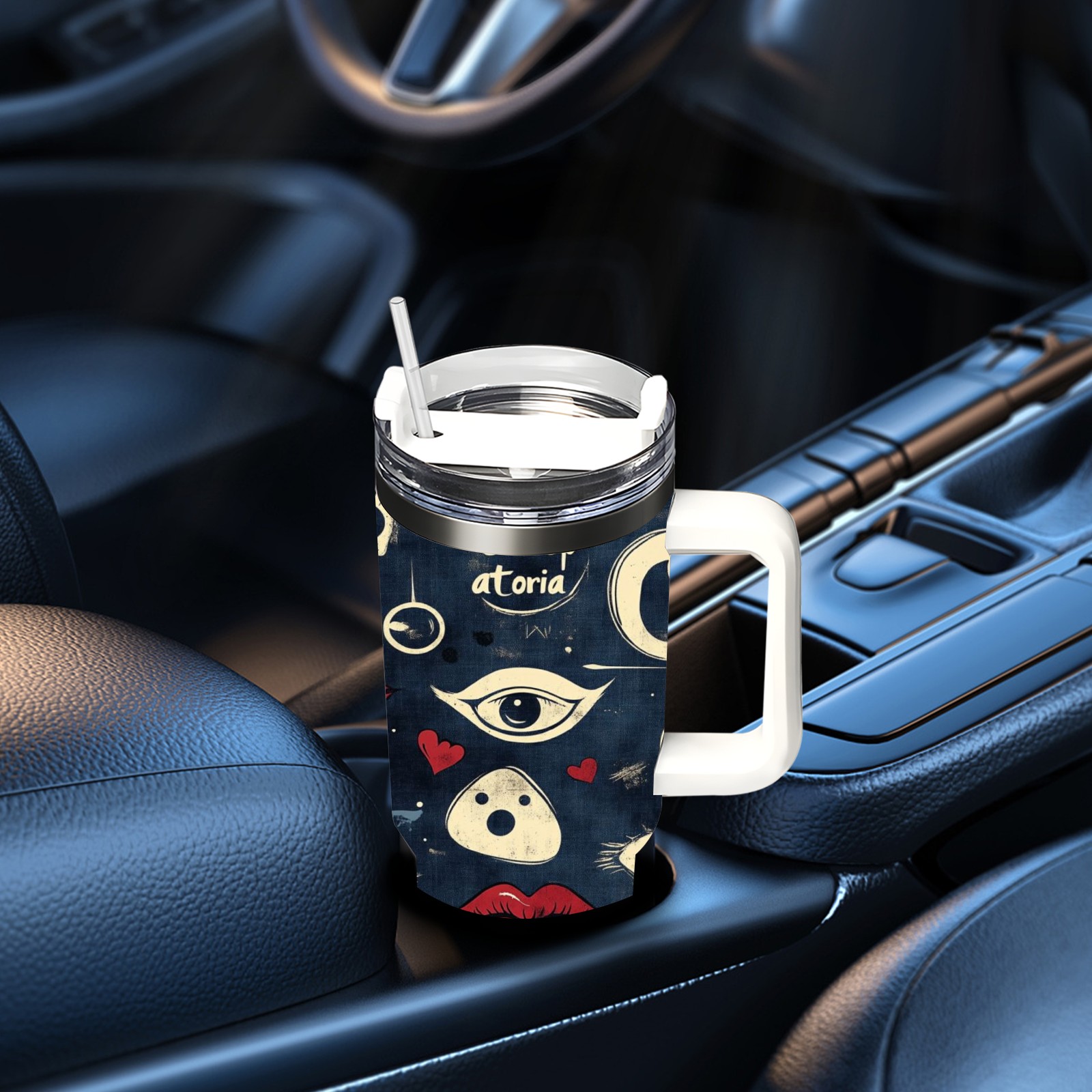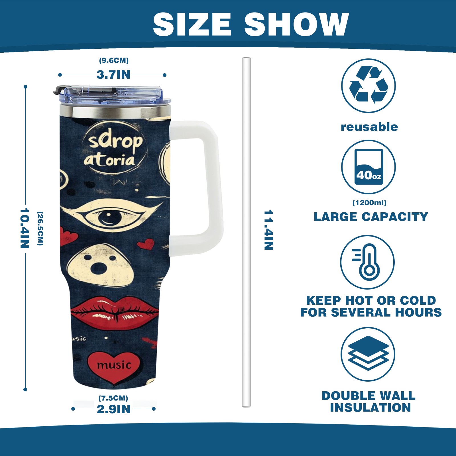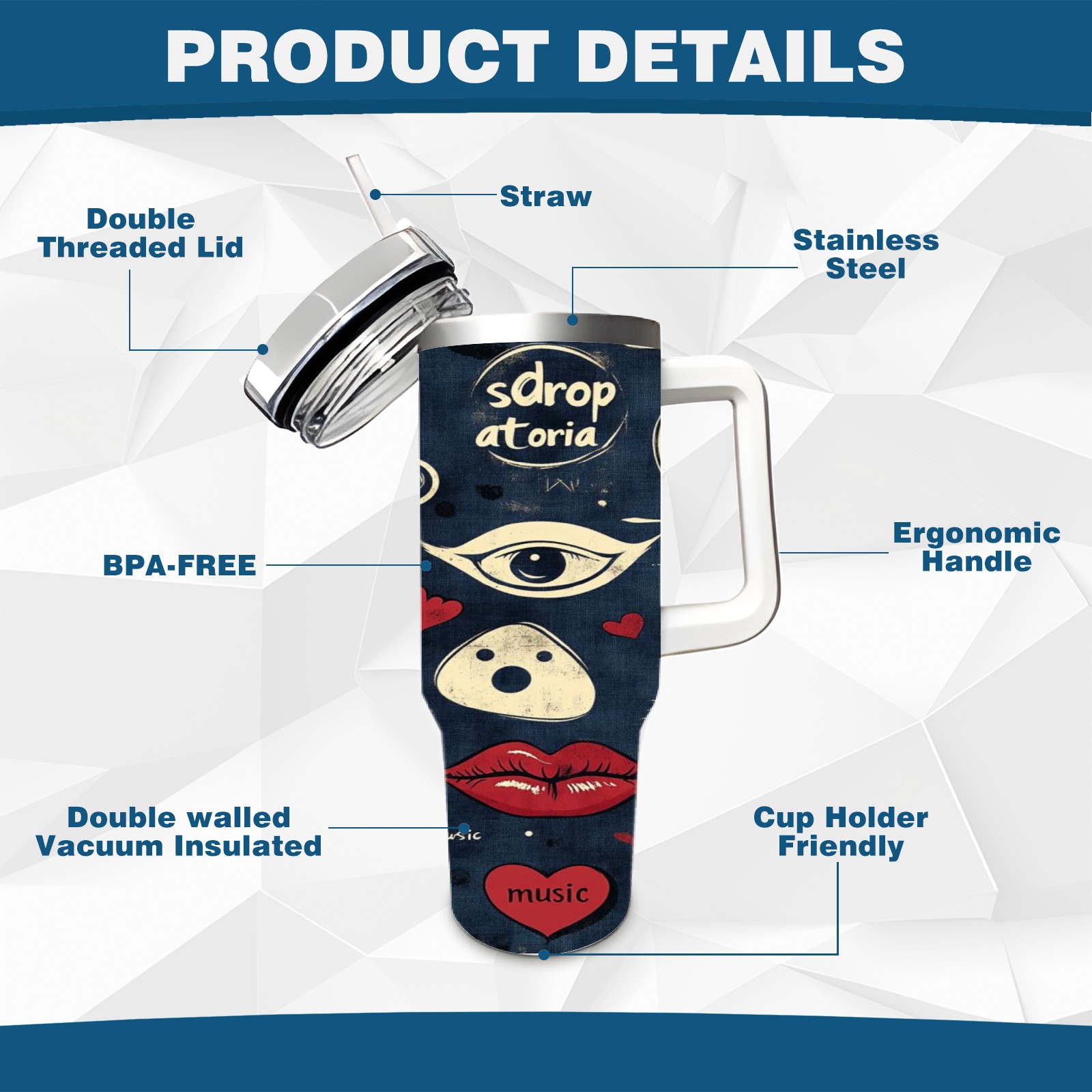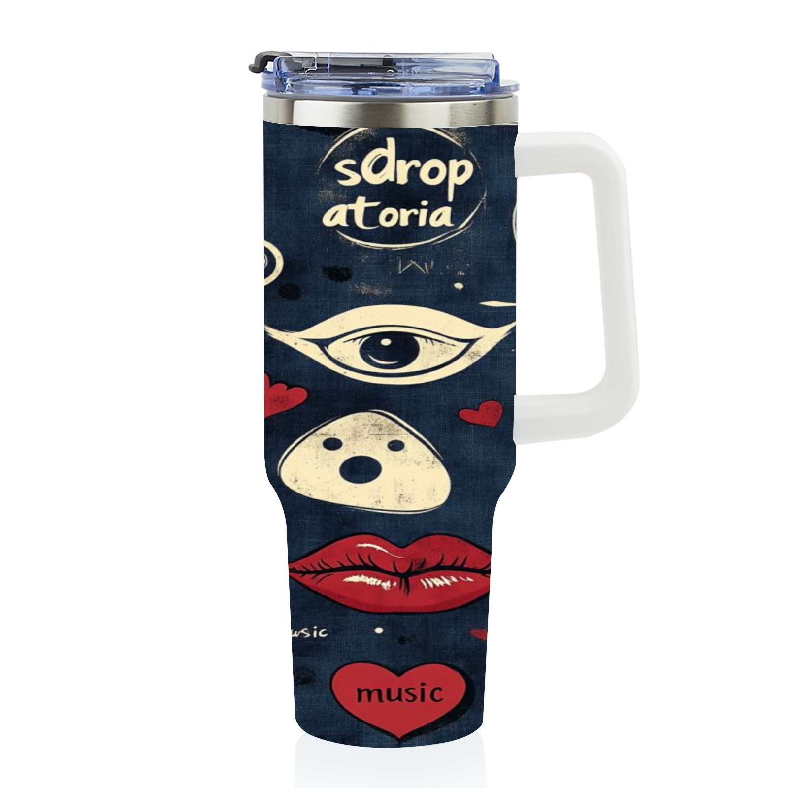 40 унций полностью напечатанный автомобильный стакан Retro Doodle Elements Pattern