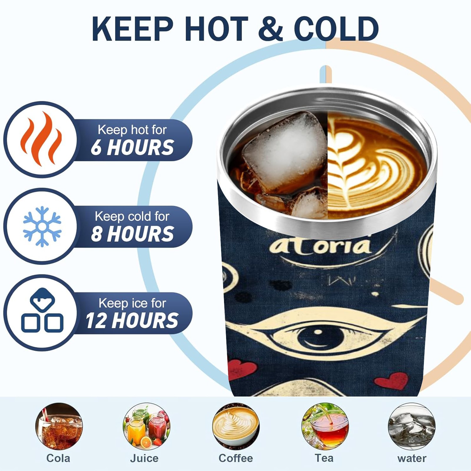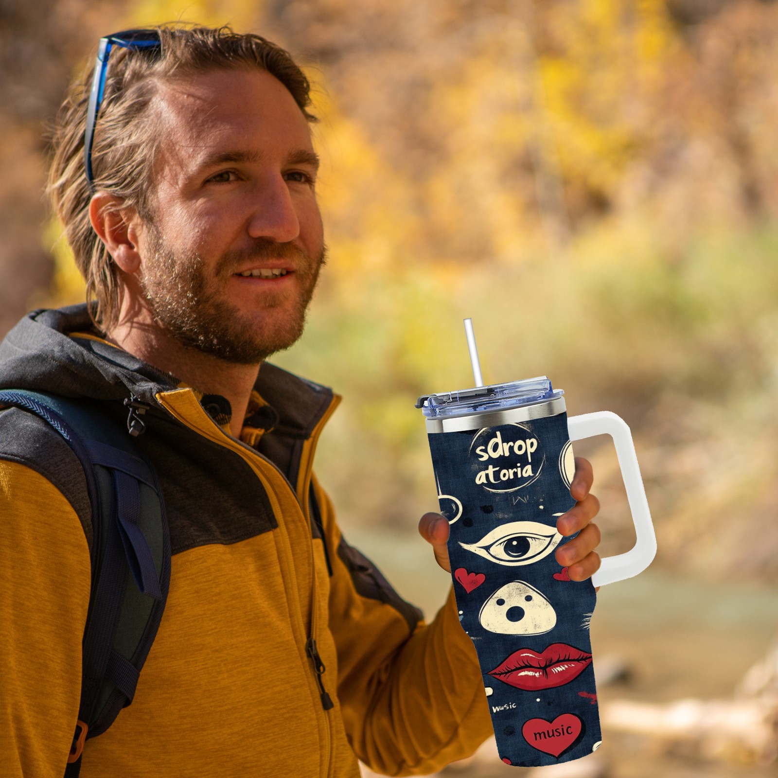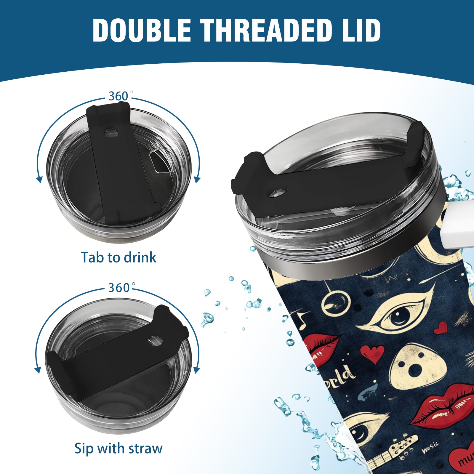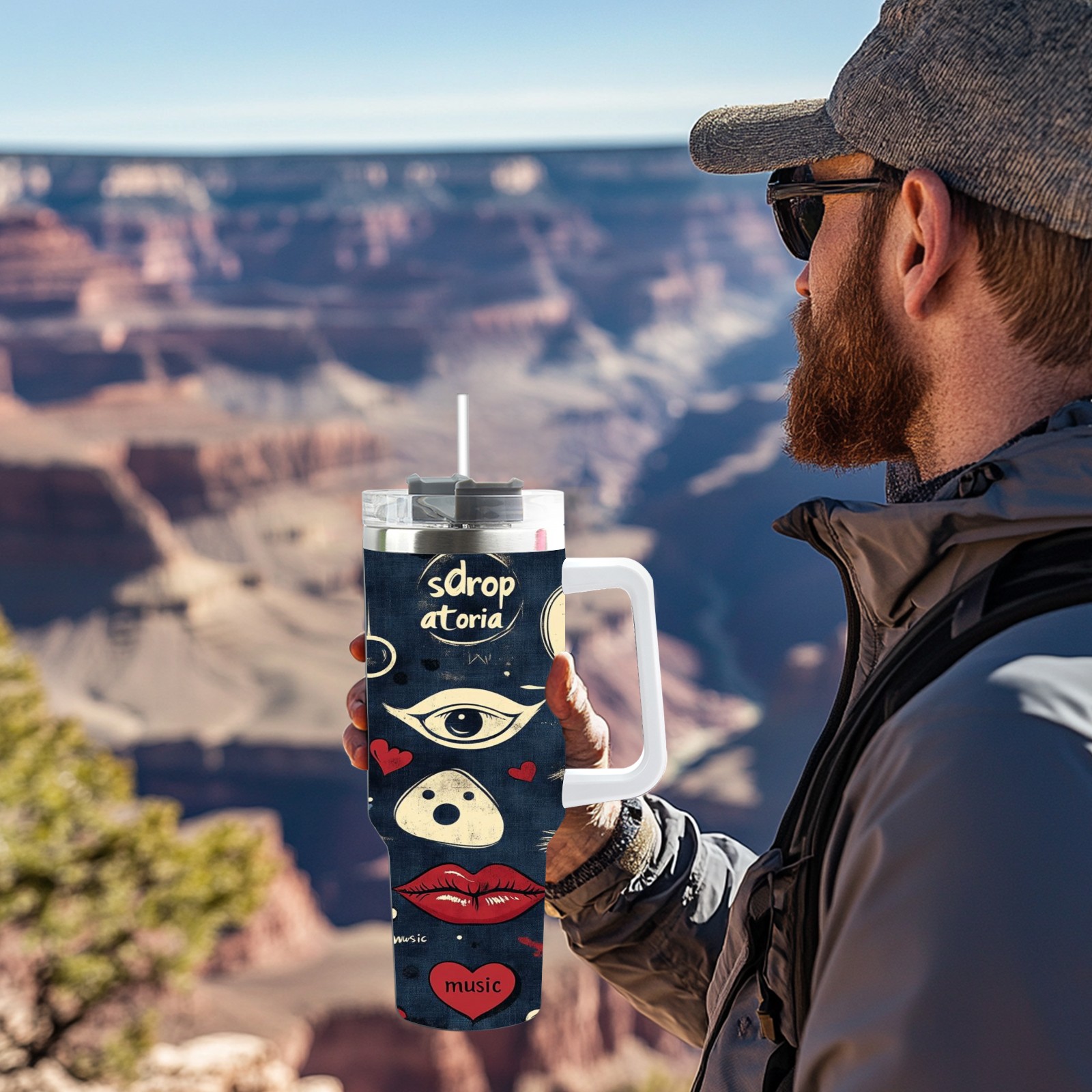40 унций полностью напечатанный автомобильный стакан Retro Doodle Elements Pattern
