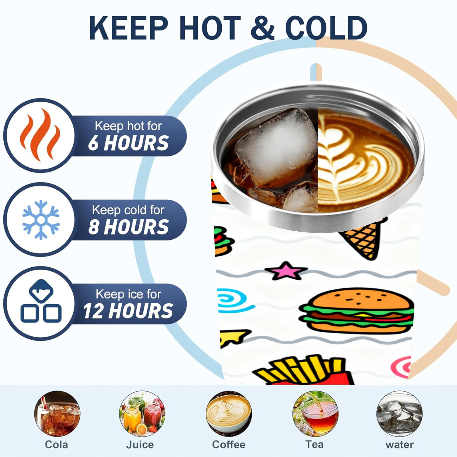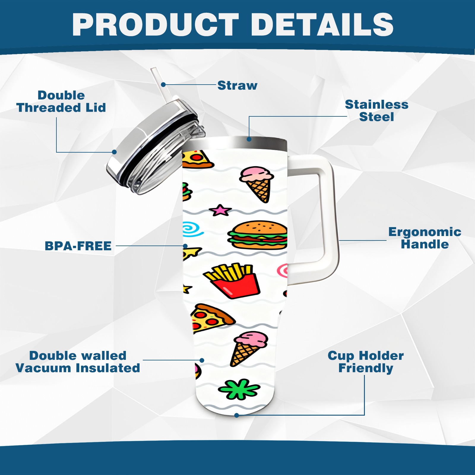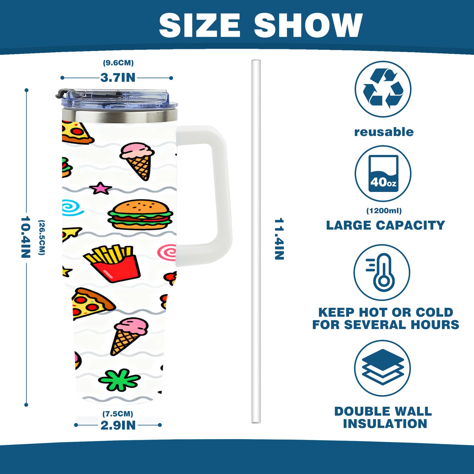 40 унций полностью напечатанный автомобильный стакан Hamburger Fries