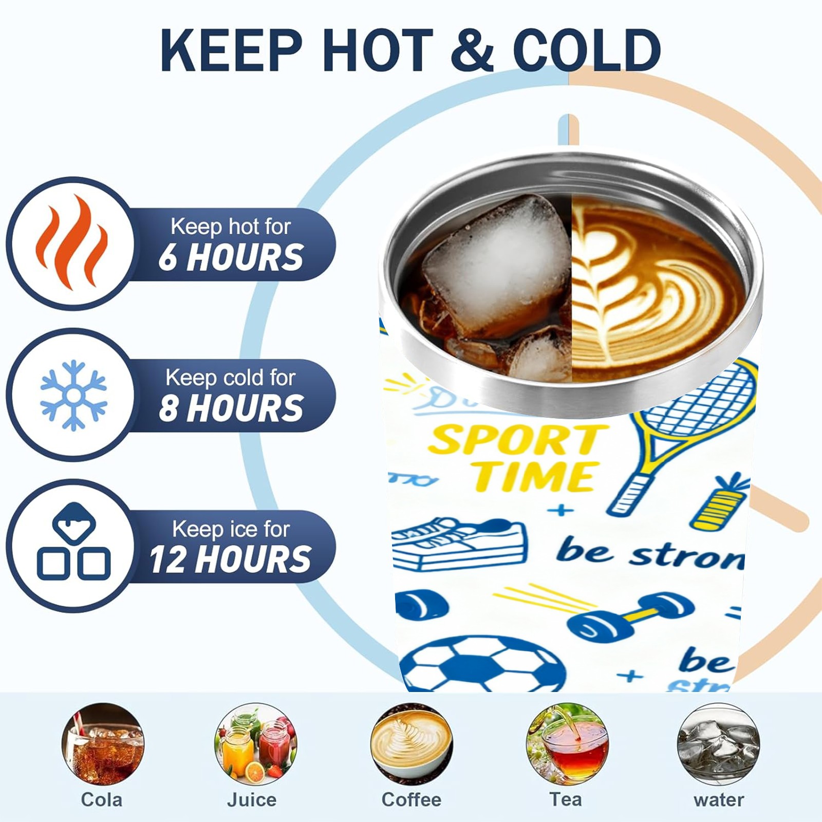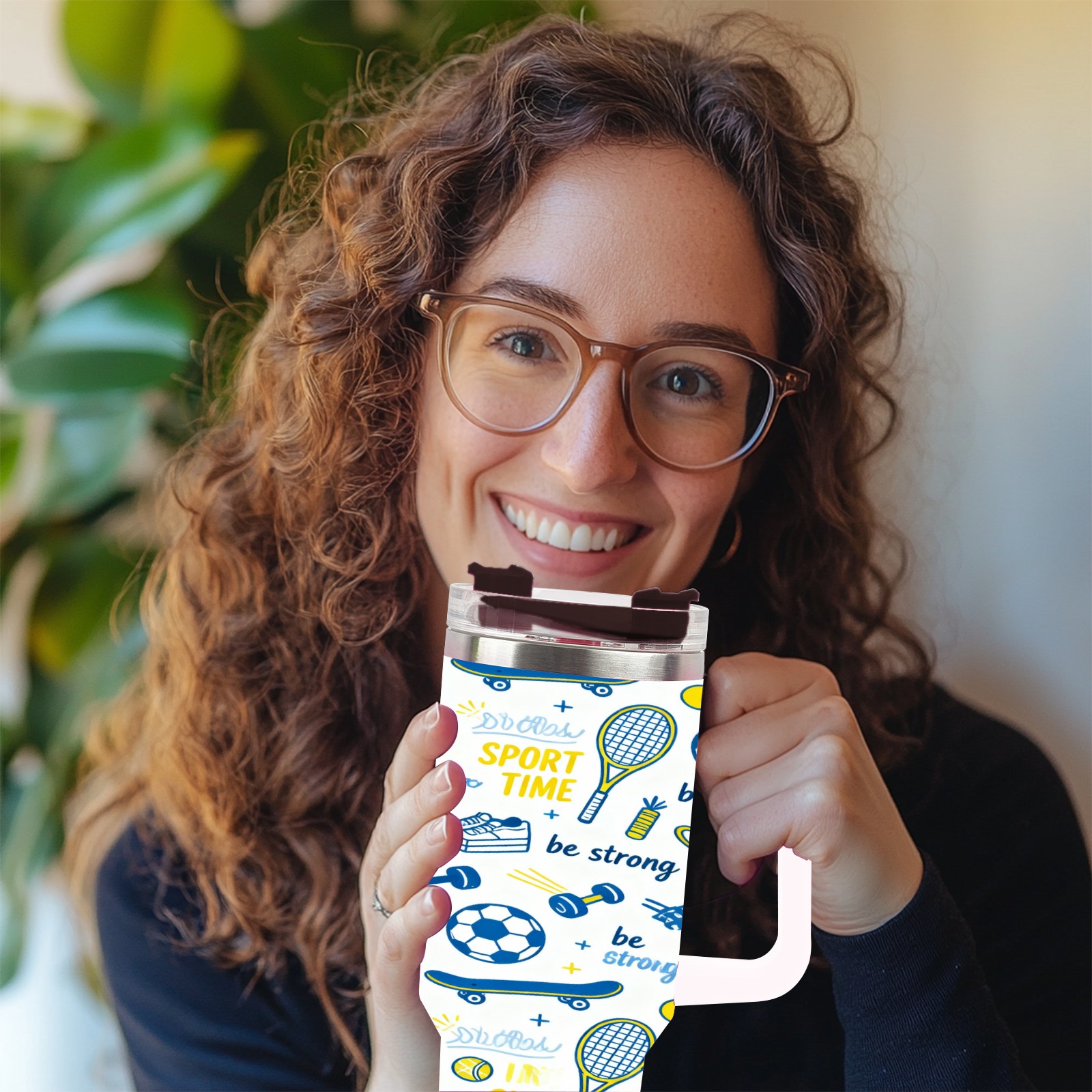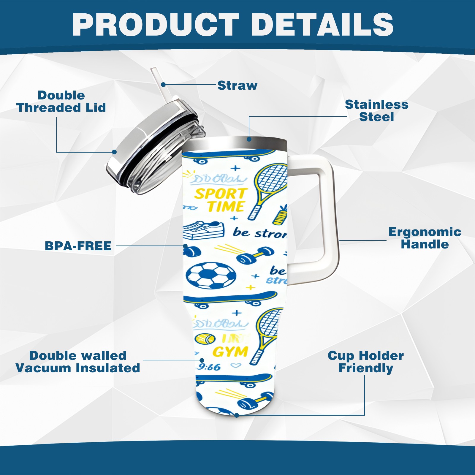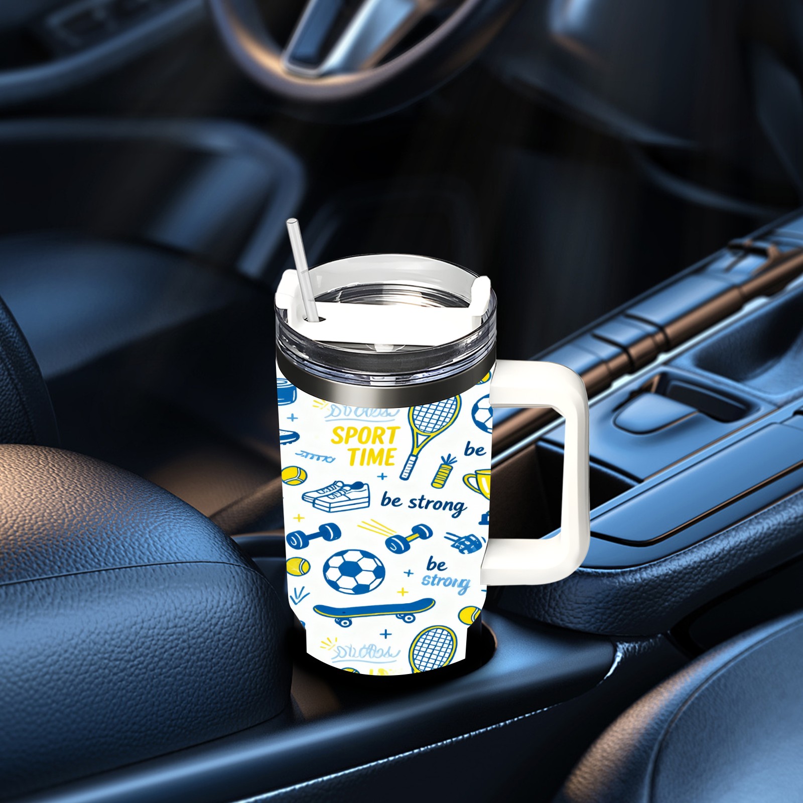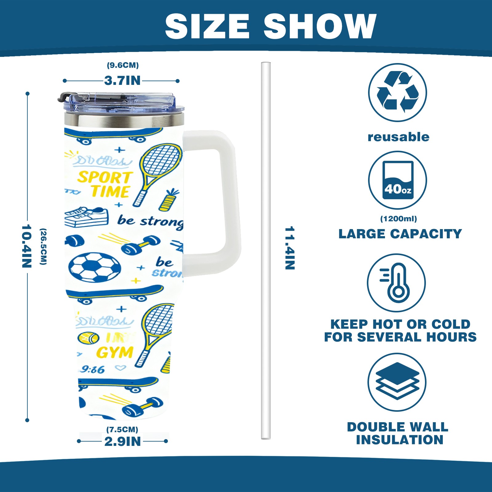 40 унций полностью напечатанный автомобильный стакан Blue White Sports Elements 1