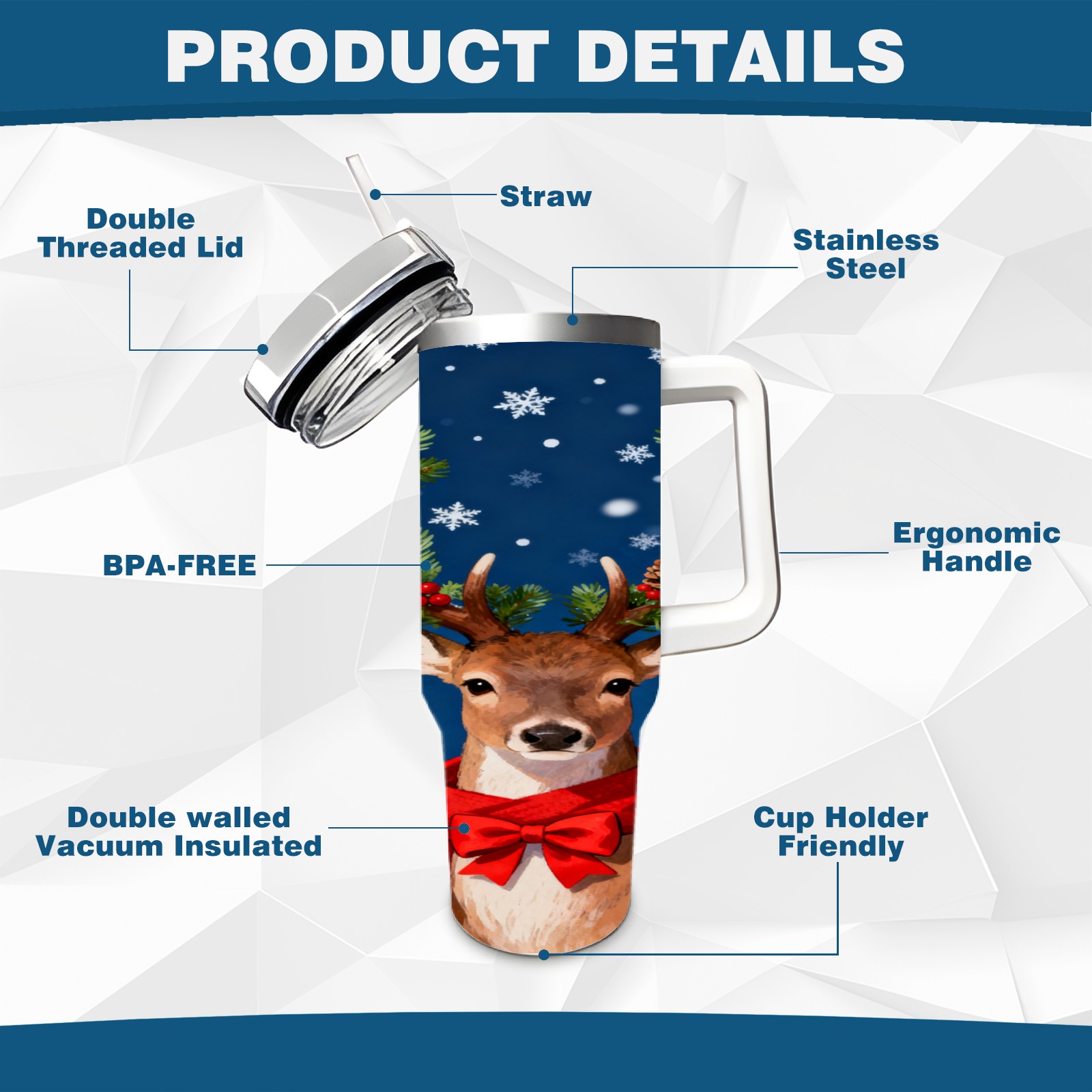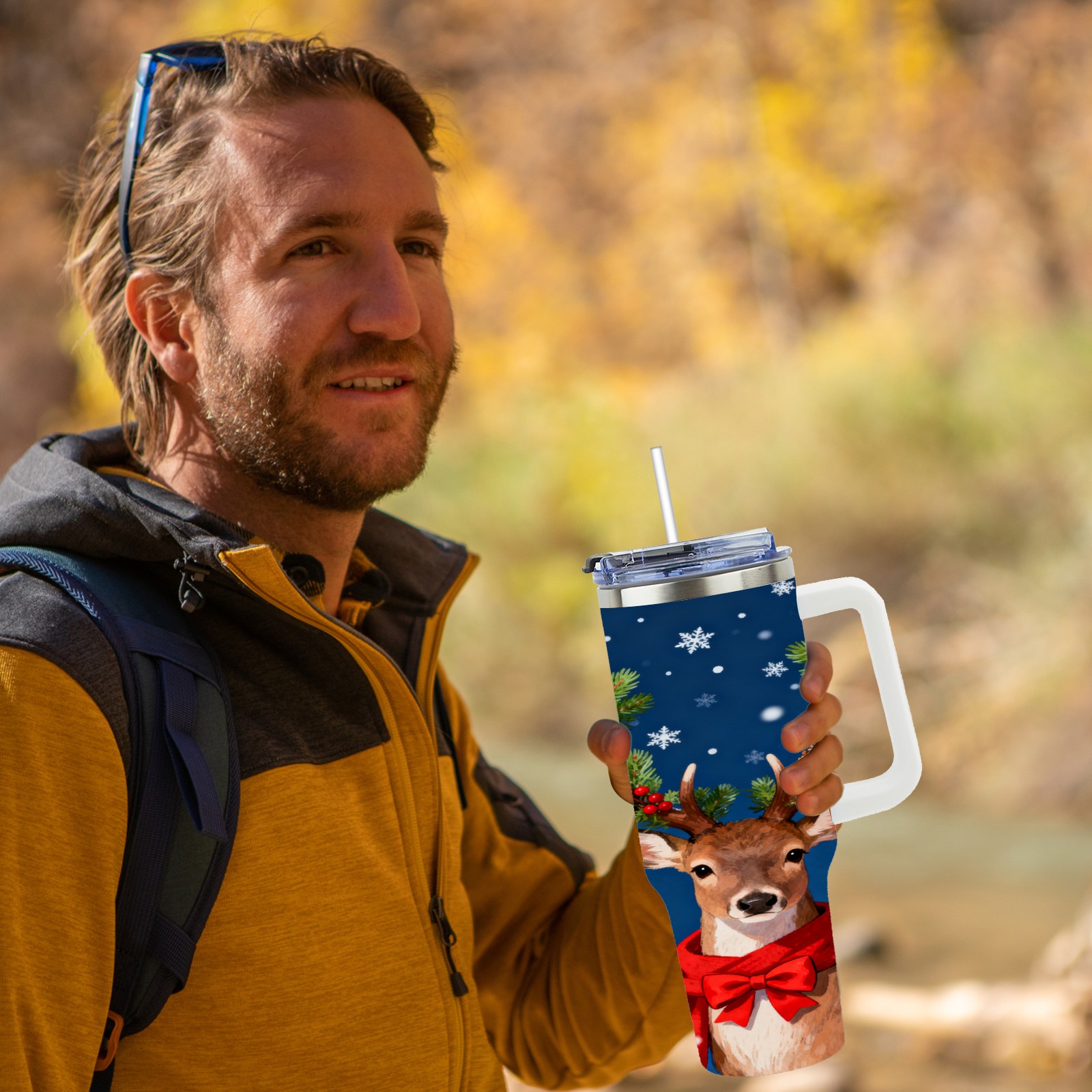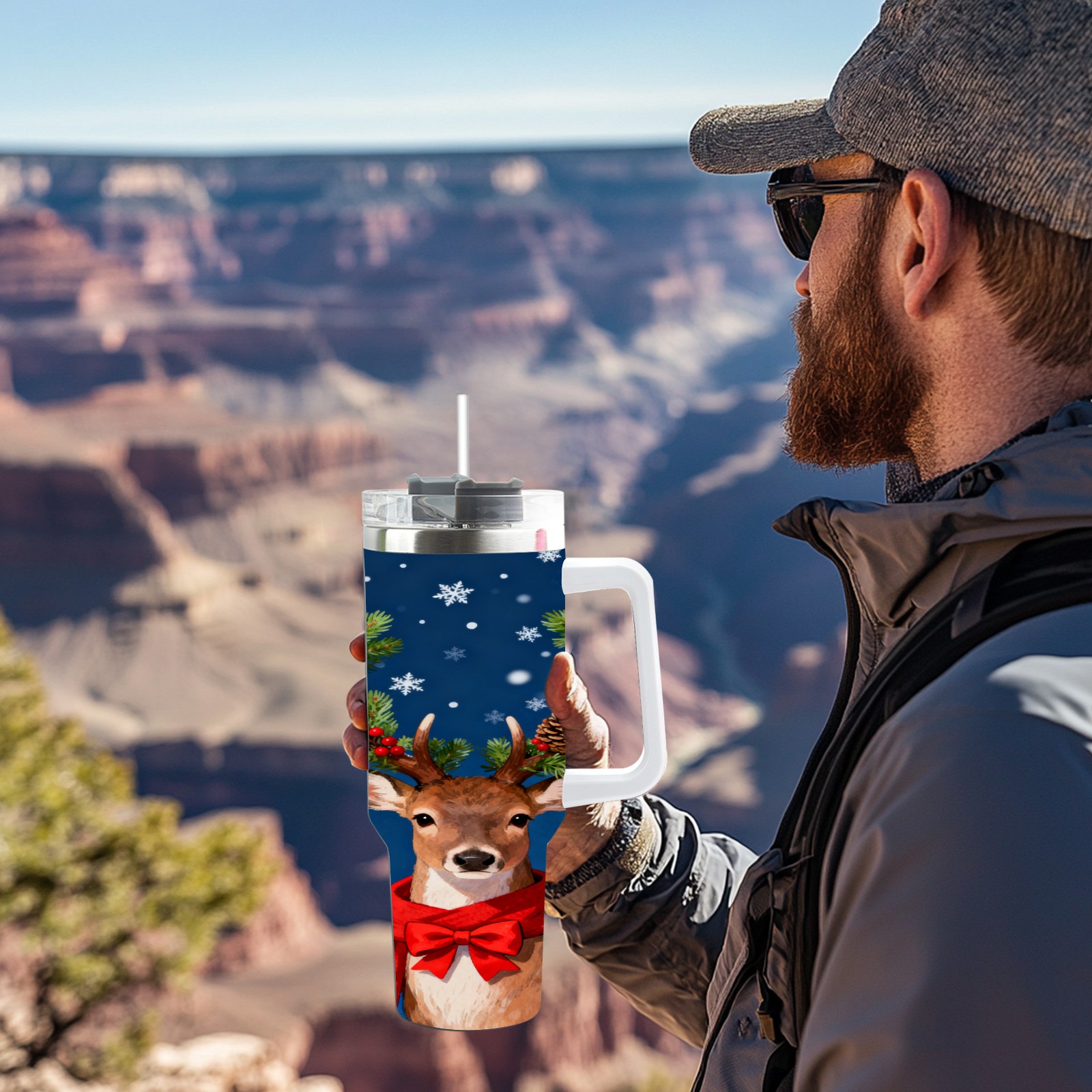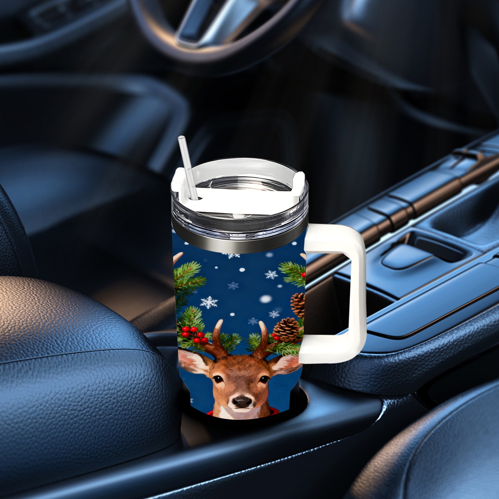 40 унций полностью напечатанный автомобильный стакан Christmas Deer