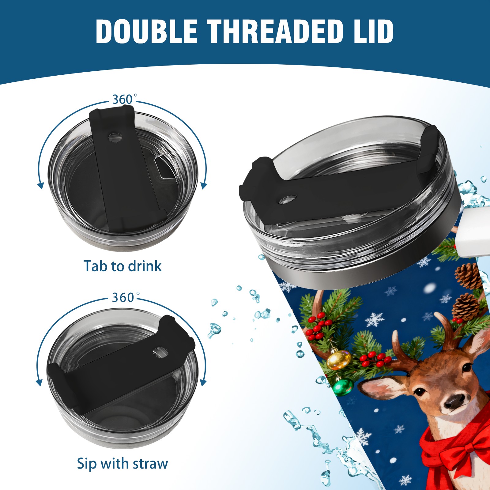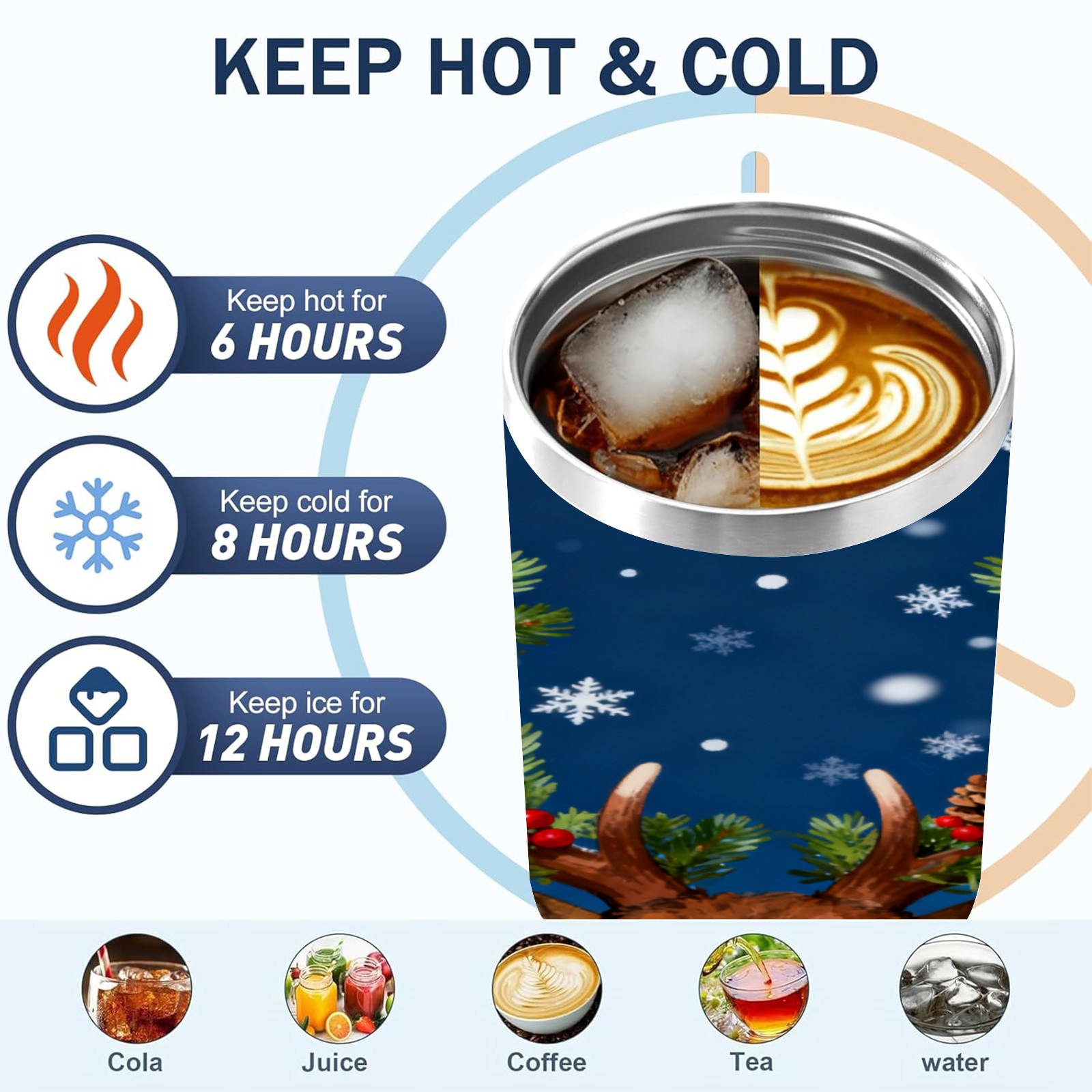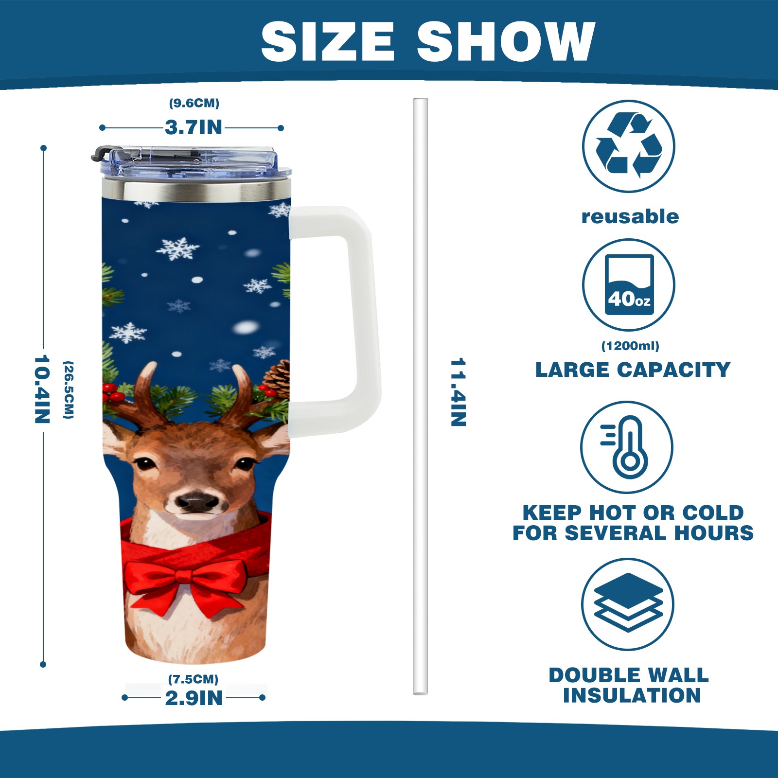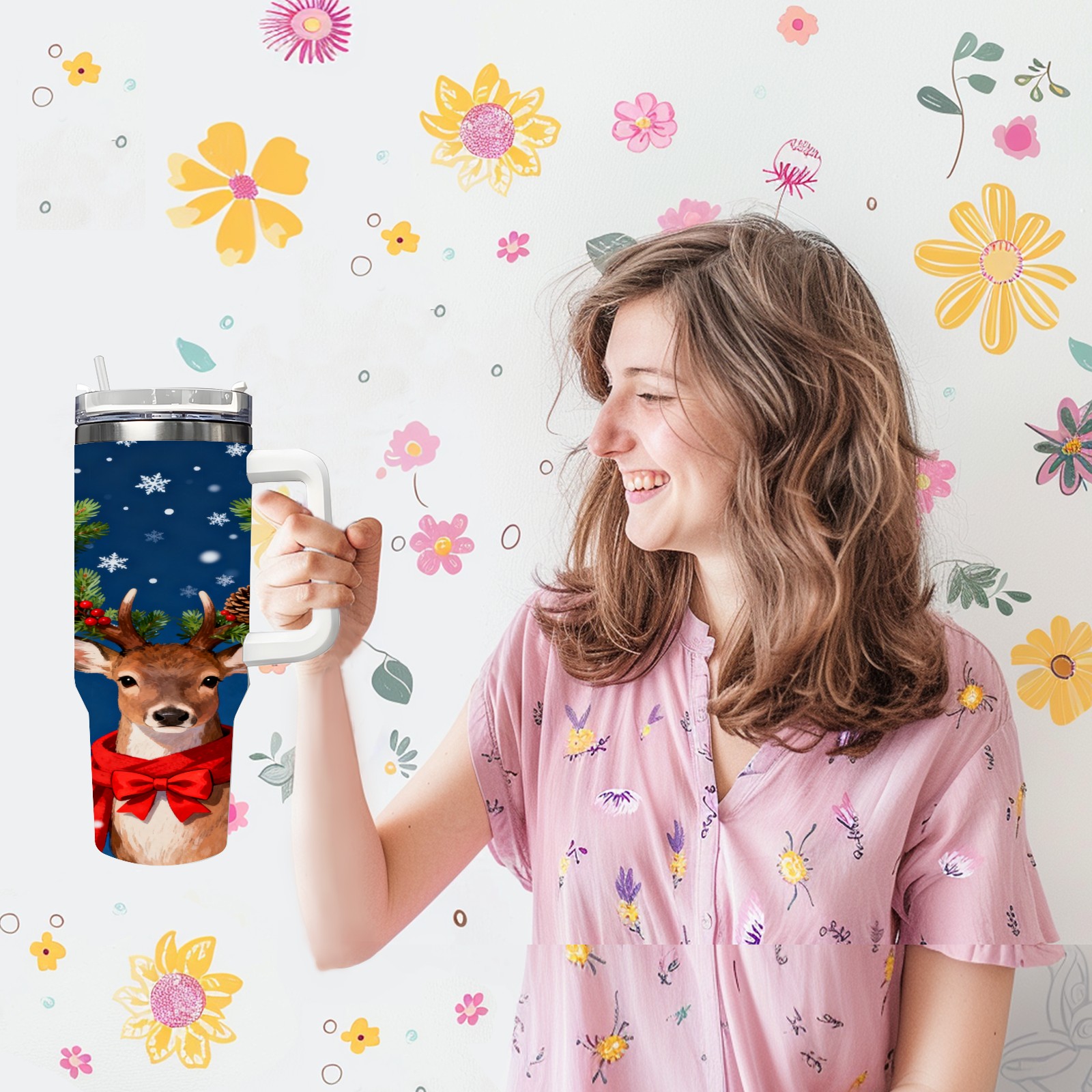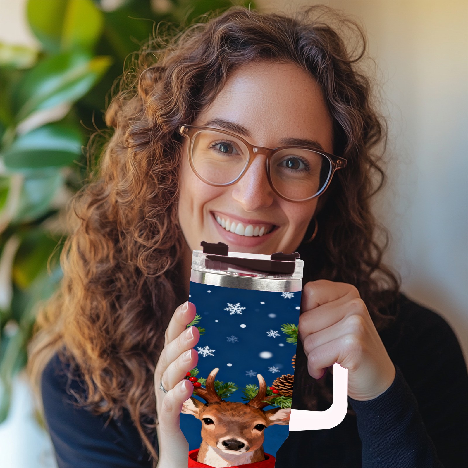 40 унций полностью напечатанный автомобильный стакан Christmas Deer