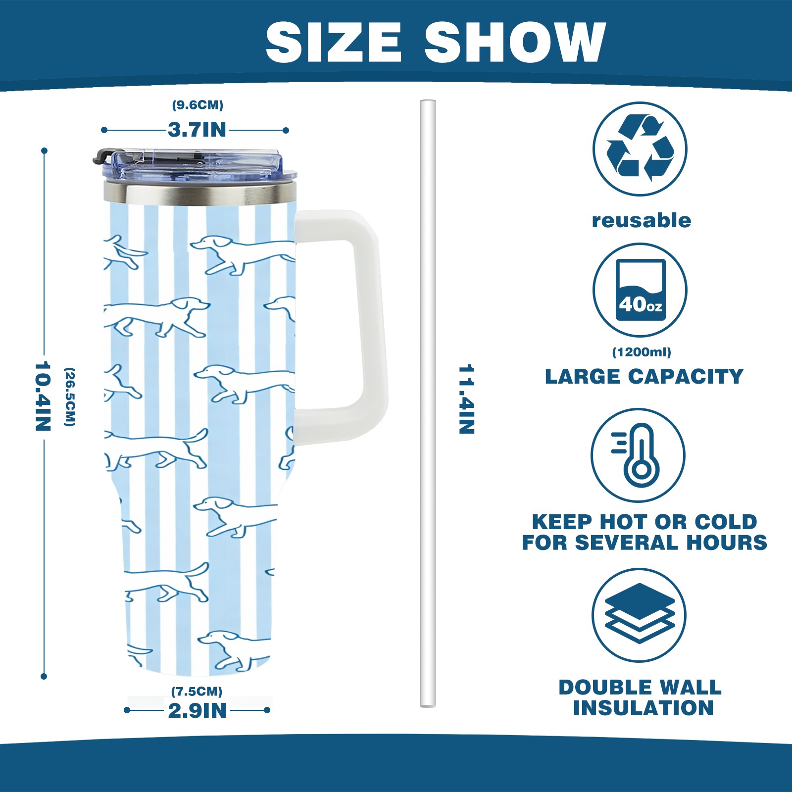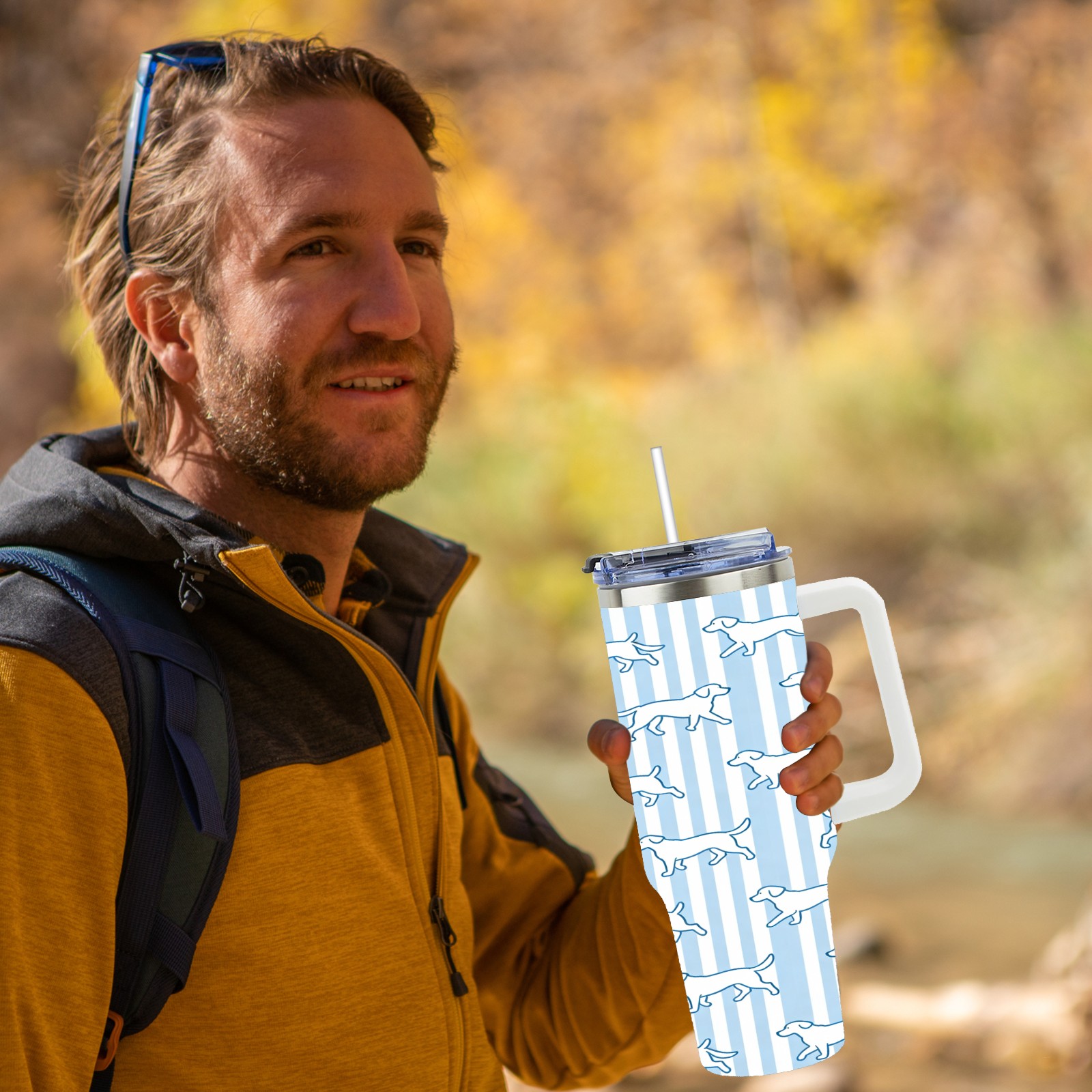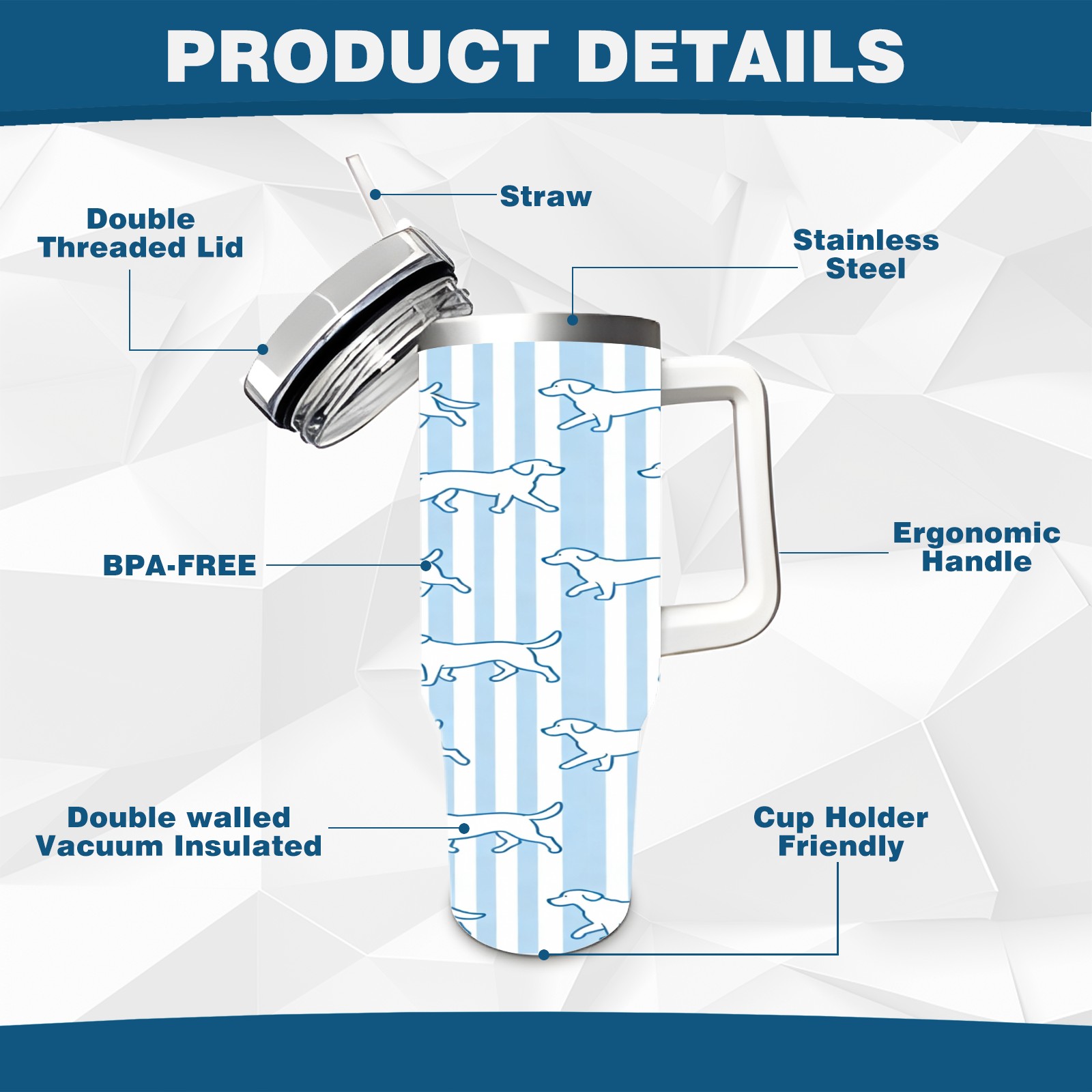 40 унций полностью напечатанный автомобильный стакан Striped Dogs