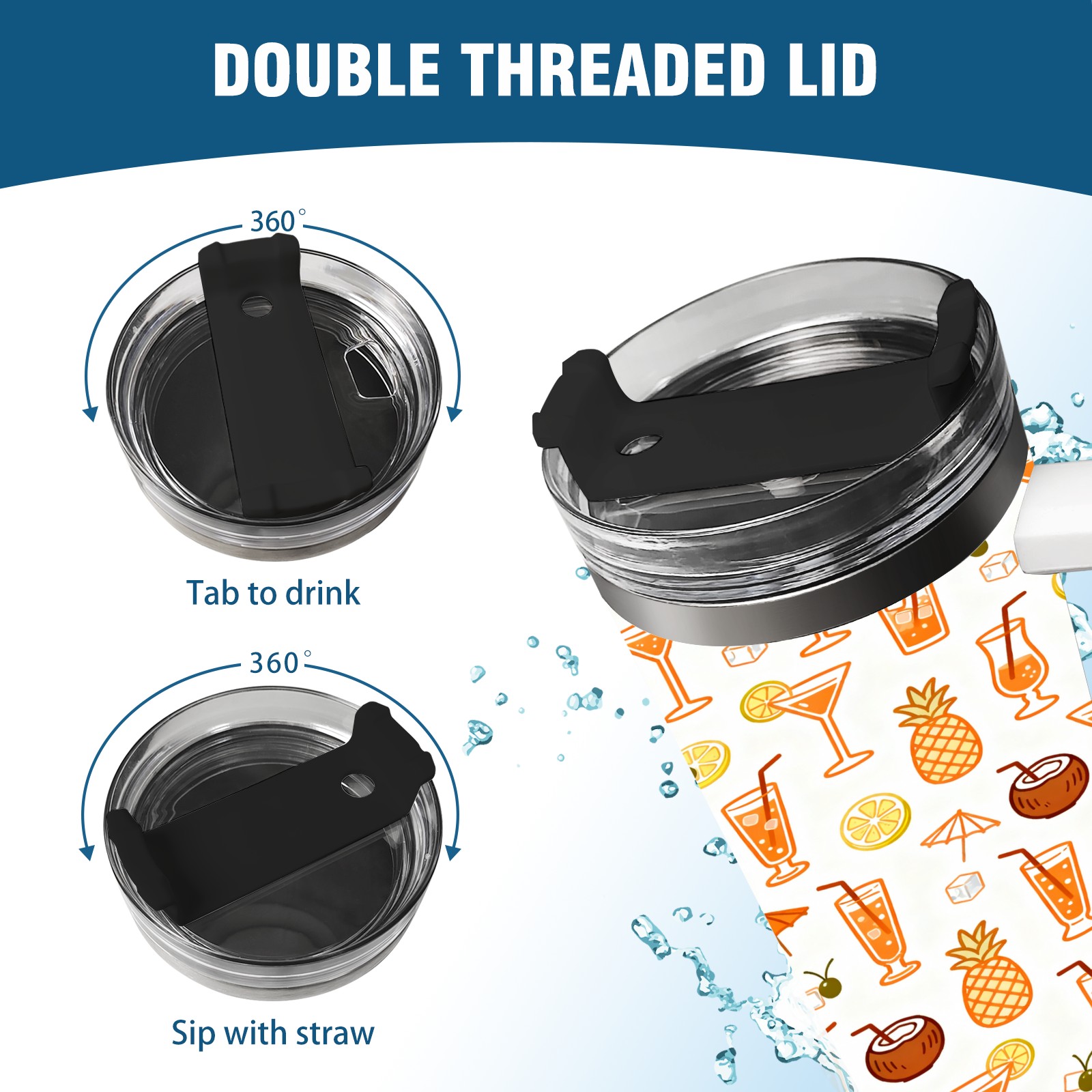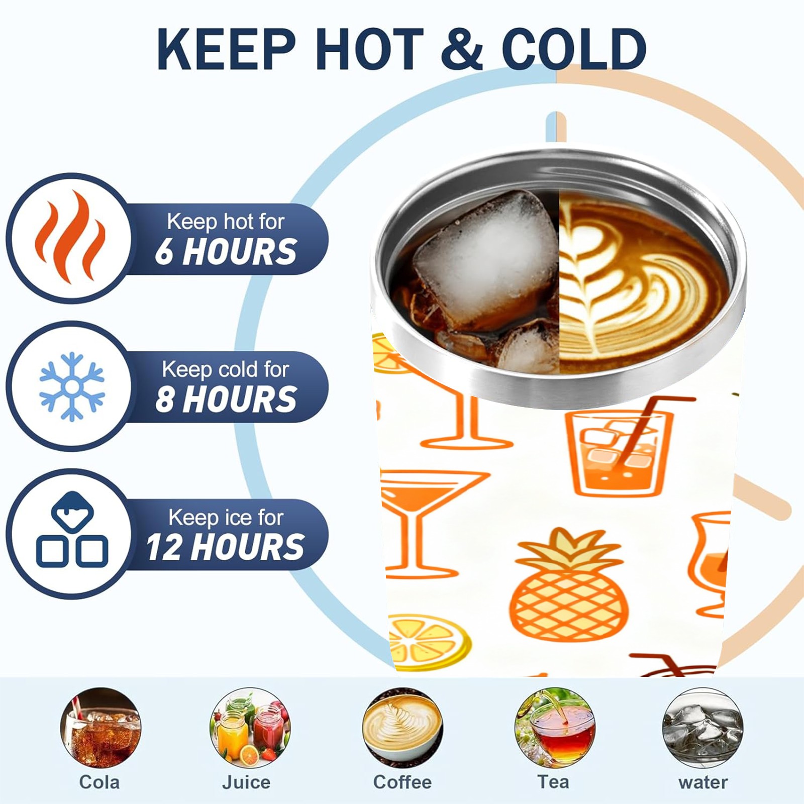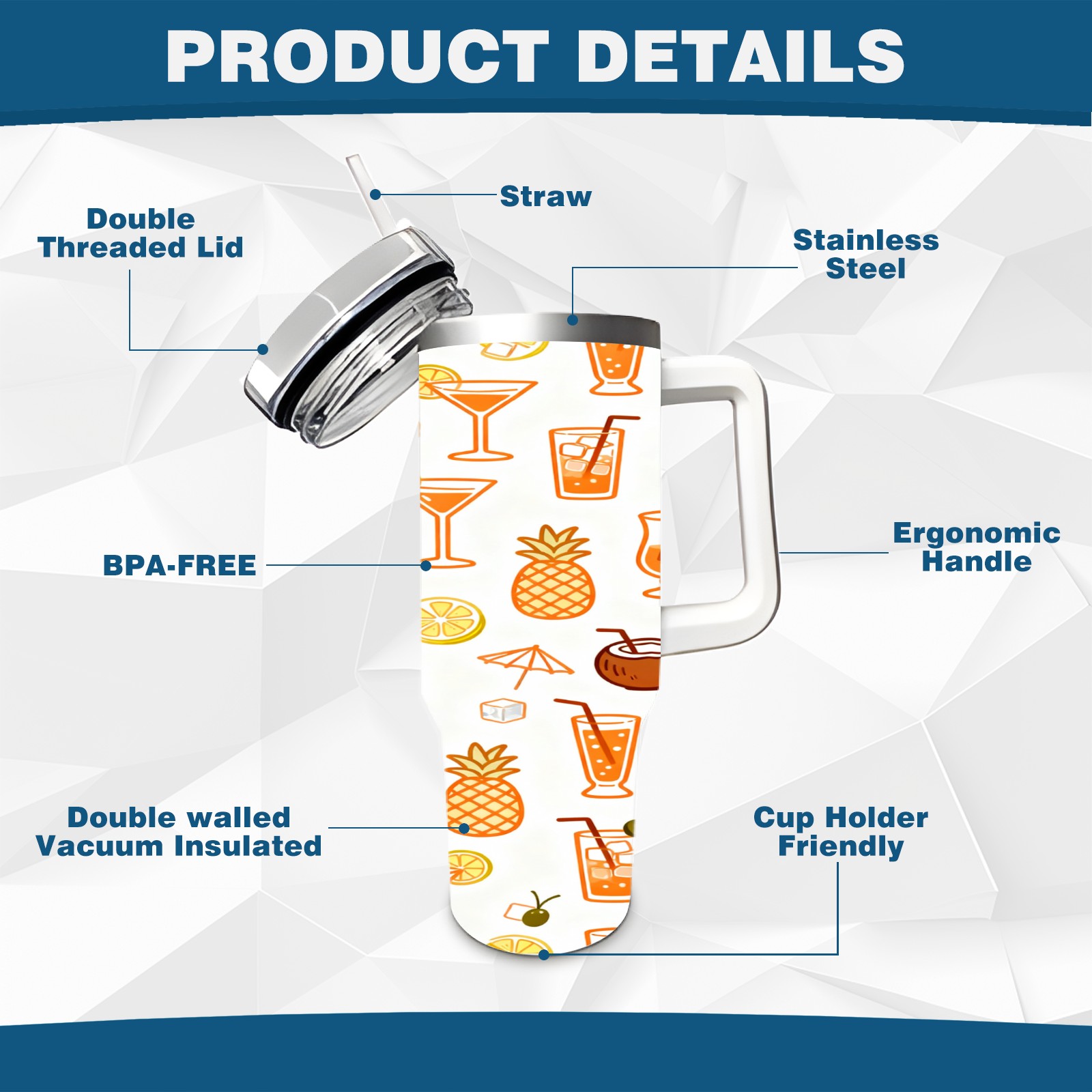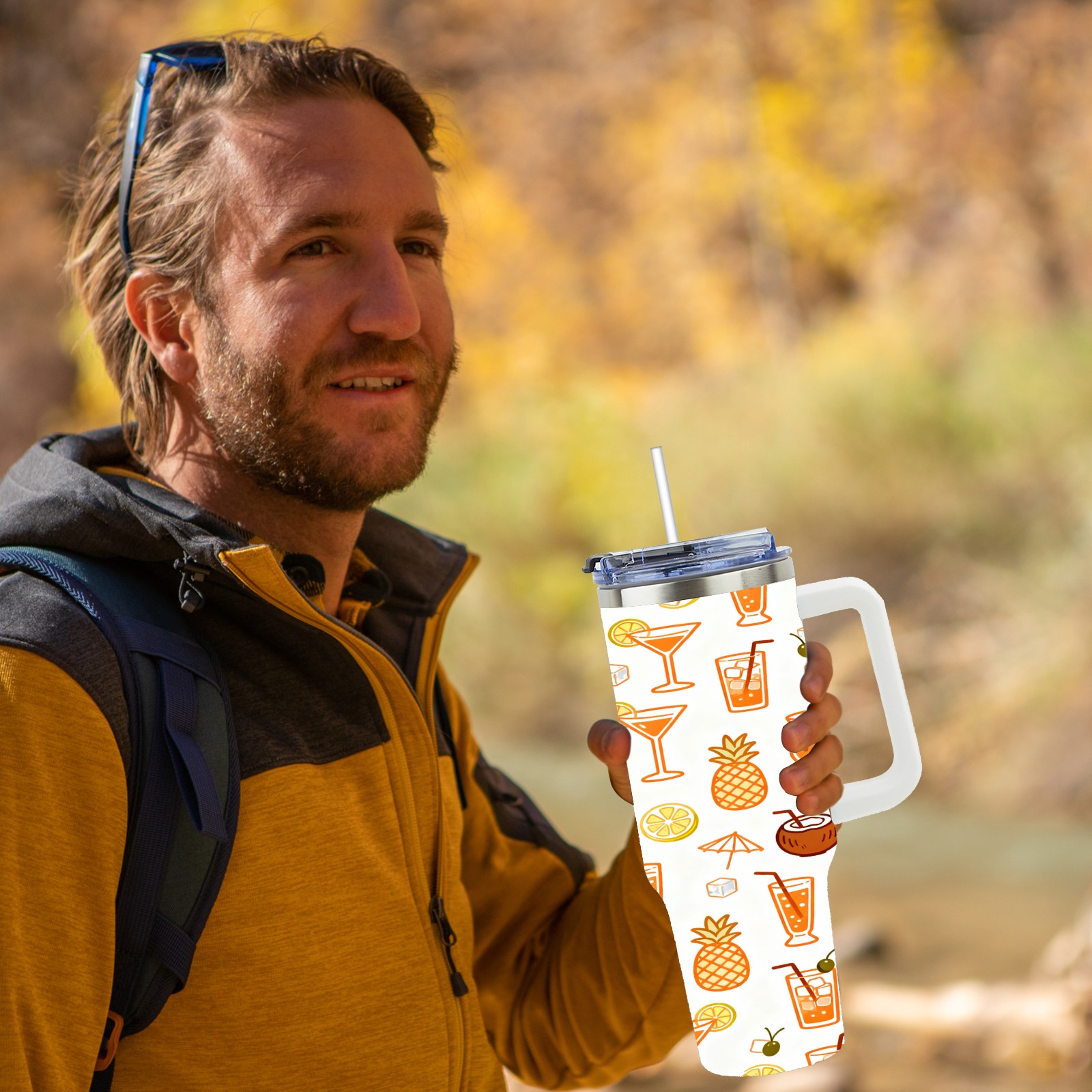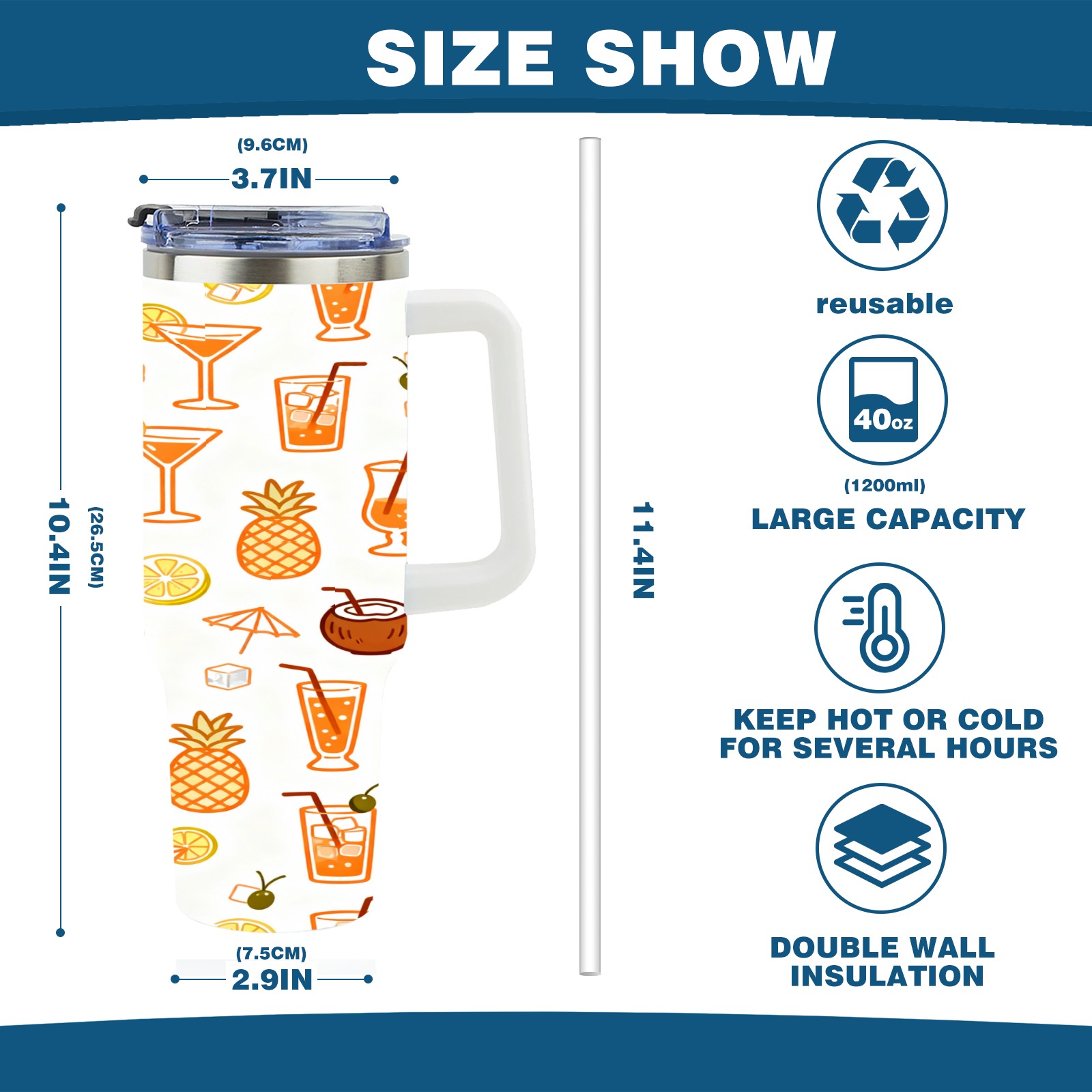 40 унций полностью напечатанный автомобильный стакан Tropical Drinks Fruits Collection Pattern