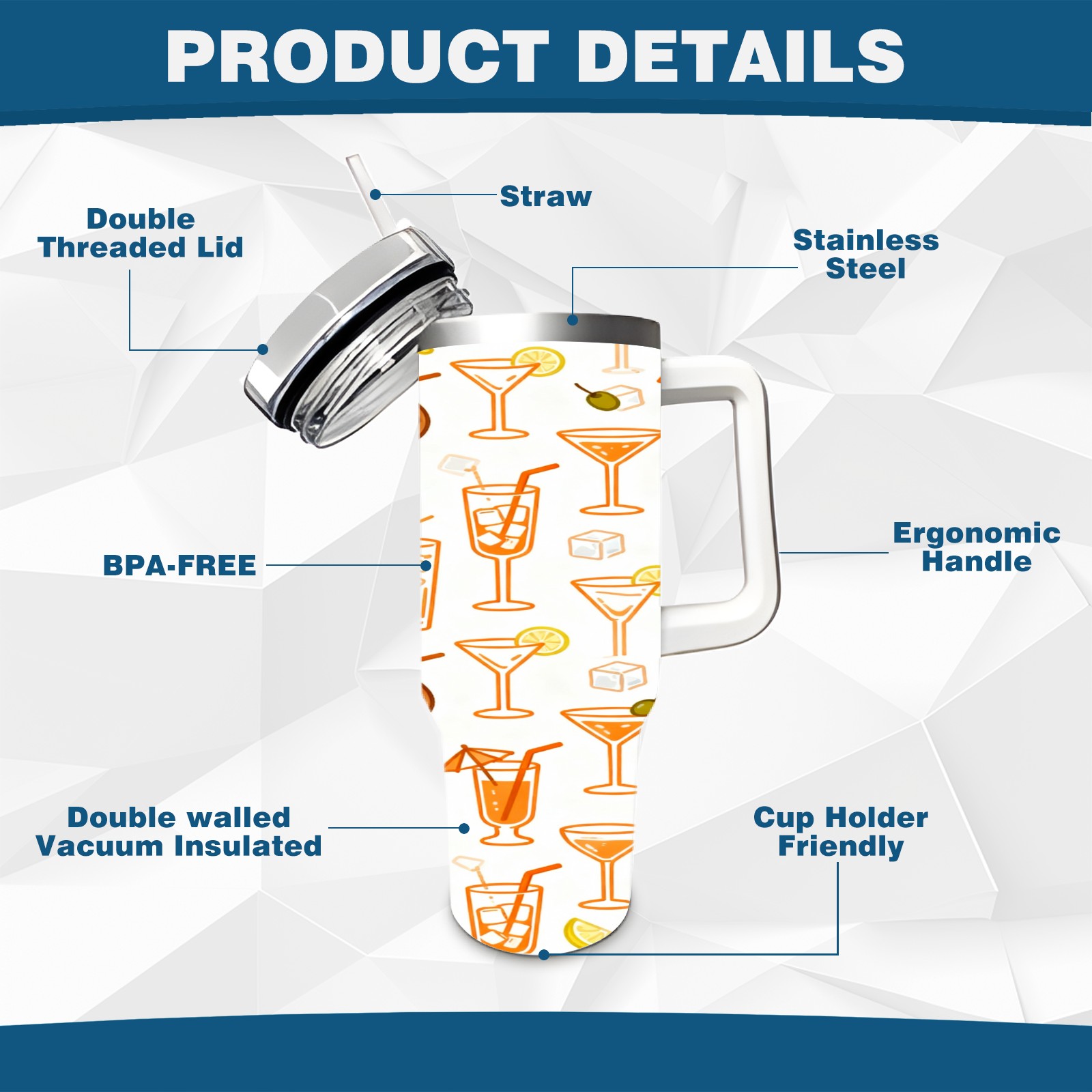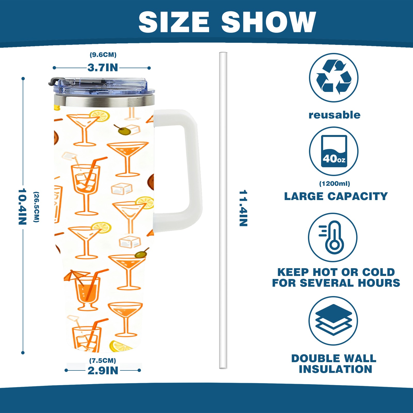 • С большой емкостью 40 унций, он обеспечивает вас гидратацией в течение всего дня, идеально подходит для воды, кофе, сока или других напитков. Эргономичный дизайн идеально вписывается в автомобильные держатели для бутылок, а прочный, герметичный колпачок предотвращает утечки во время передвижения. Путешествие. Антискользящее основание обеспечивает устойчивость, а гладкие поверхности делают уборку легкой — просто мойте вручную или кладите в посудомоечную машину (рекомендуется верхний поддон).