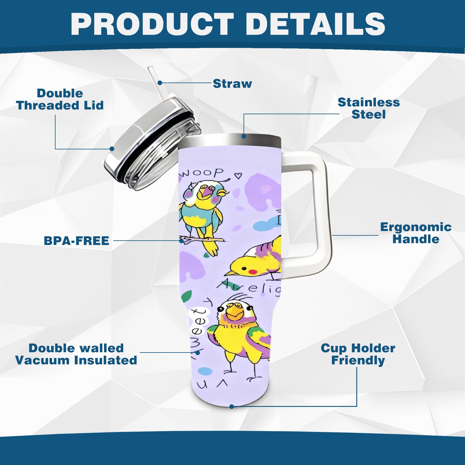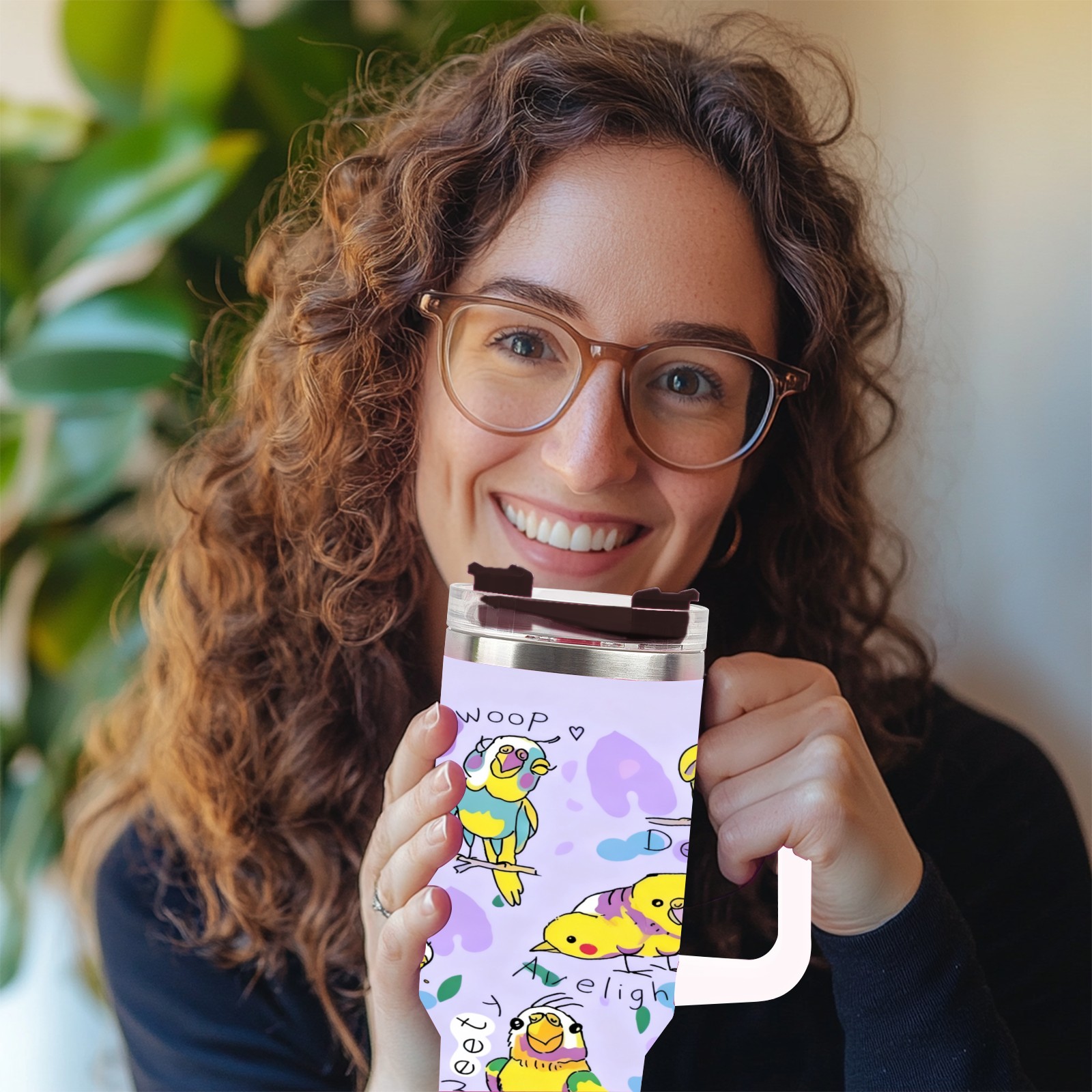 40 унций полностью напечатанный автомобильный стакан Colorful Parrots Pattern