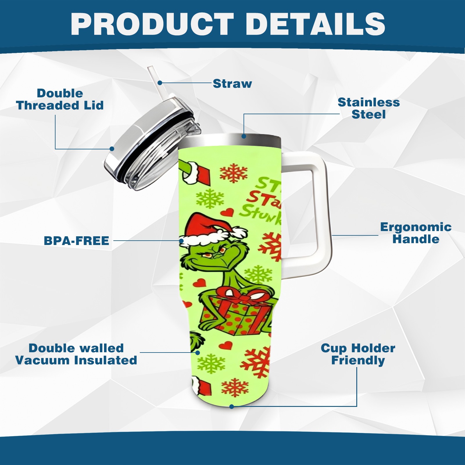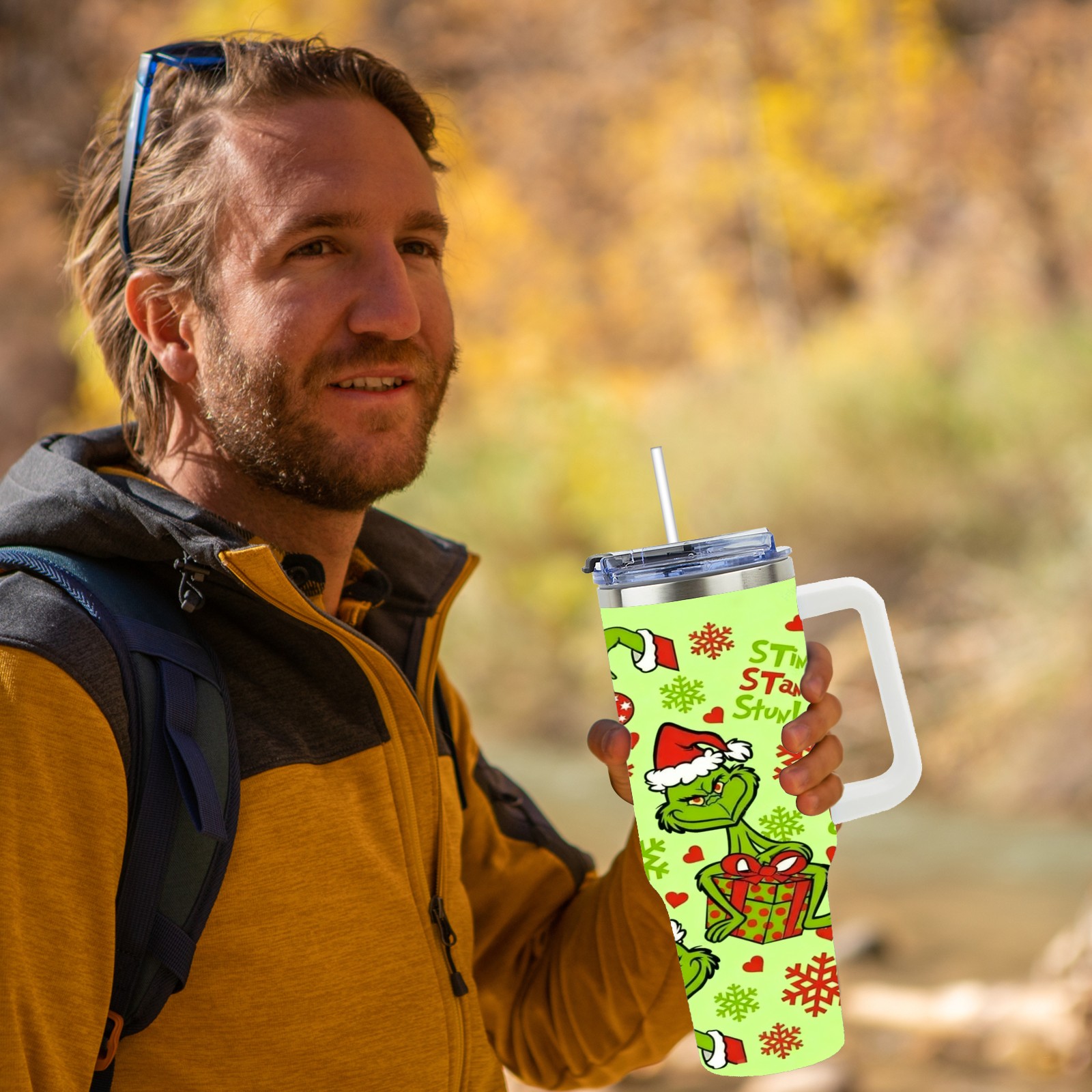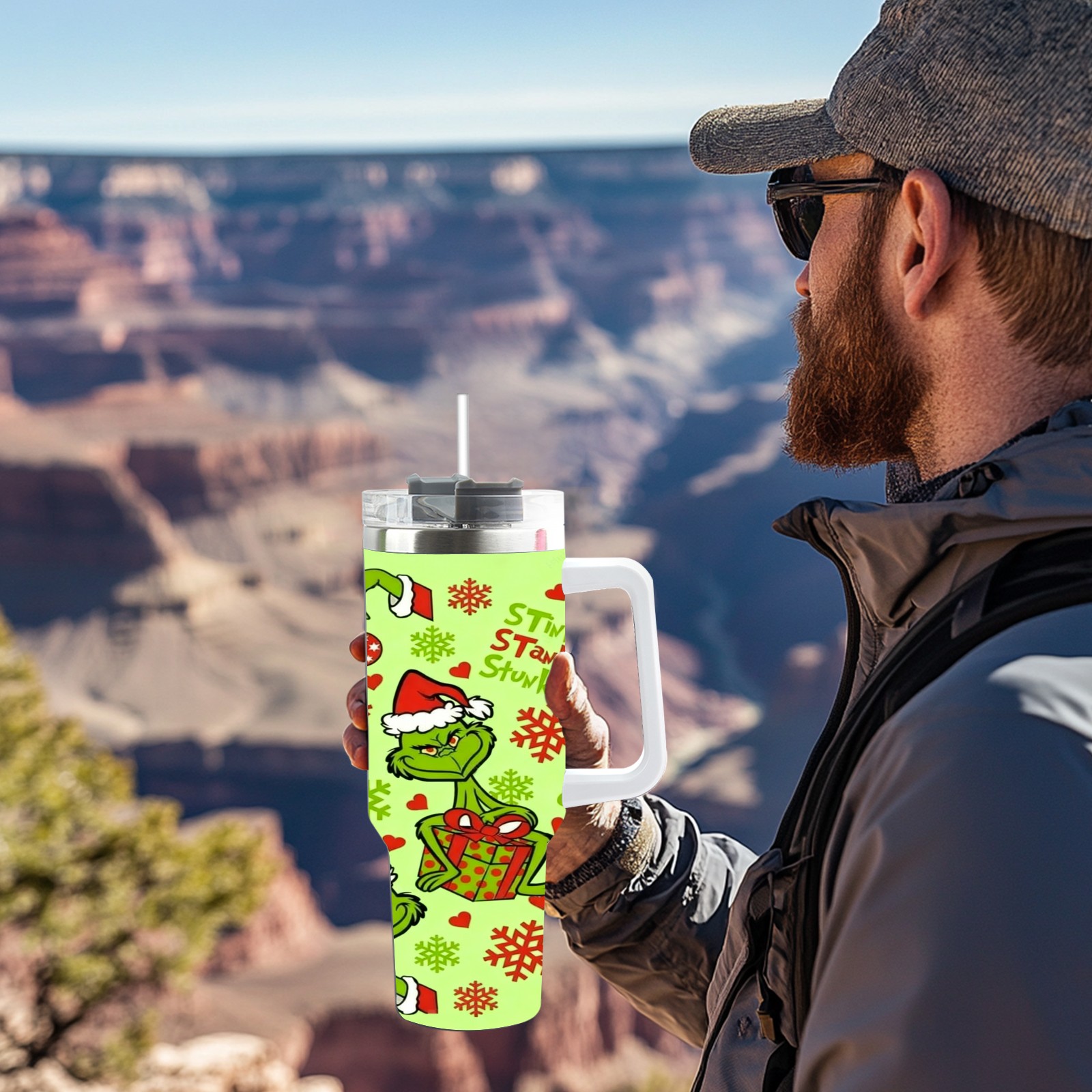 40 унций полностью напечатанный автомобильный стакан Grinch Christmas