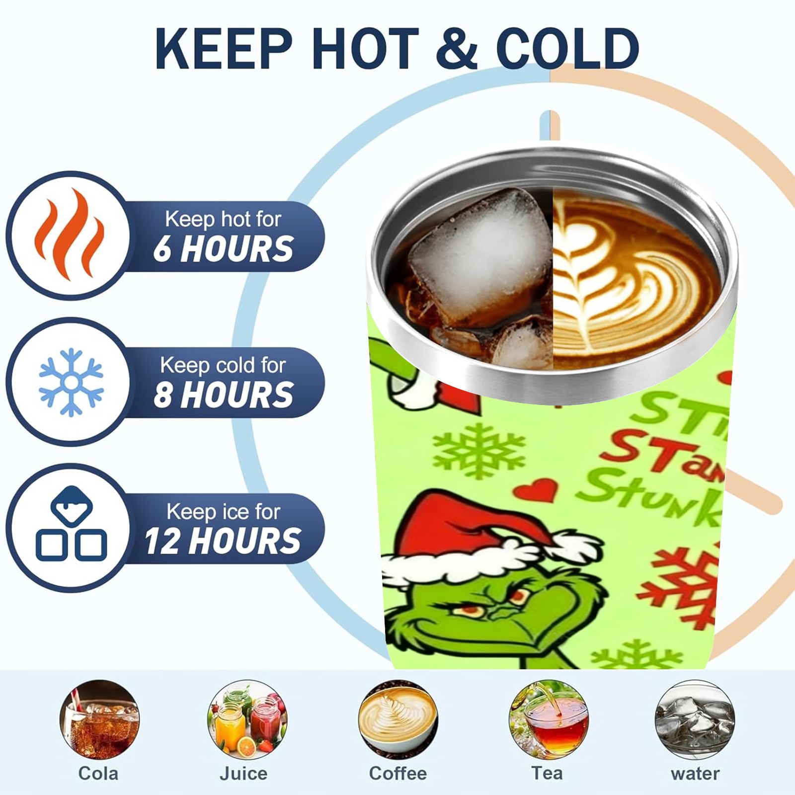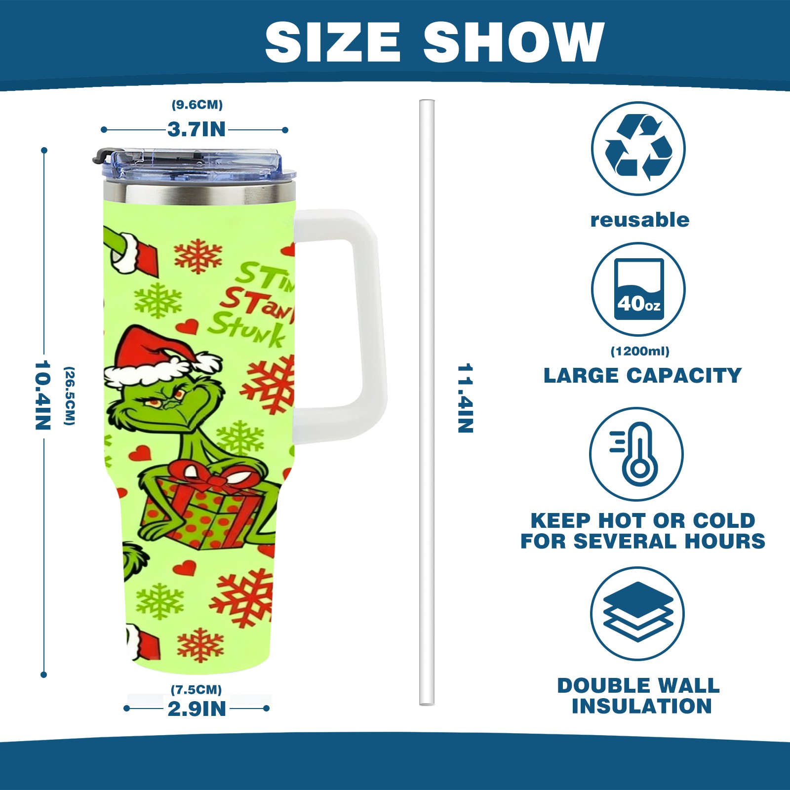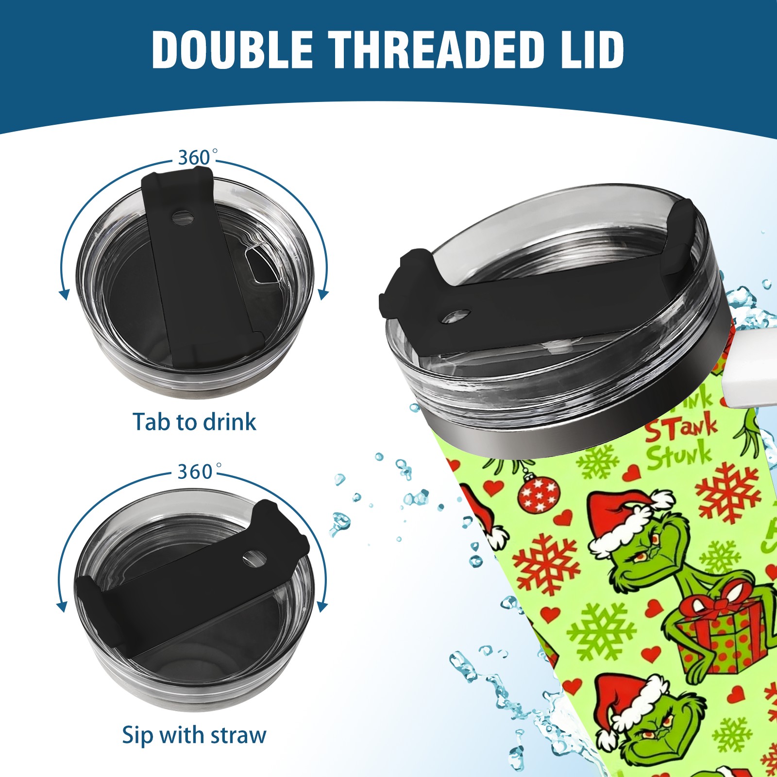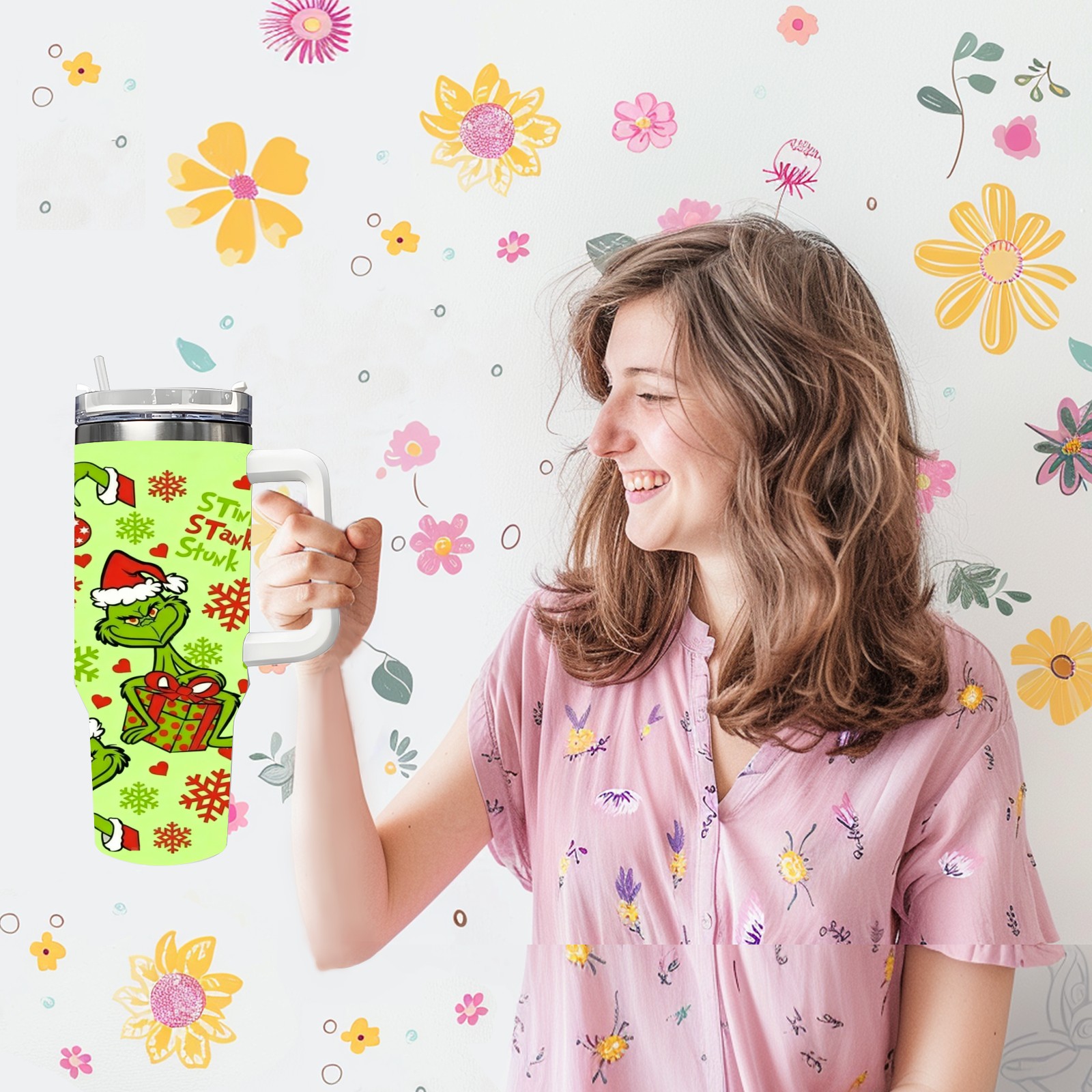 40 унций полностью напечатанный автомобильный стакан Grinch Christmas