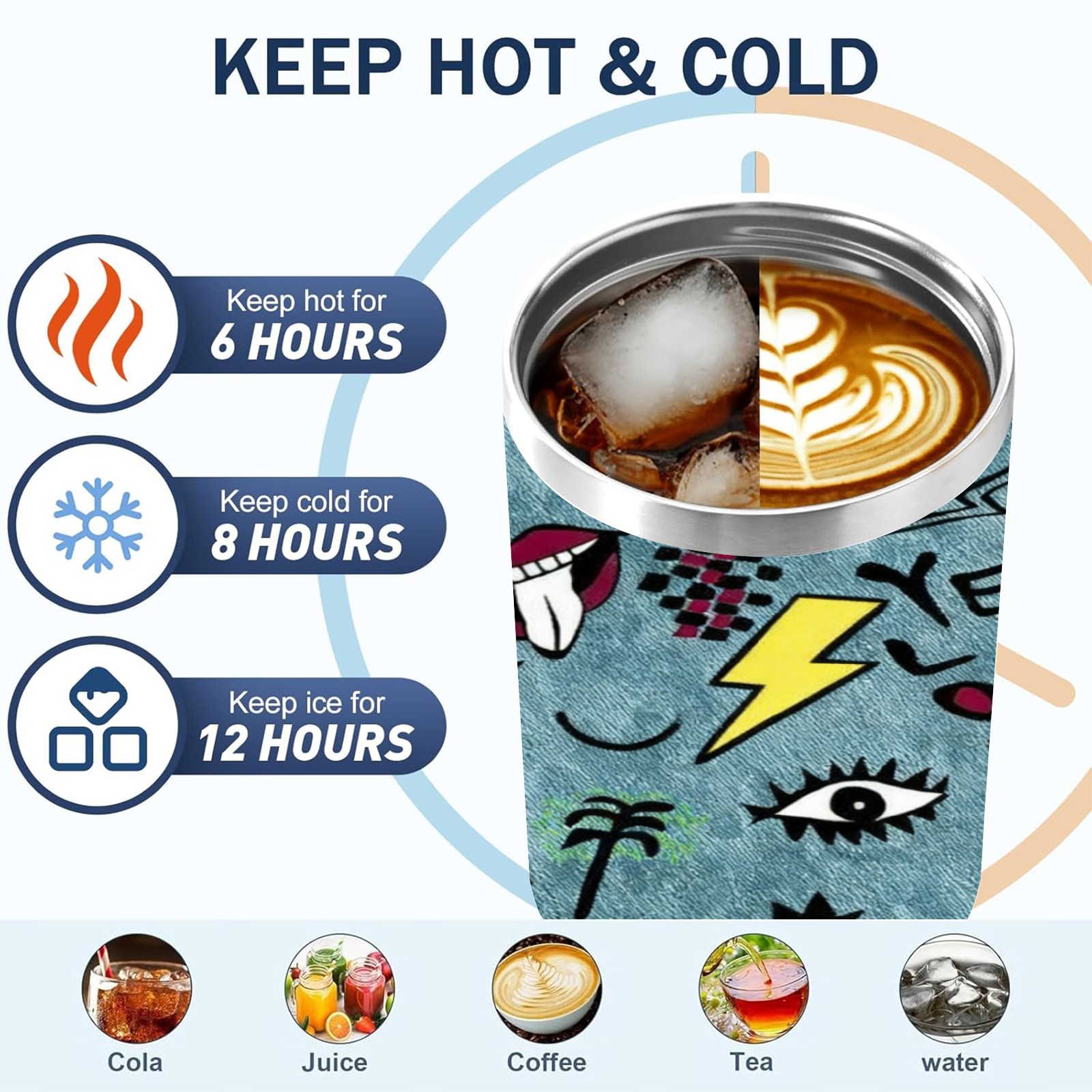 40 унций полностью напечатанный автомобильный стакан Music Elements Symbols