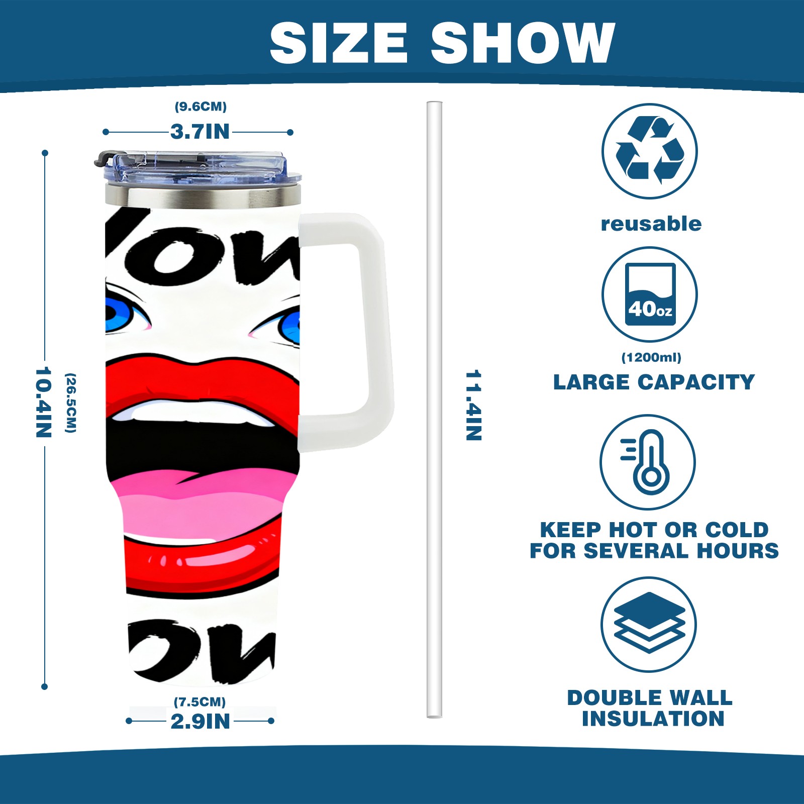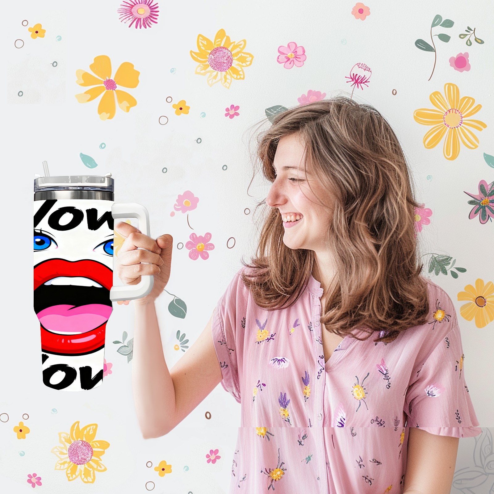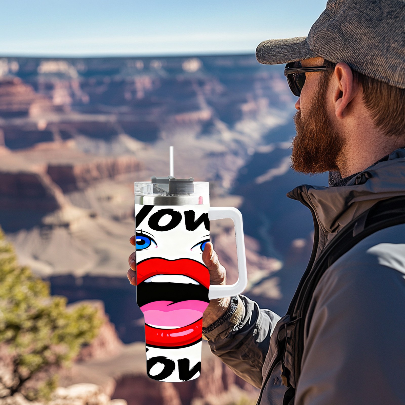 40 унций полностью напечатанный автомобильный стакан “Wow!” Red Lips