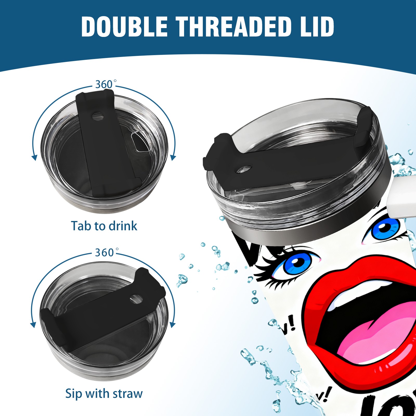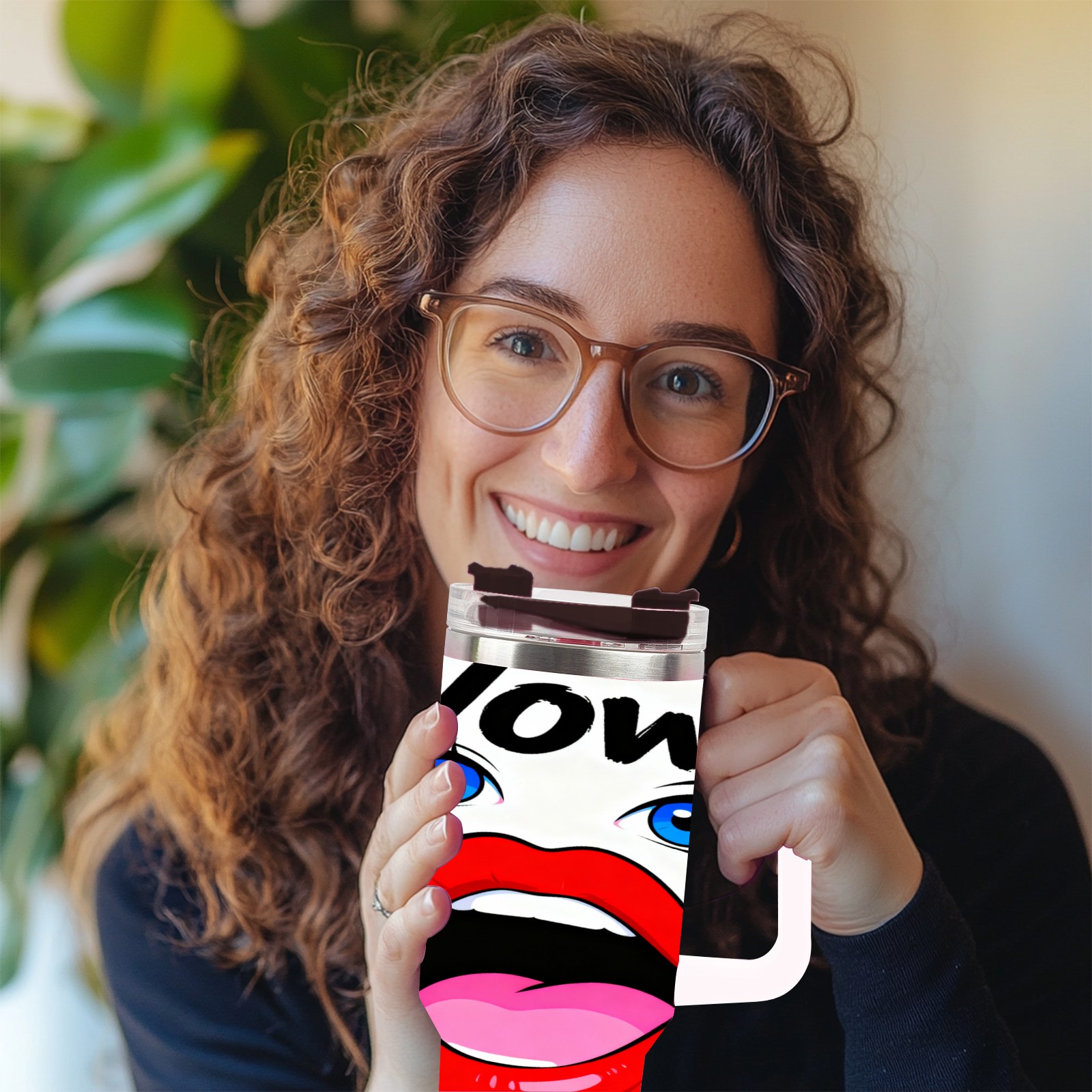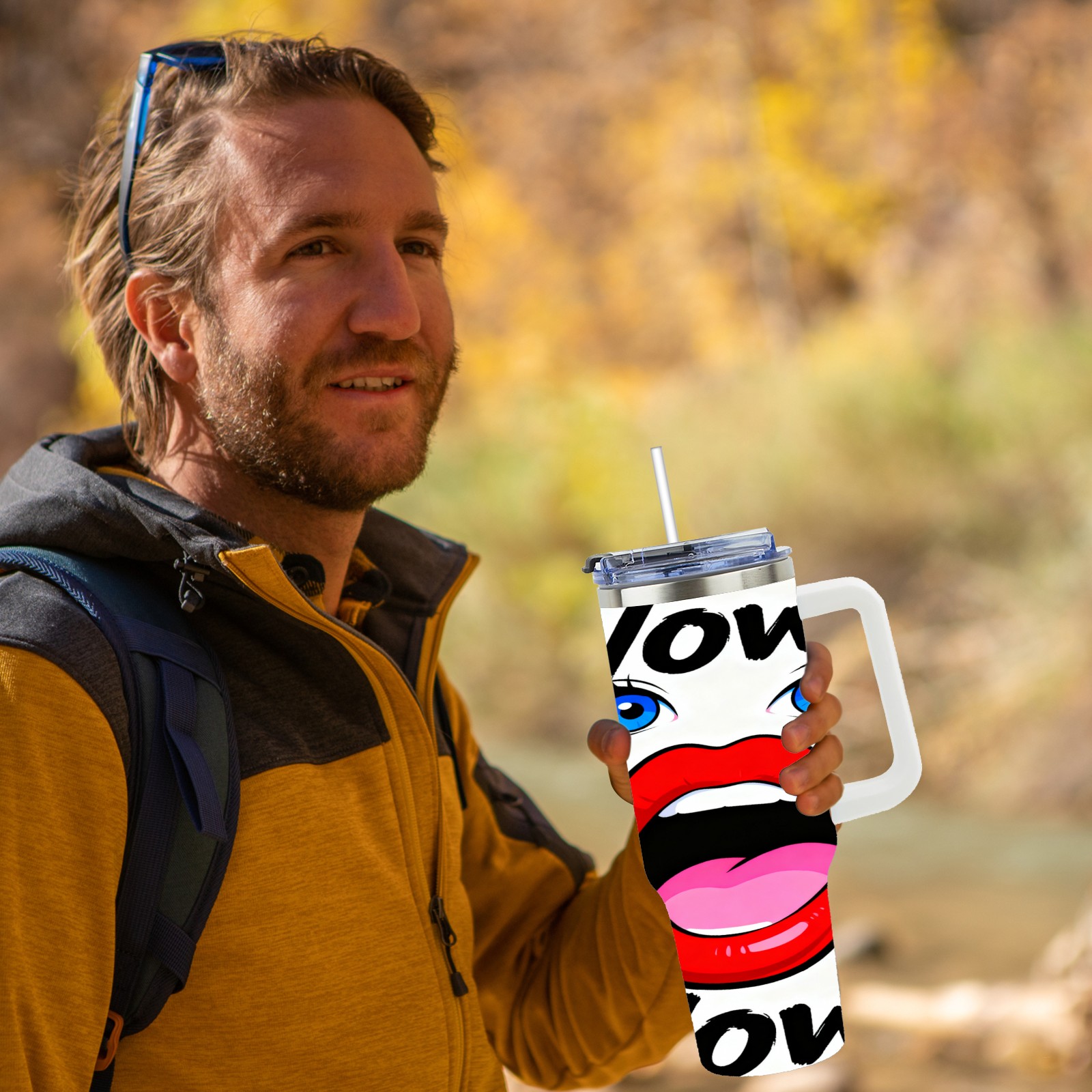 40 унций полностью напечатанный автомобильный стакан “Wow!” Red Lips