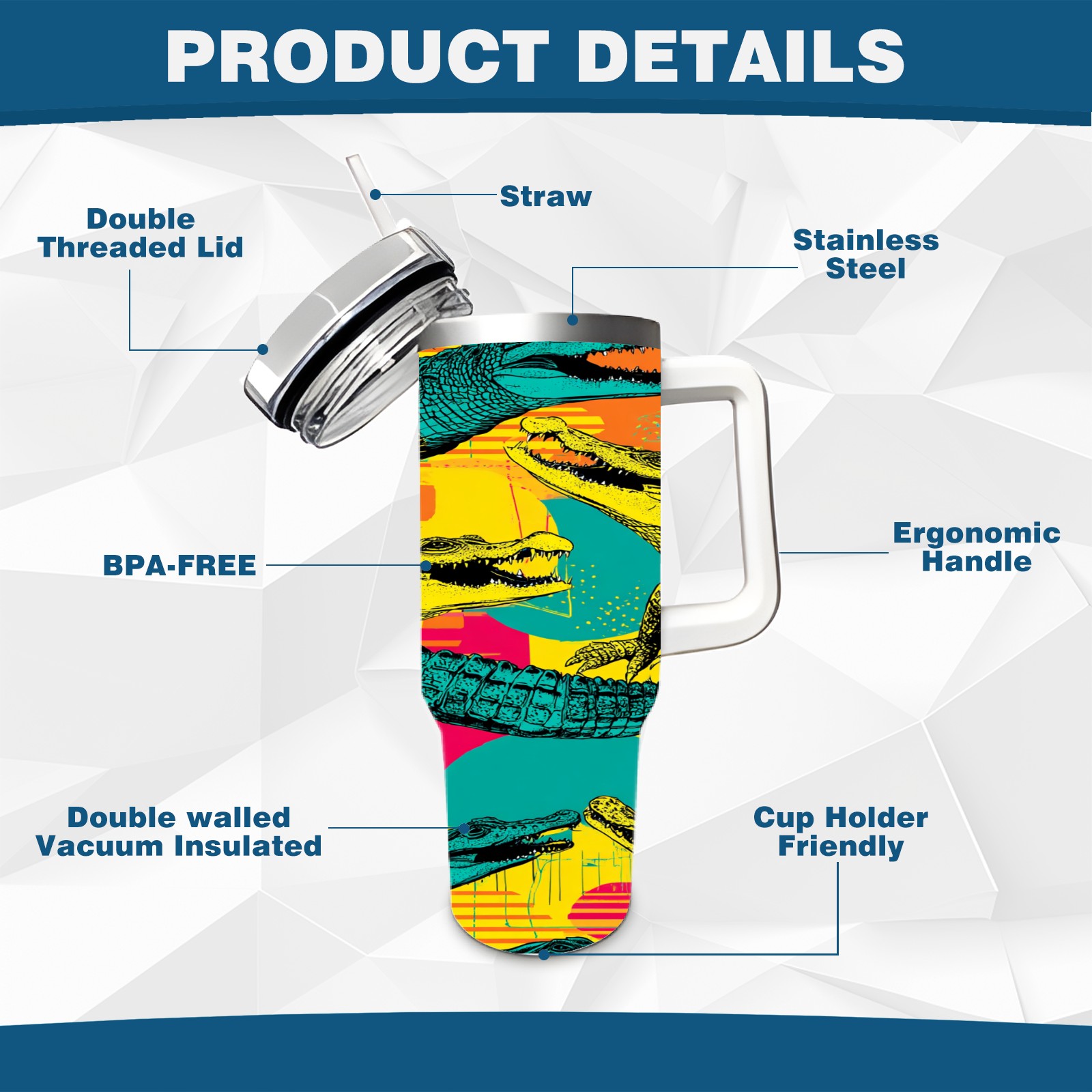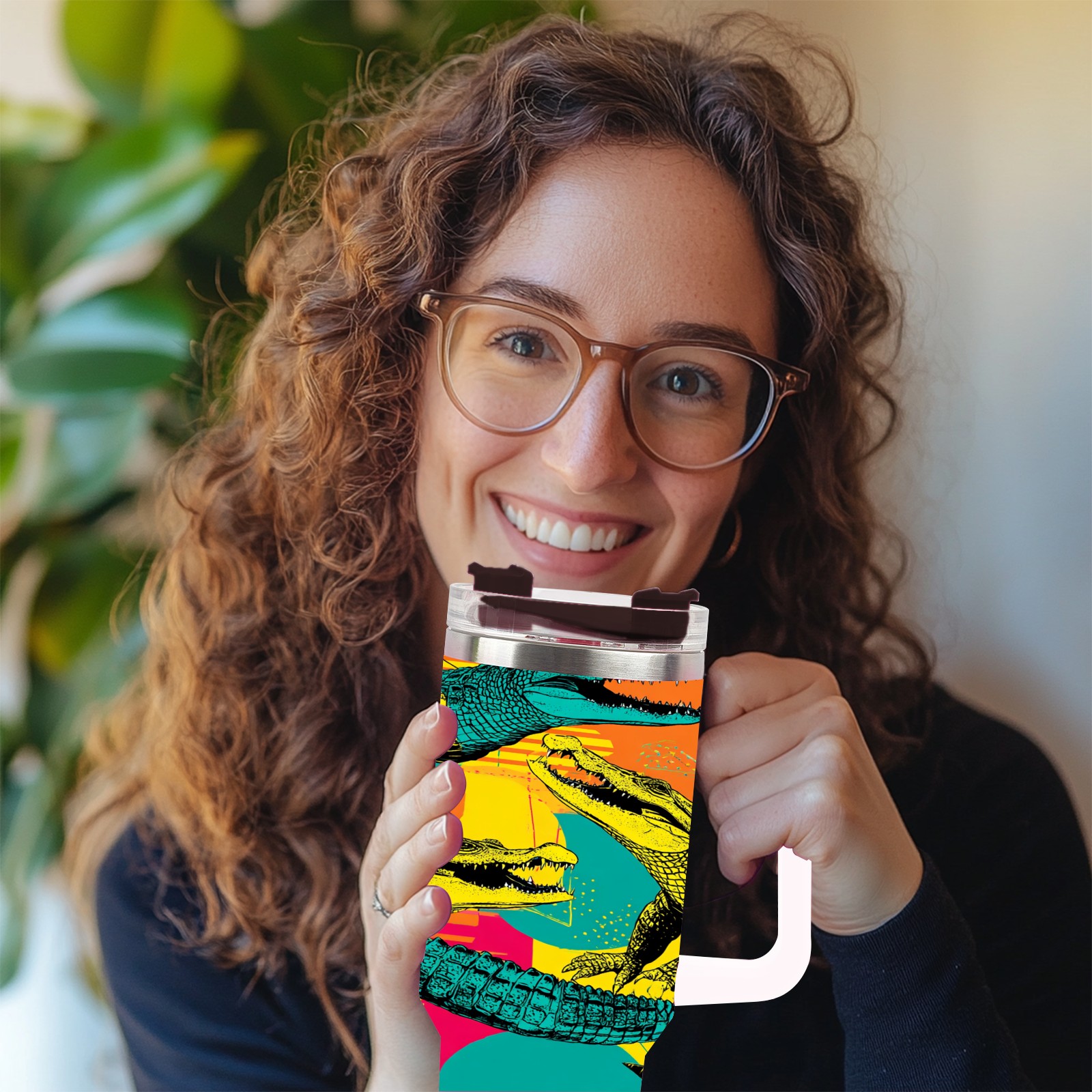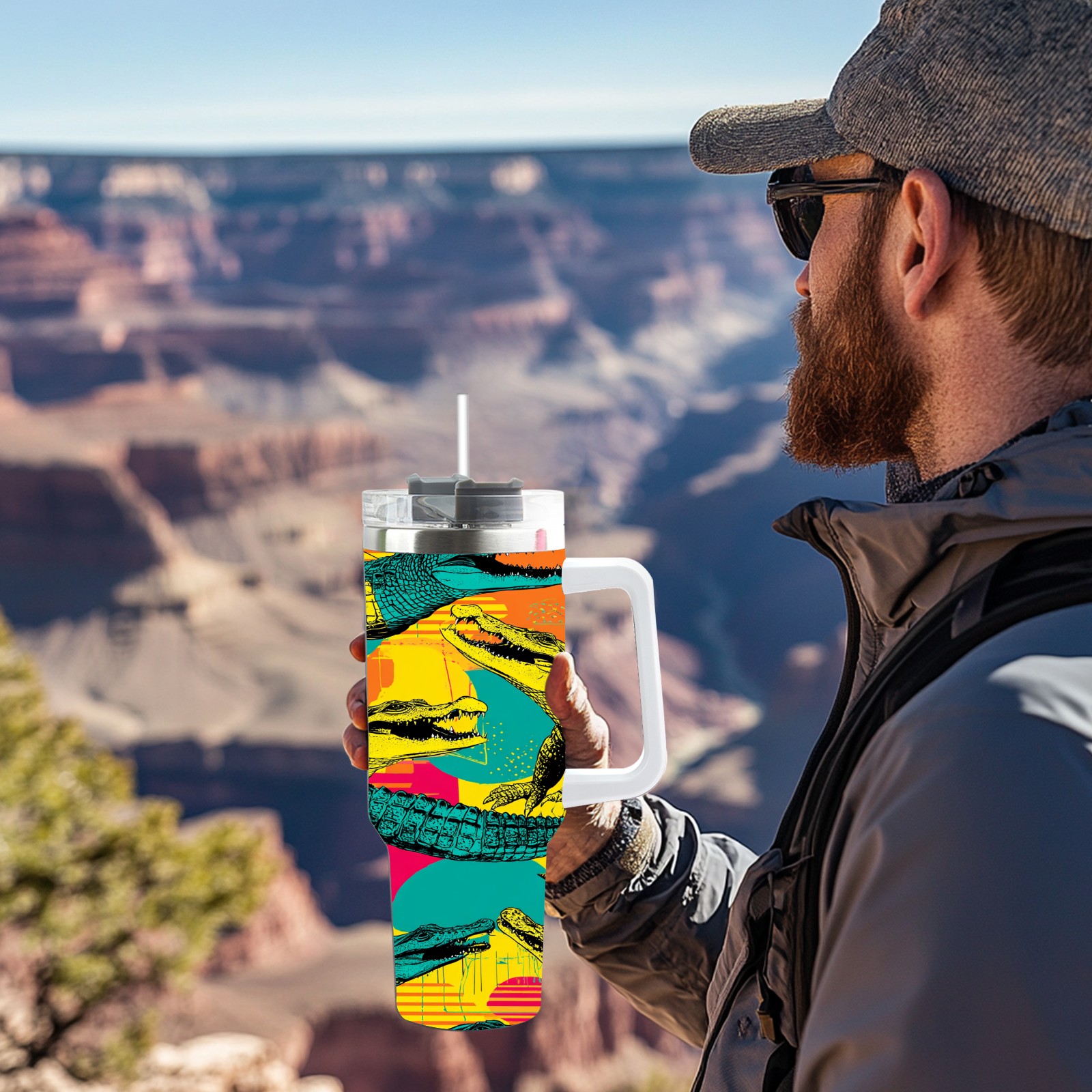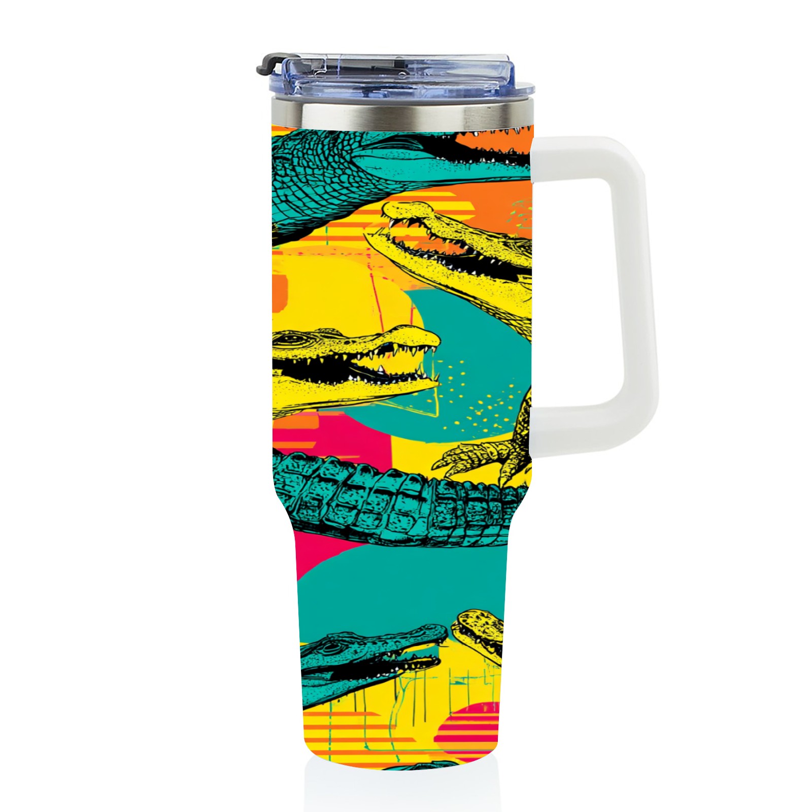 40 унций полностью напечатанный автомобильный стакан Multicolor Pop Art Crocodiles