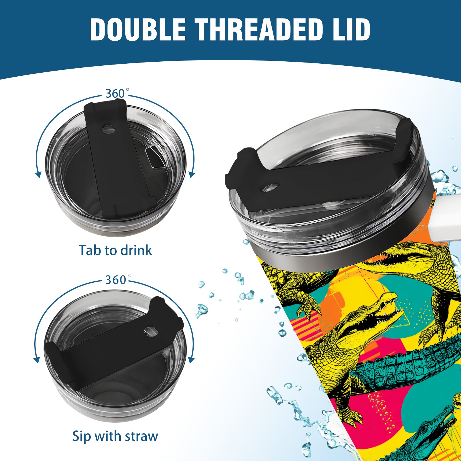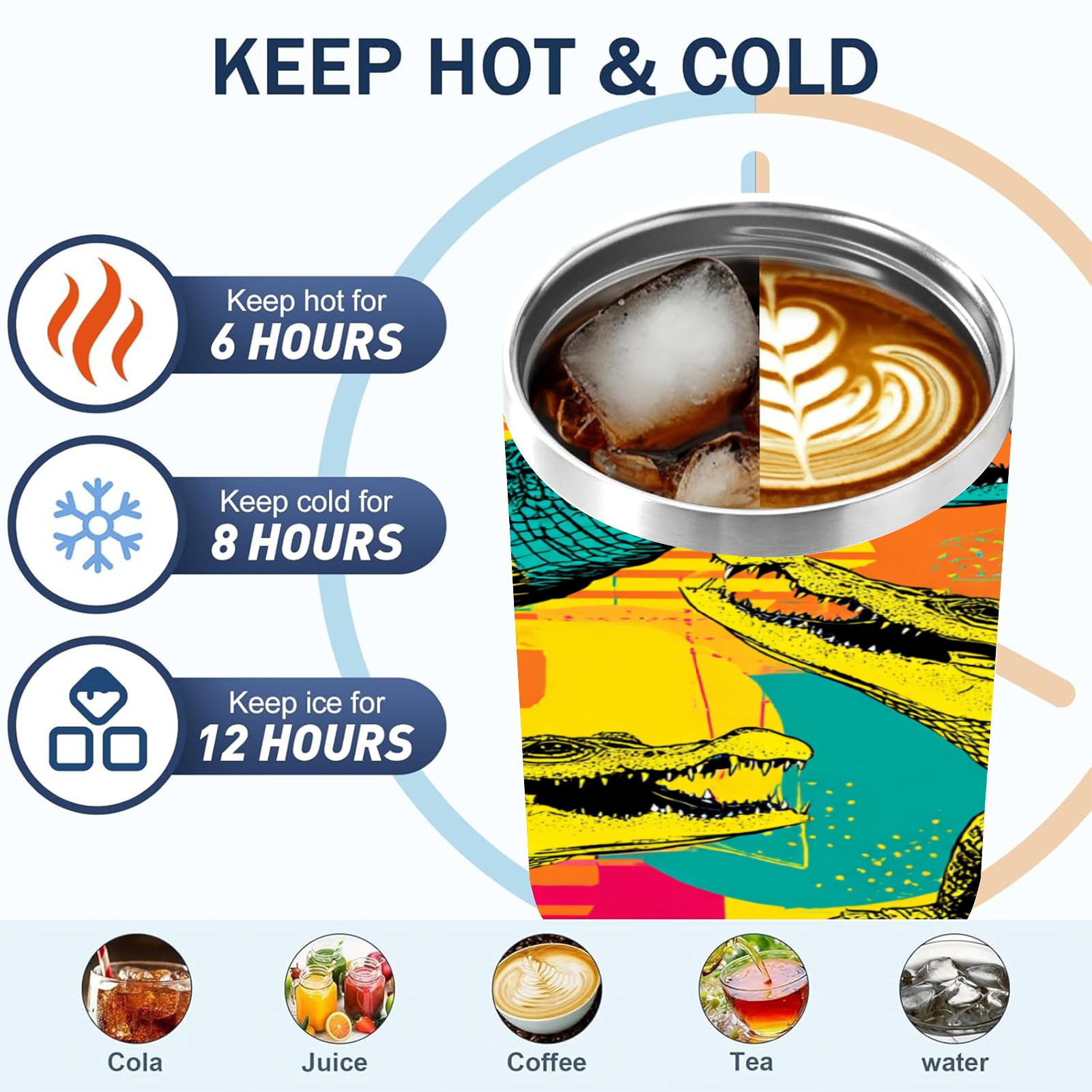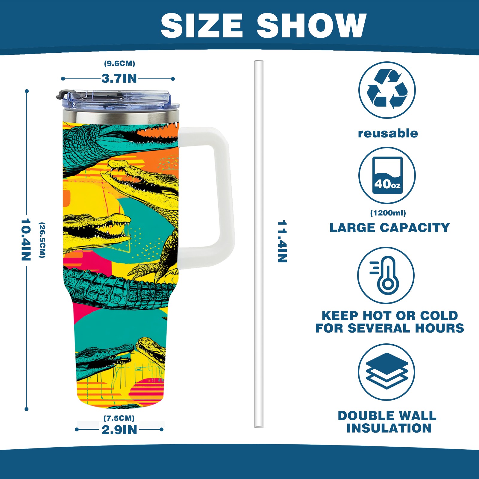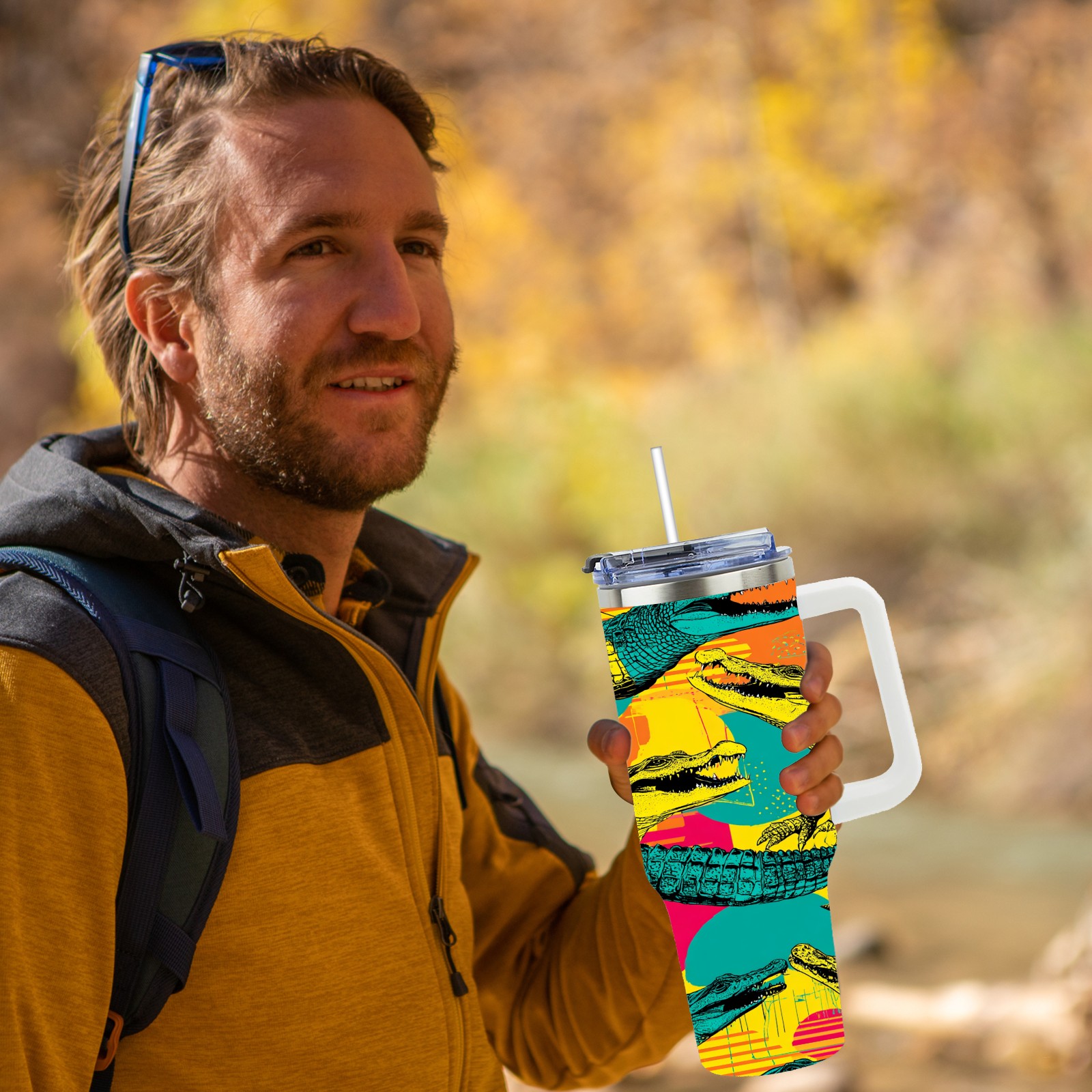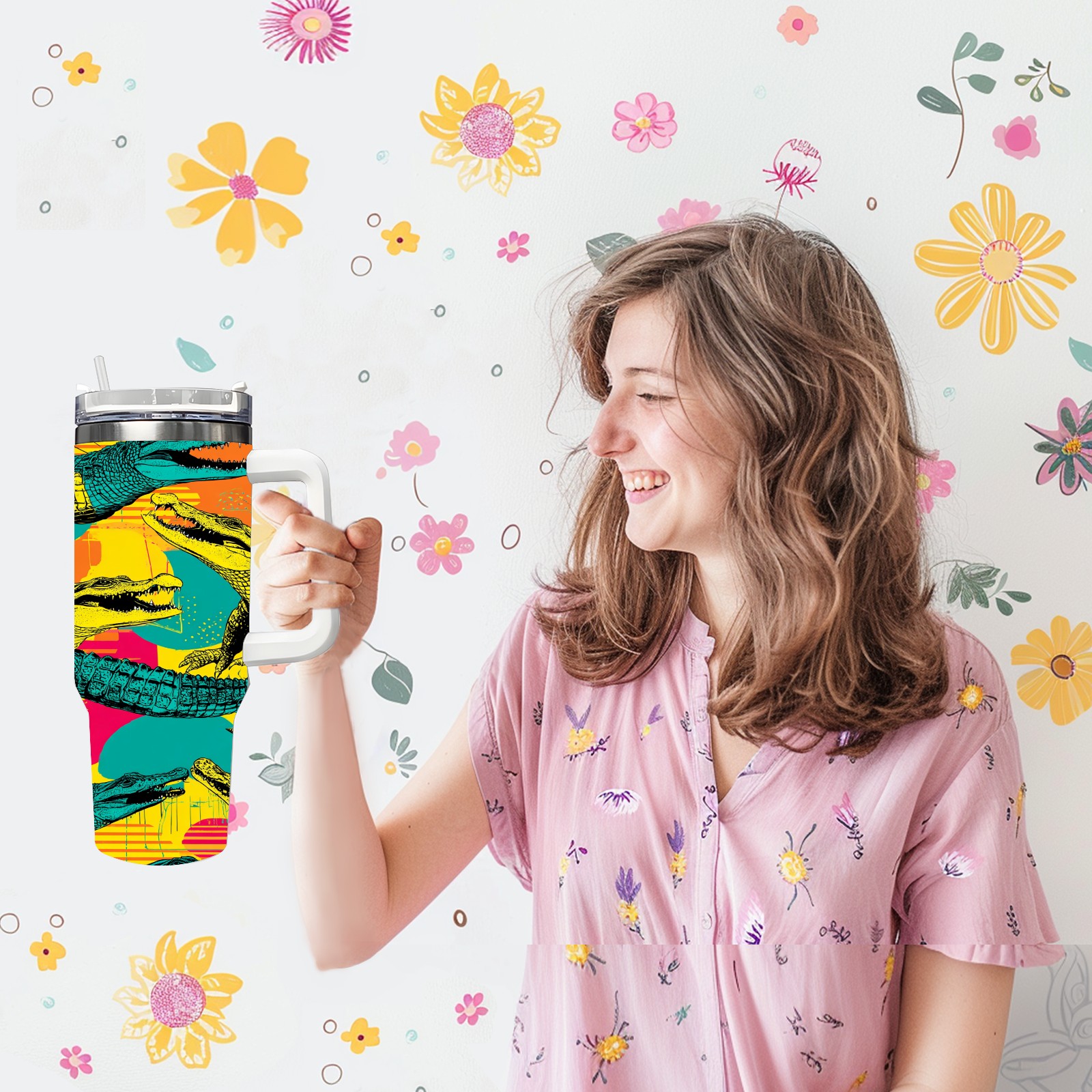 40 унций полностью напечатанный автомобильный стакан Multicolor Pop Art Crocodiles