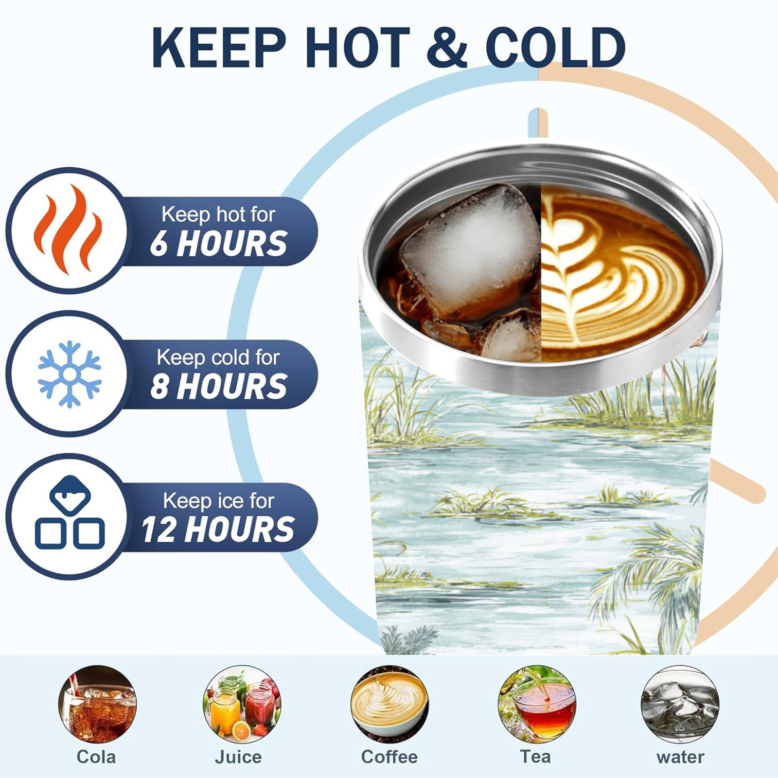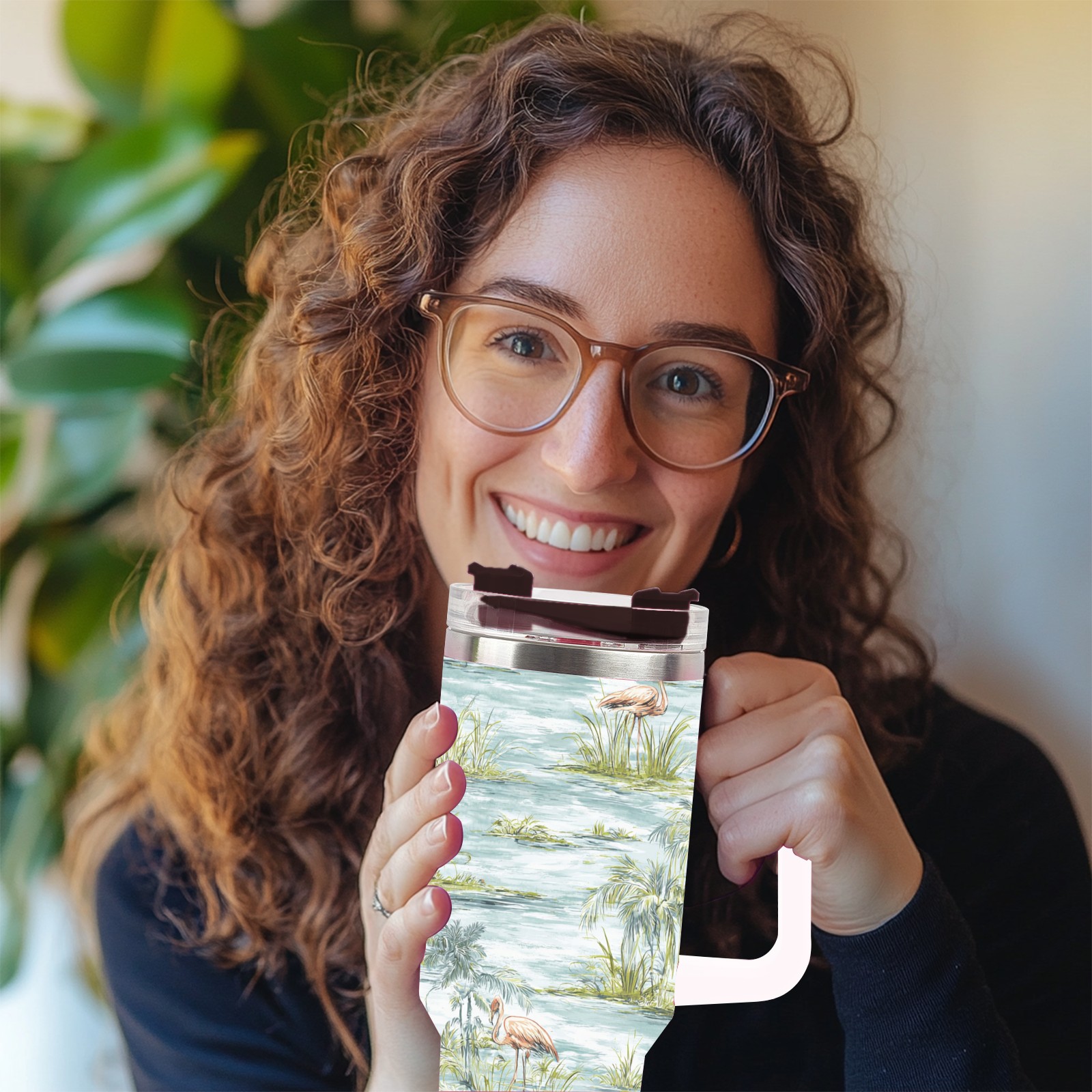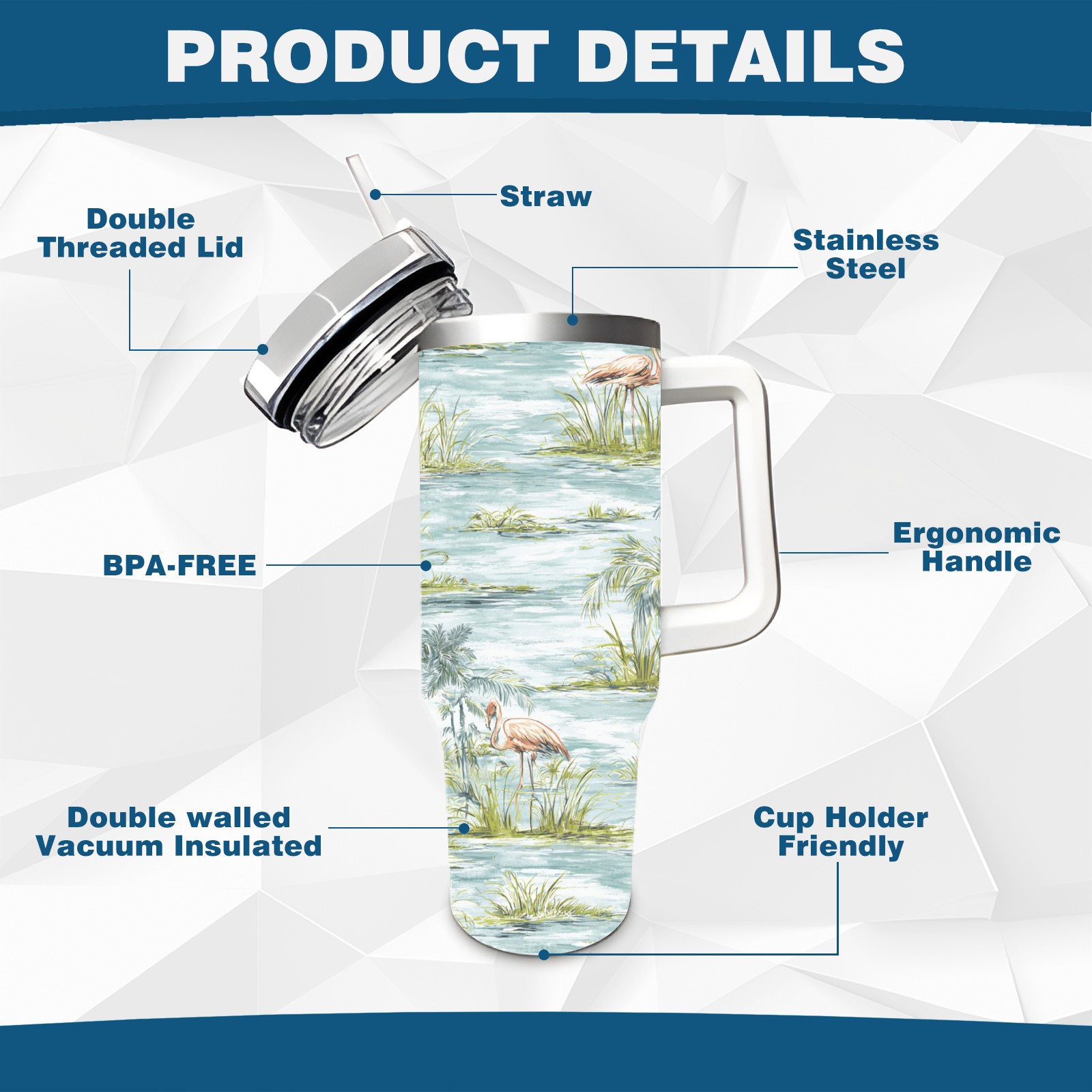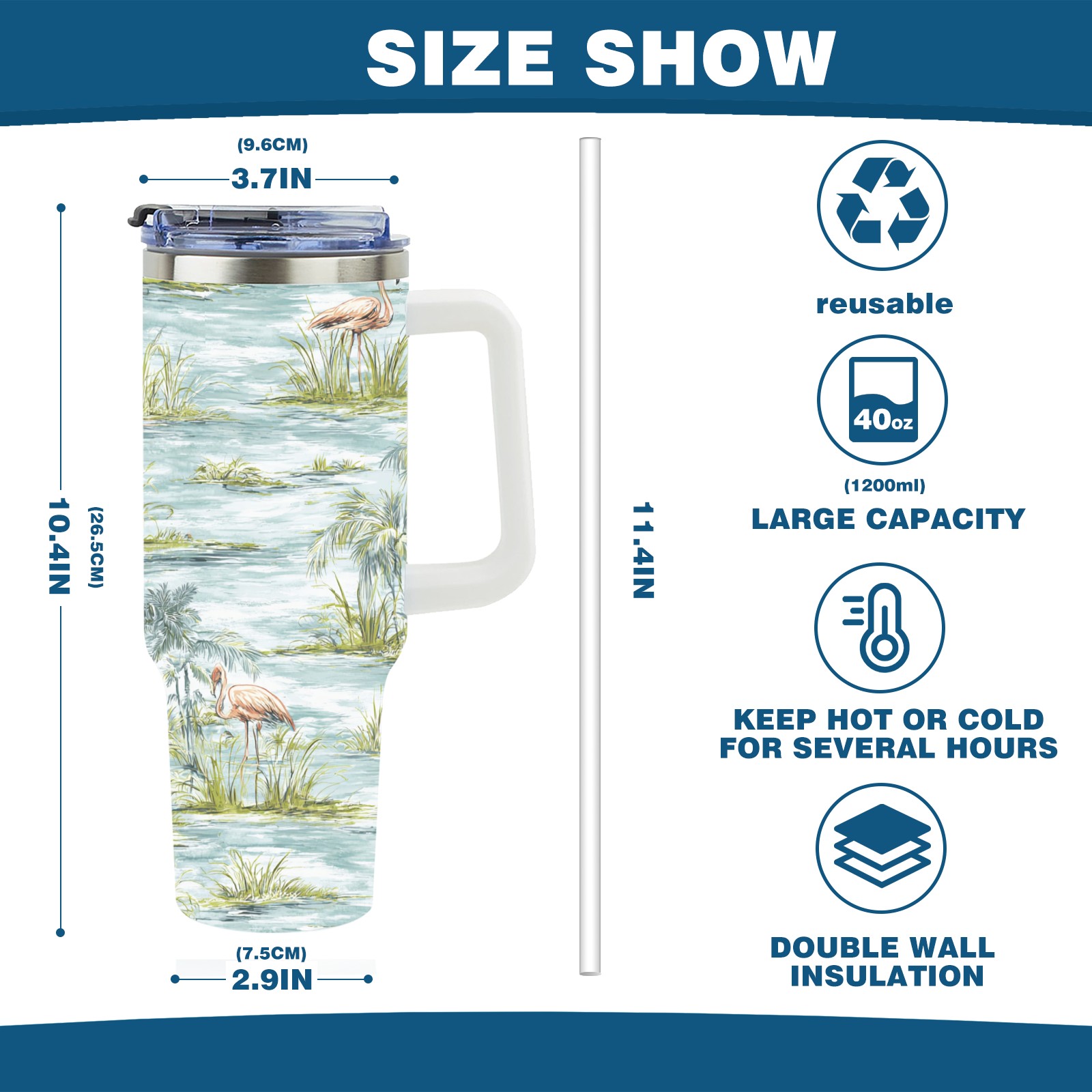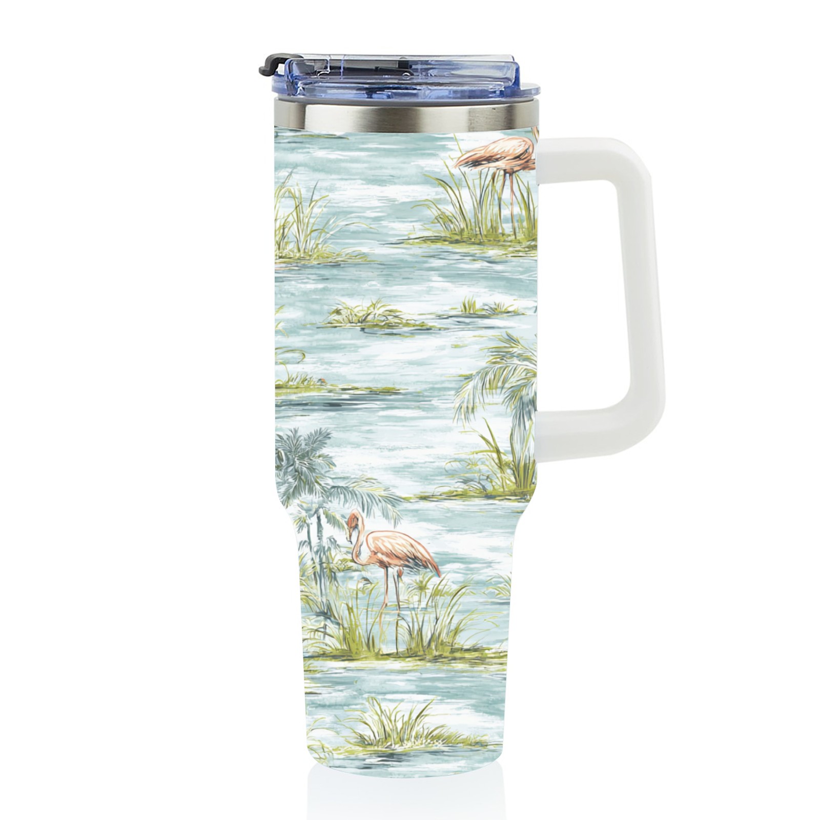40 унций полностью напечатанный автомобильный стакан Blue Watercolor Flamingos