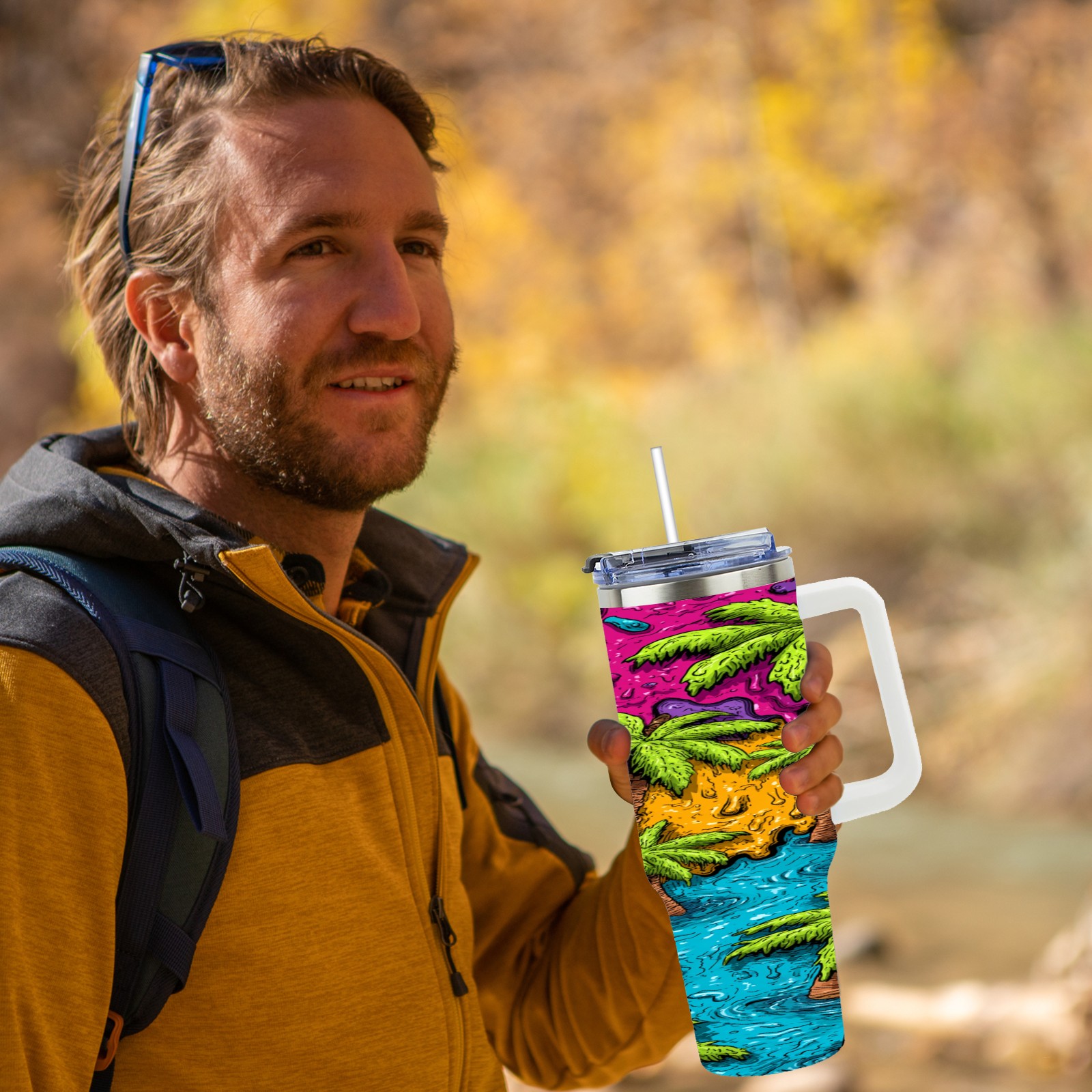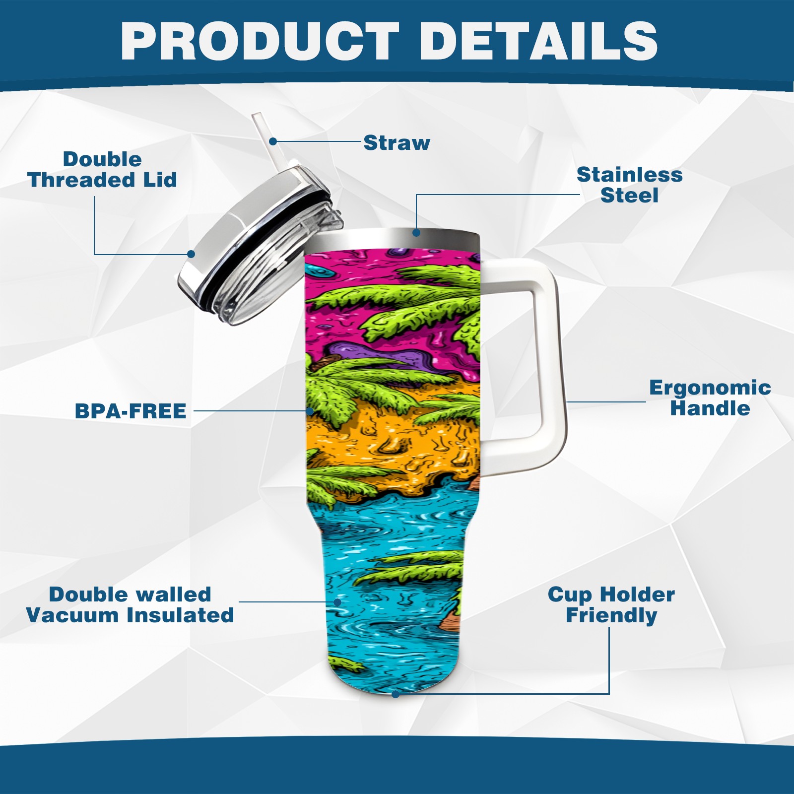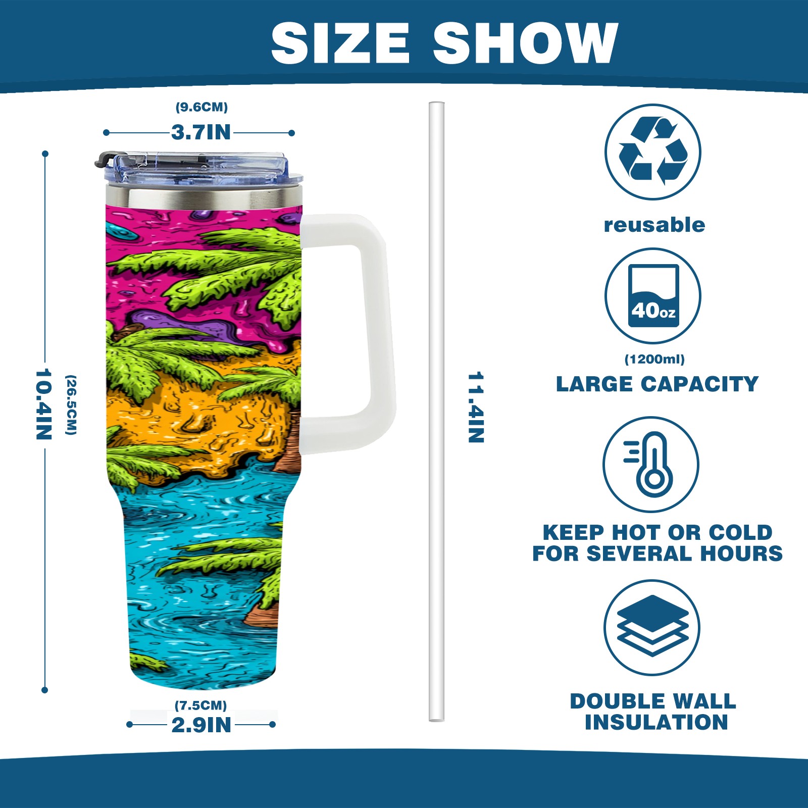 • С большой емкостью 40 унций, он обеспечивает вас гидратацией в течение всего дня, идеально подходит для воды, кофе, сока или других напитков. Эргономичный дизайн идеально вписывается в автомобильные держатели для бутылок, а прочный, герметичный колпачок предотвращает утечки во время передвижения. Путешествие. Антискользящее основание обеспечивает устойчивость, а гладкие поверхности делают уборку легкой — просто мойте вручную или кладите в посудомоечную машину (рекомендуется верхний поддон).