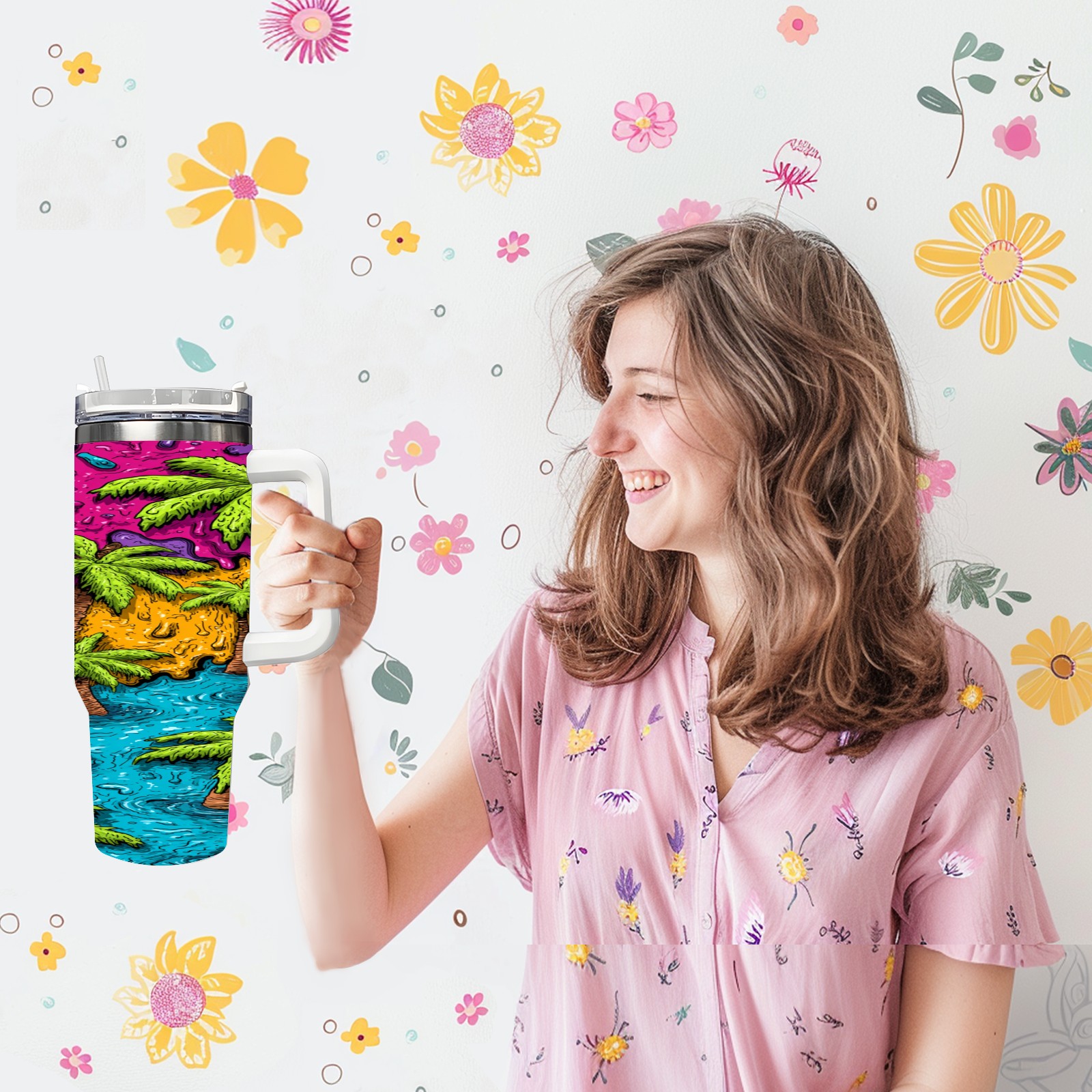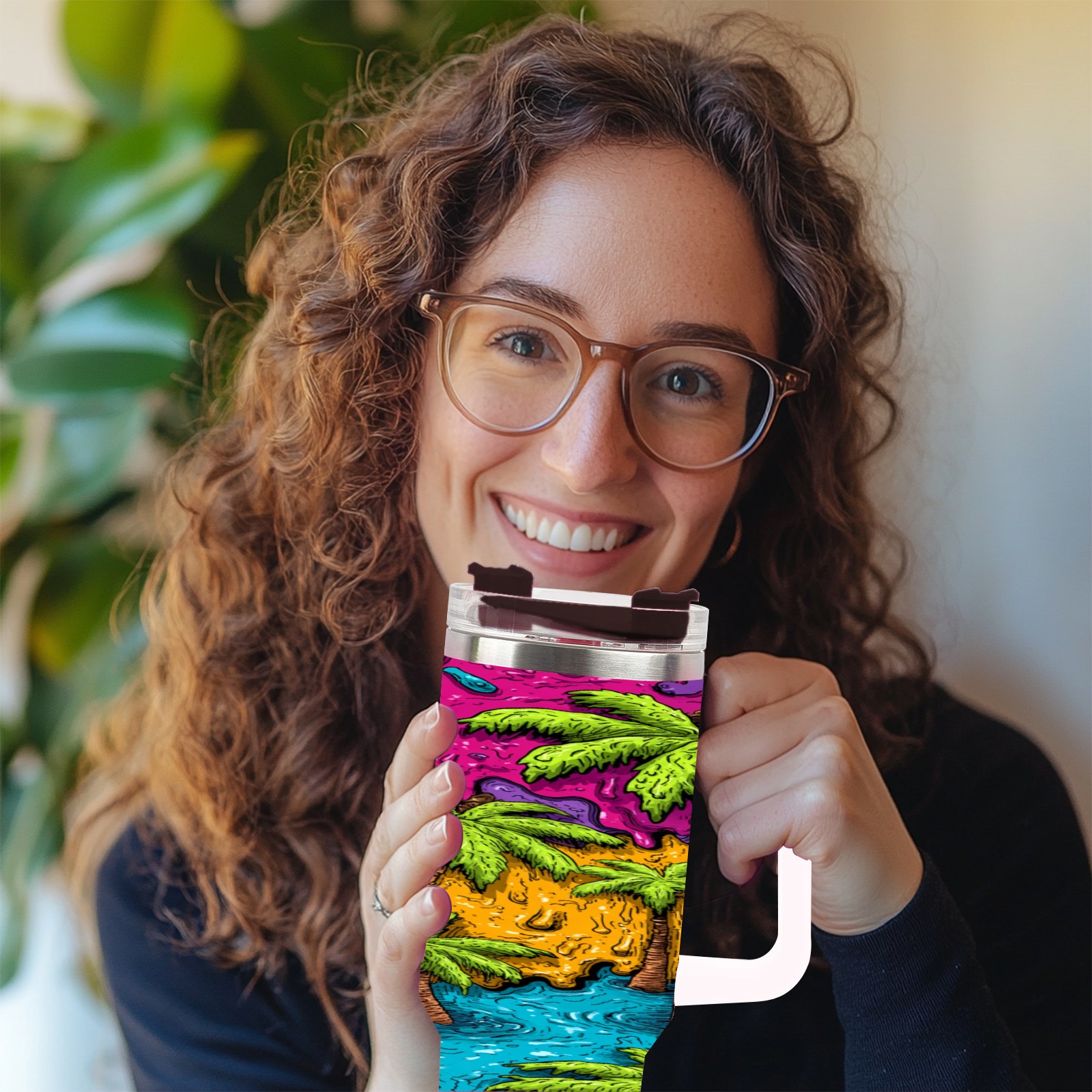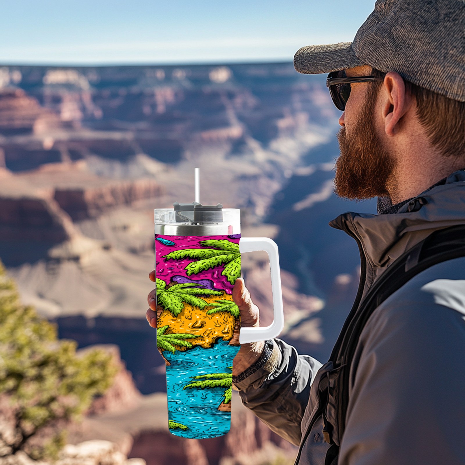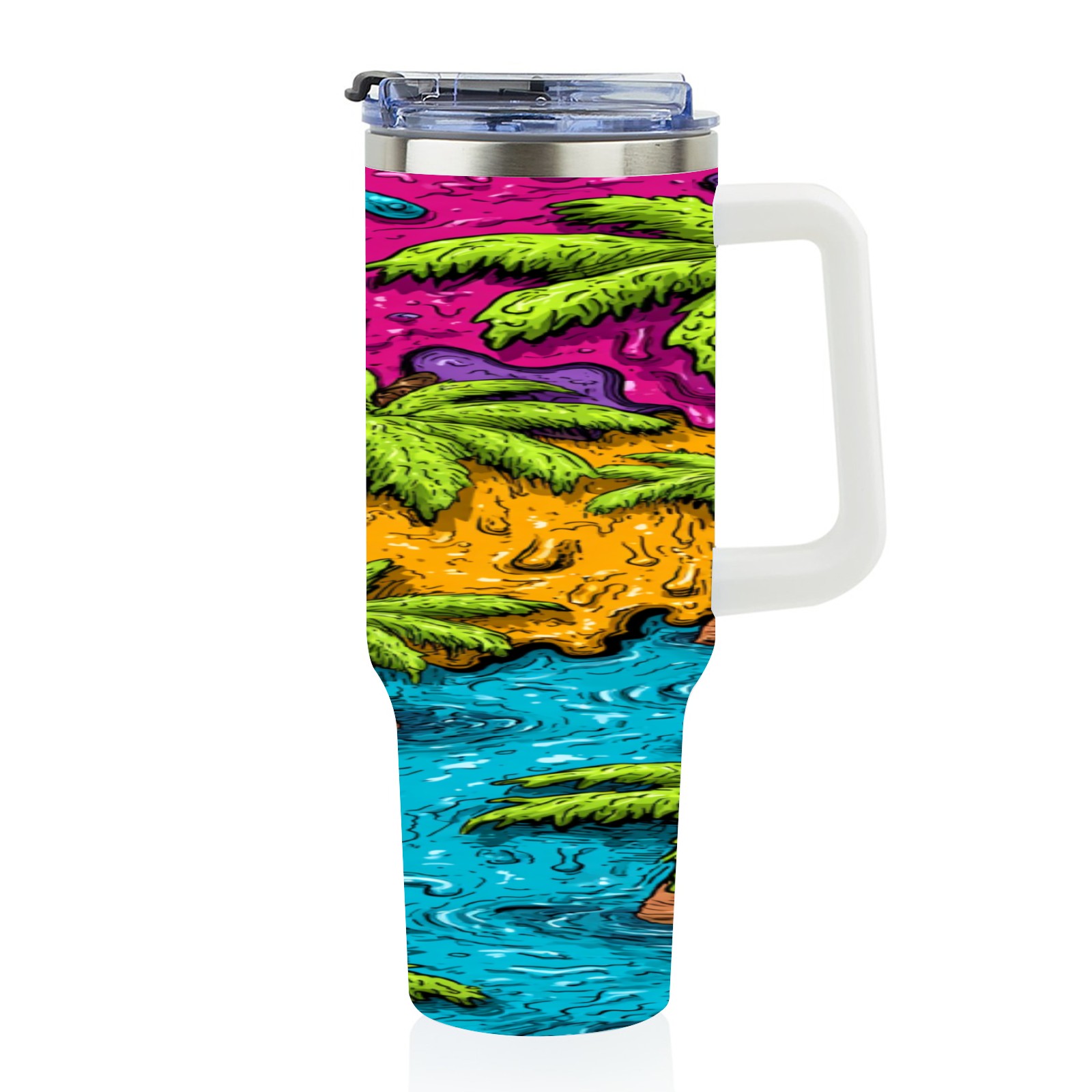 40 унций полностью напечатанный автомобильный стакан Green Tropical Palms