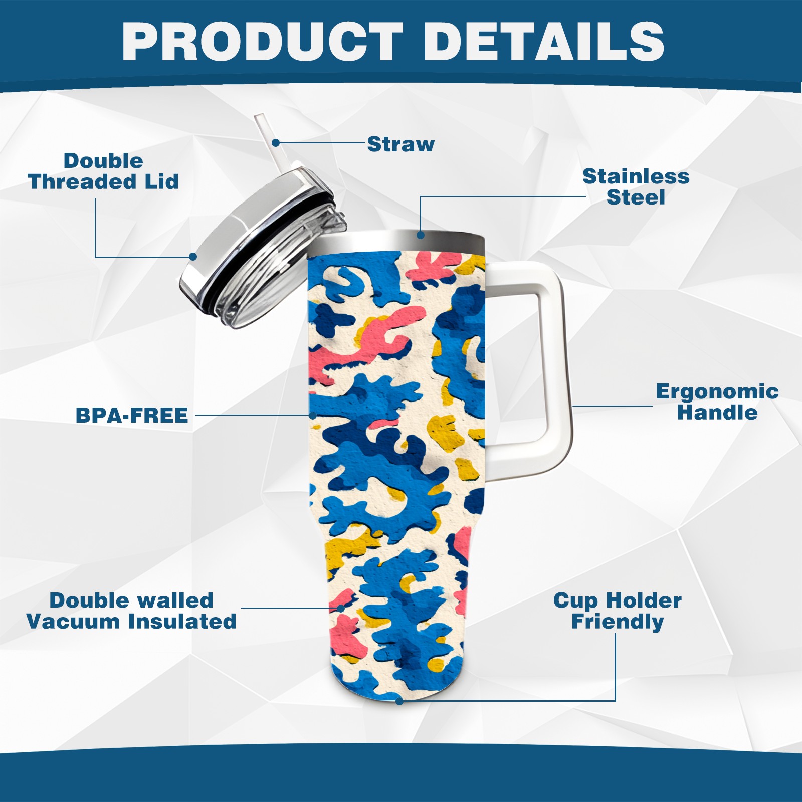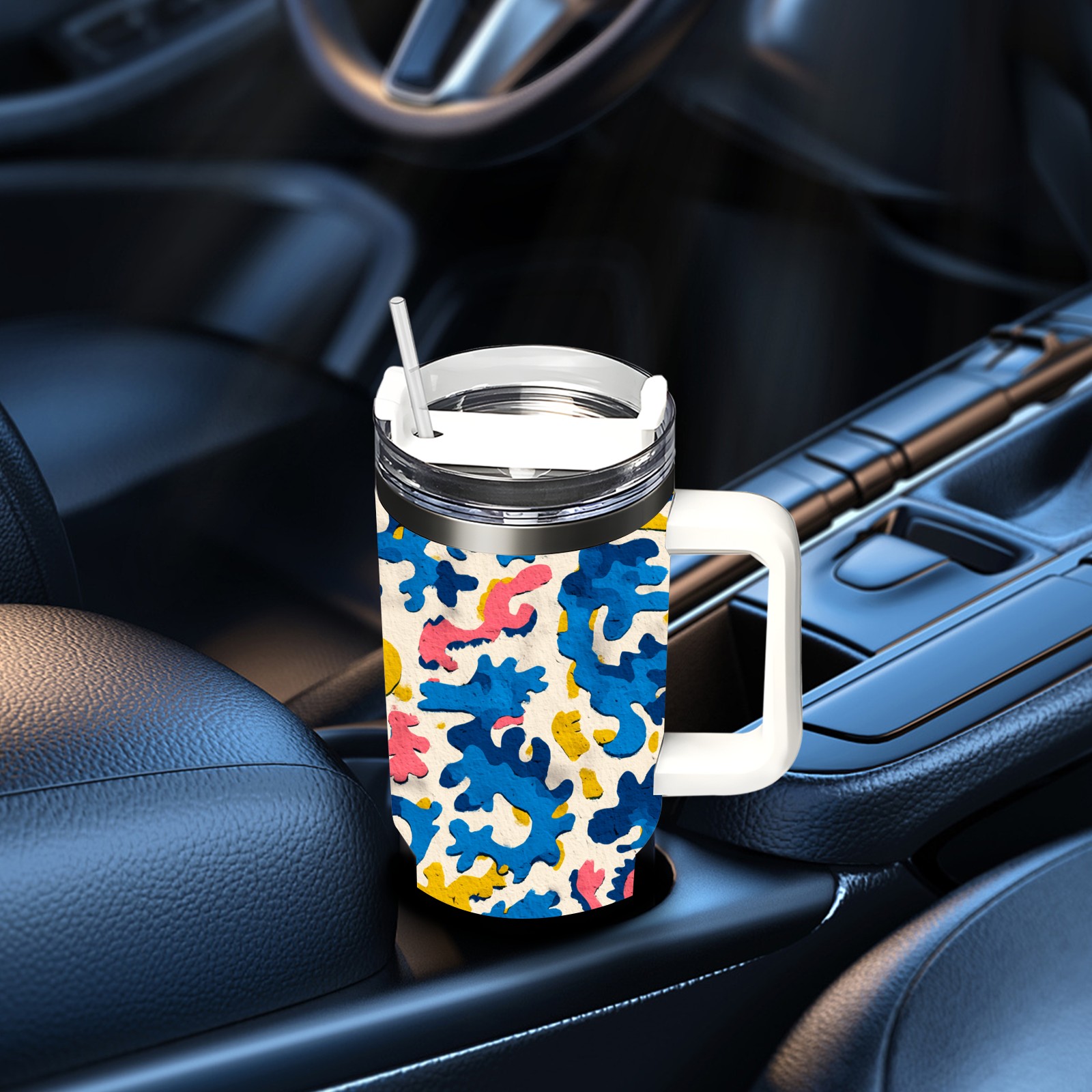 40 унций полностью напечатанный автомобильный стакан Blue Abstract Pattern
