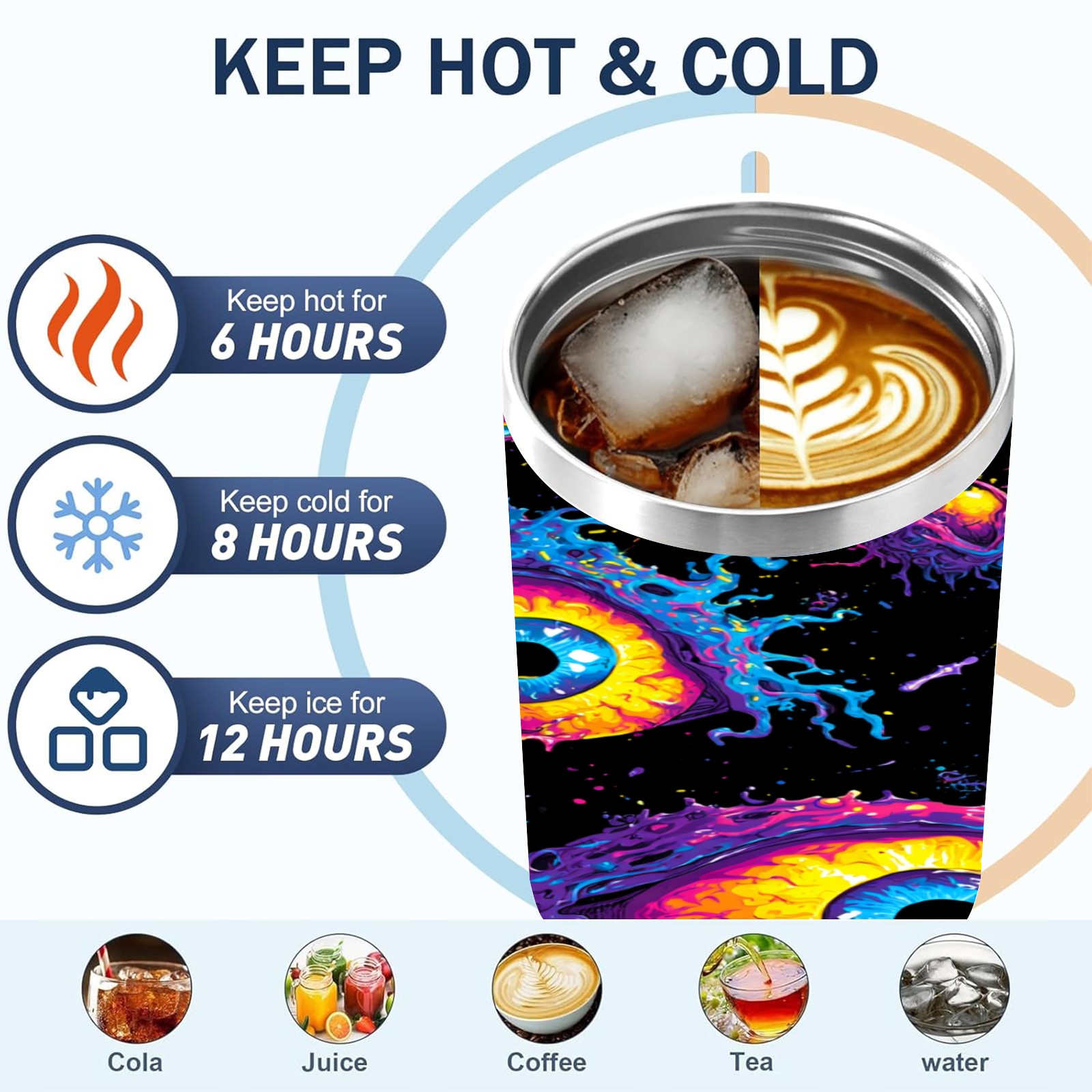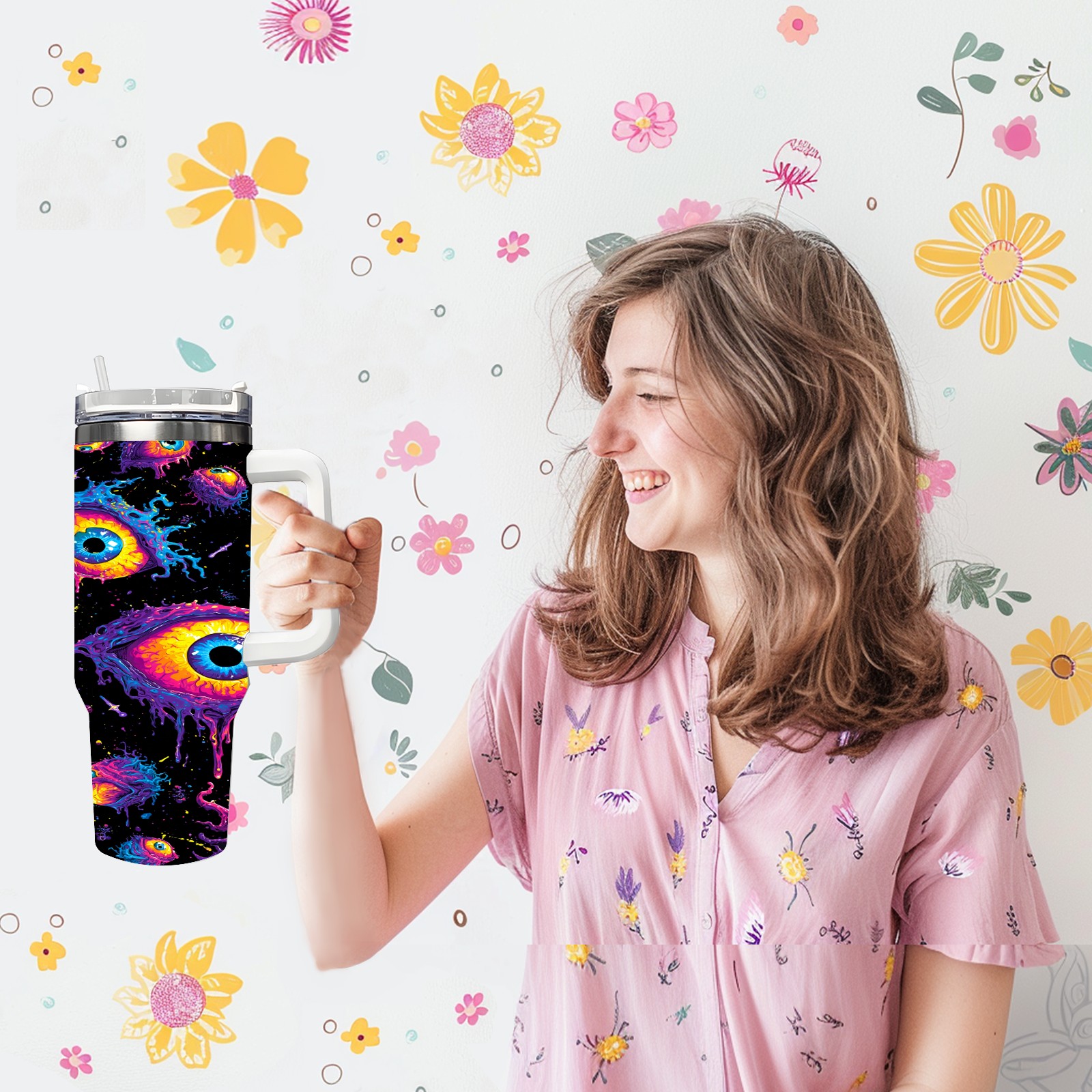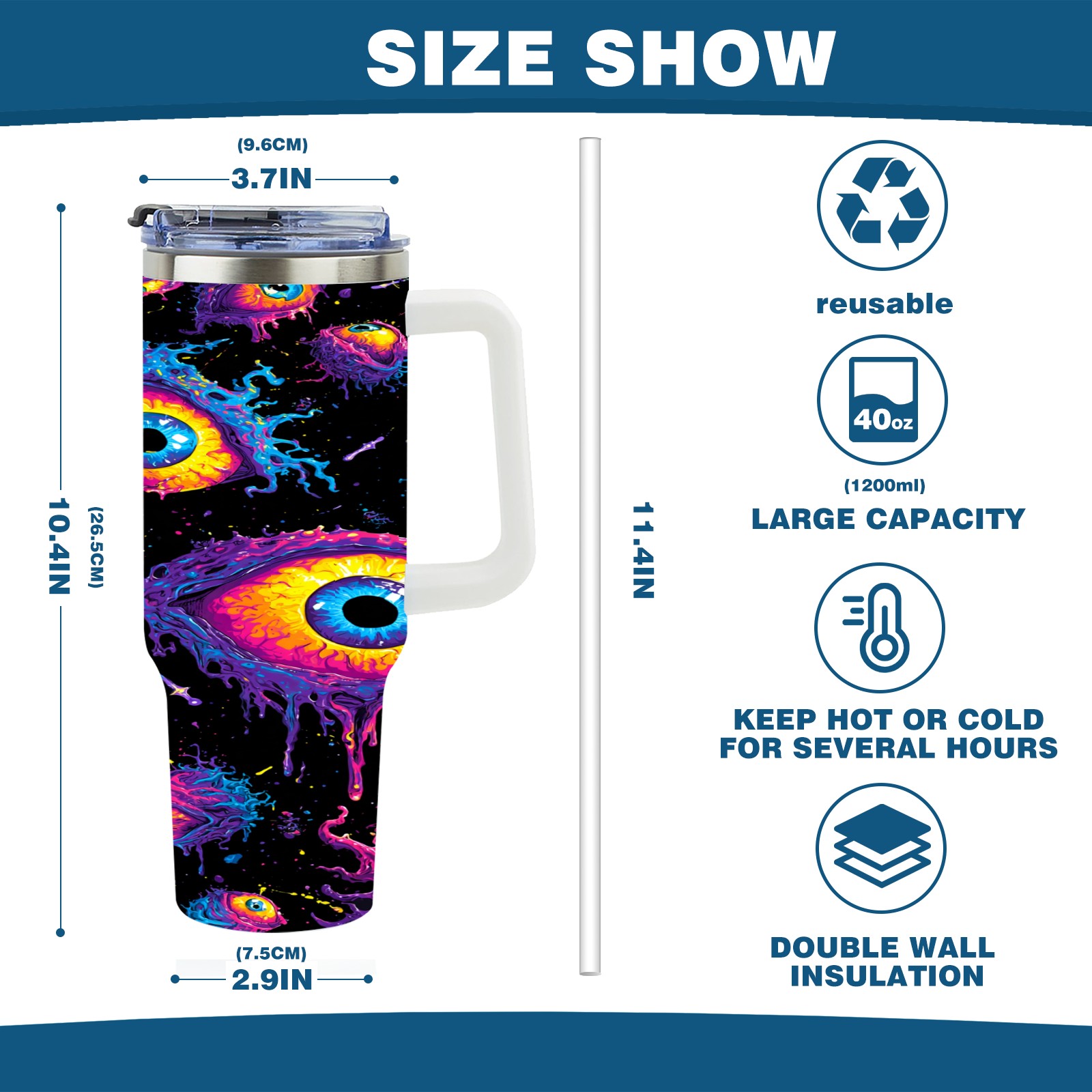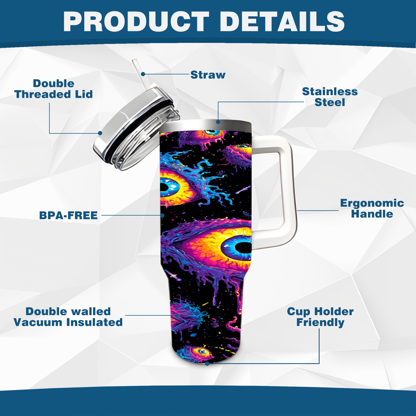 40 унций полностью напечатанный автомобильный стакан Multicolor Eyes
