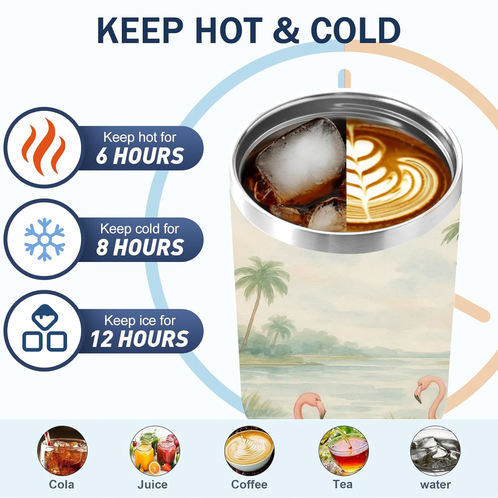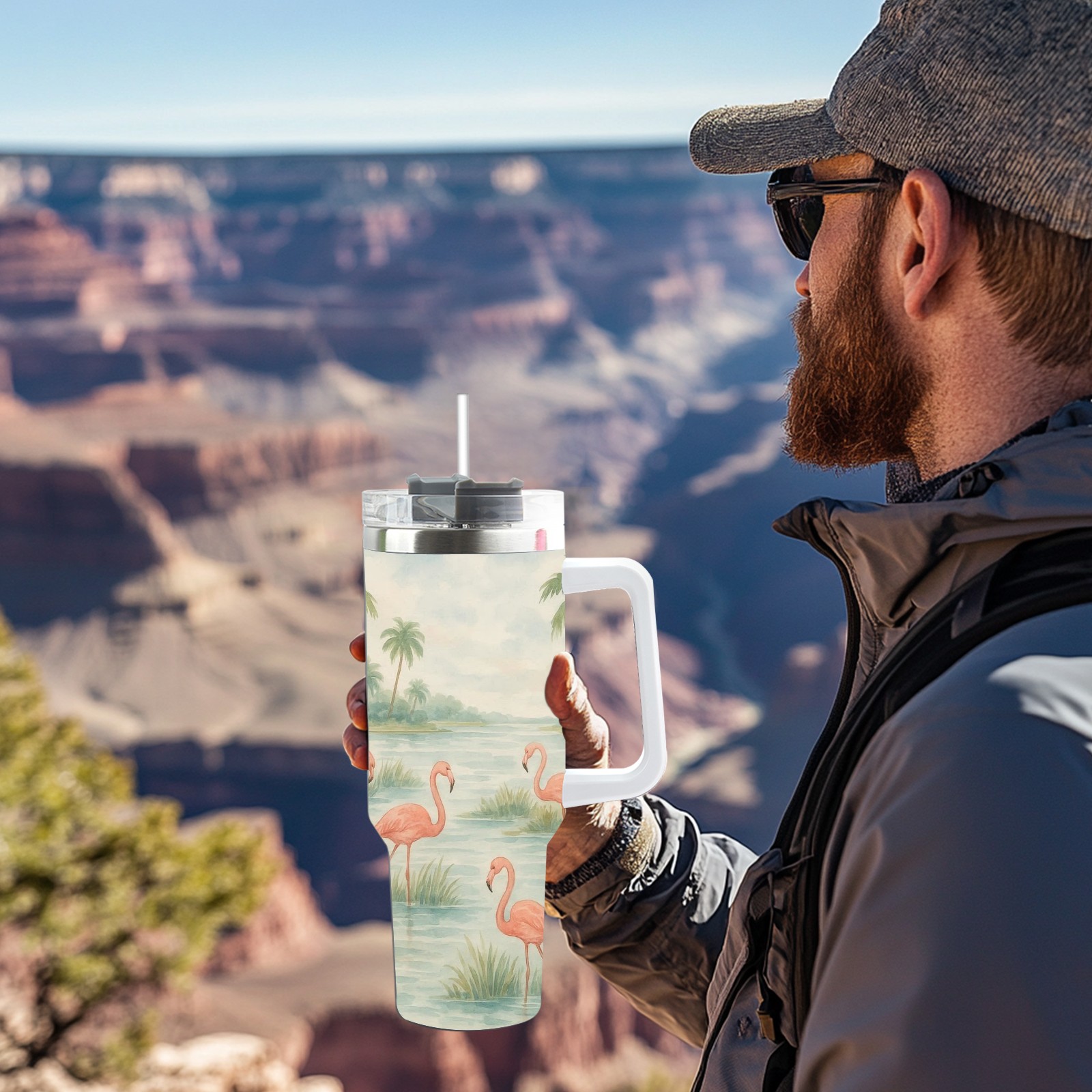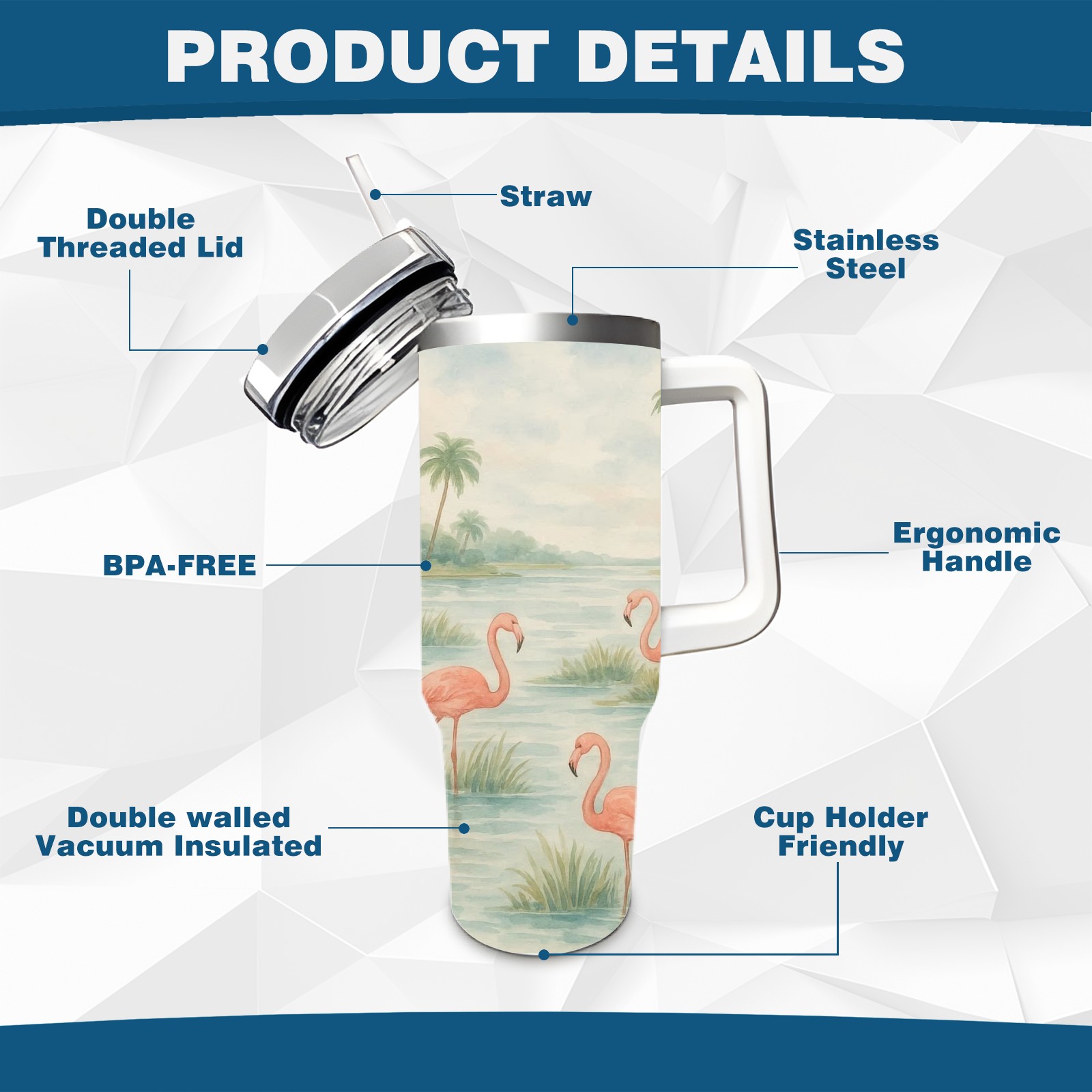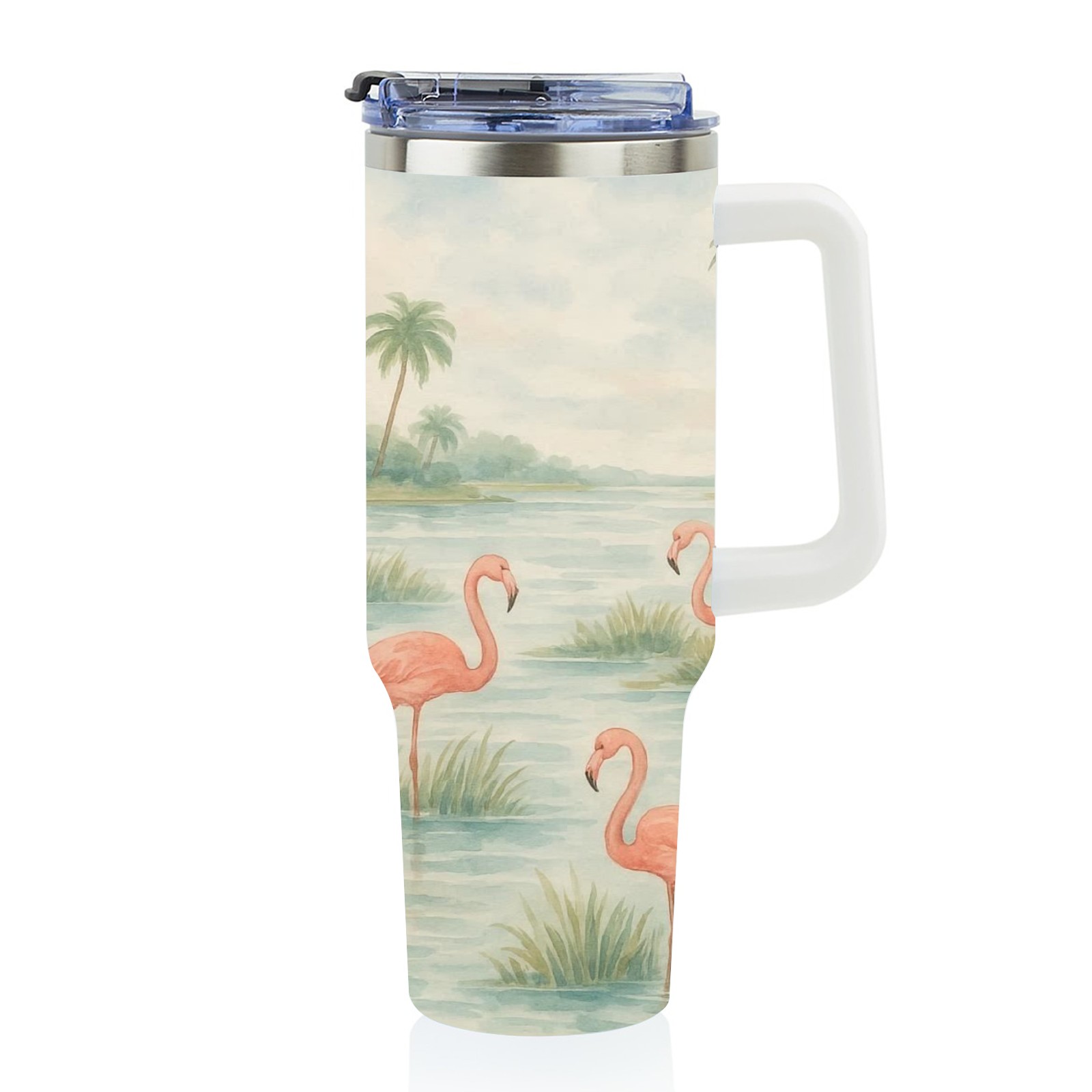 40 унций полностью напечатанный автомобильный стакан Beige Flamingos Watercolor
