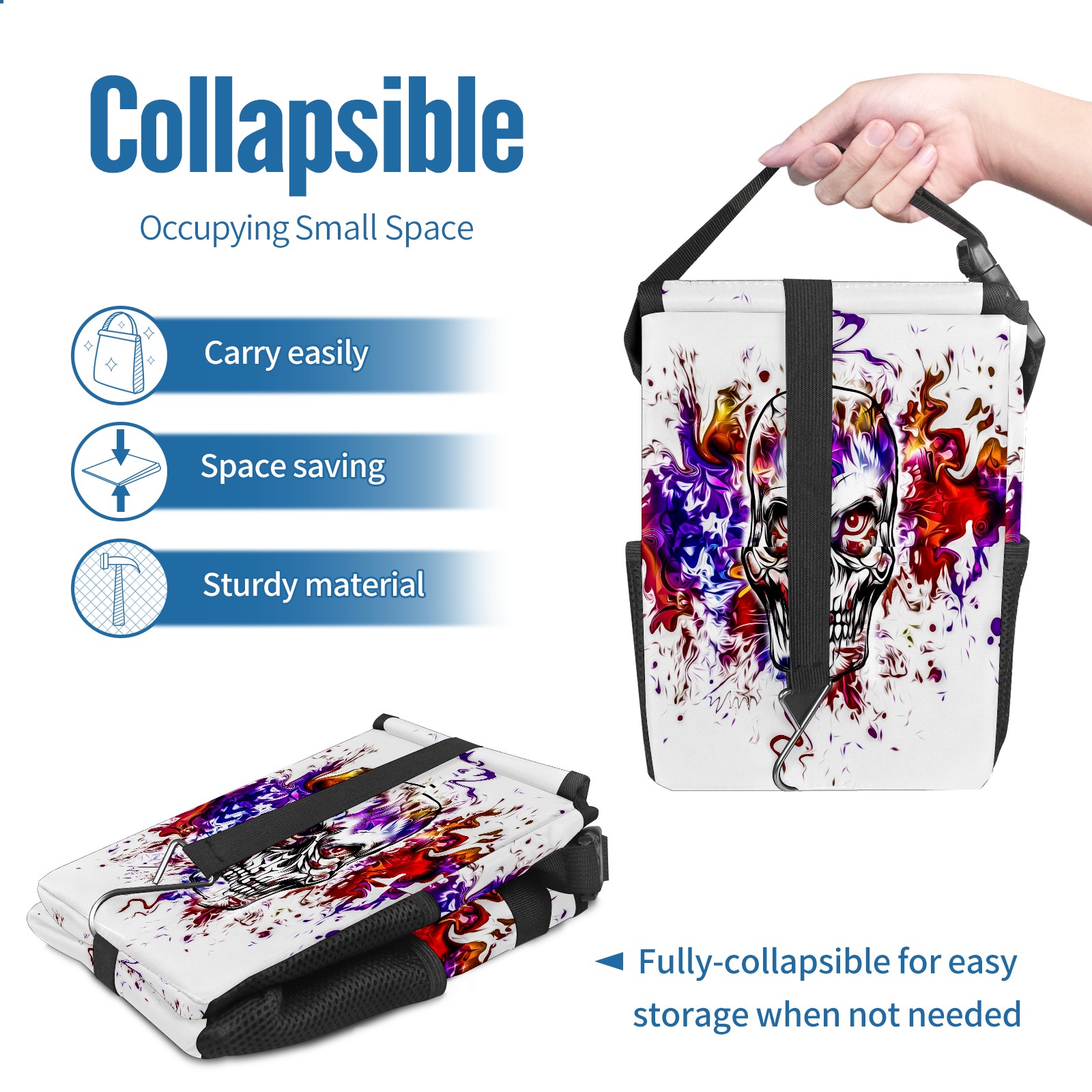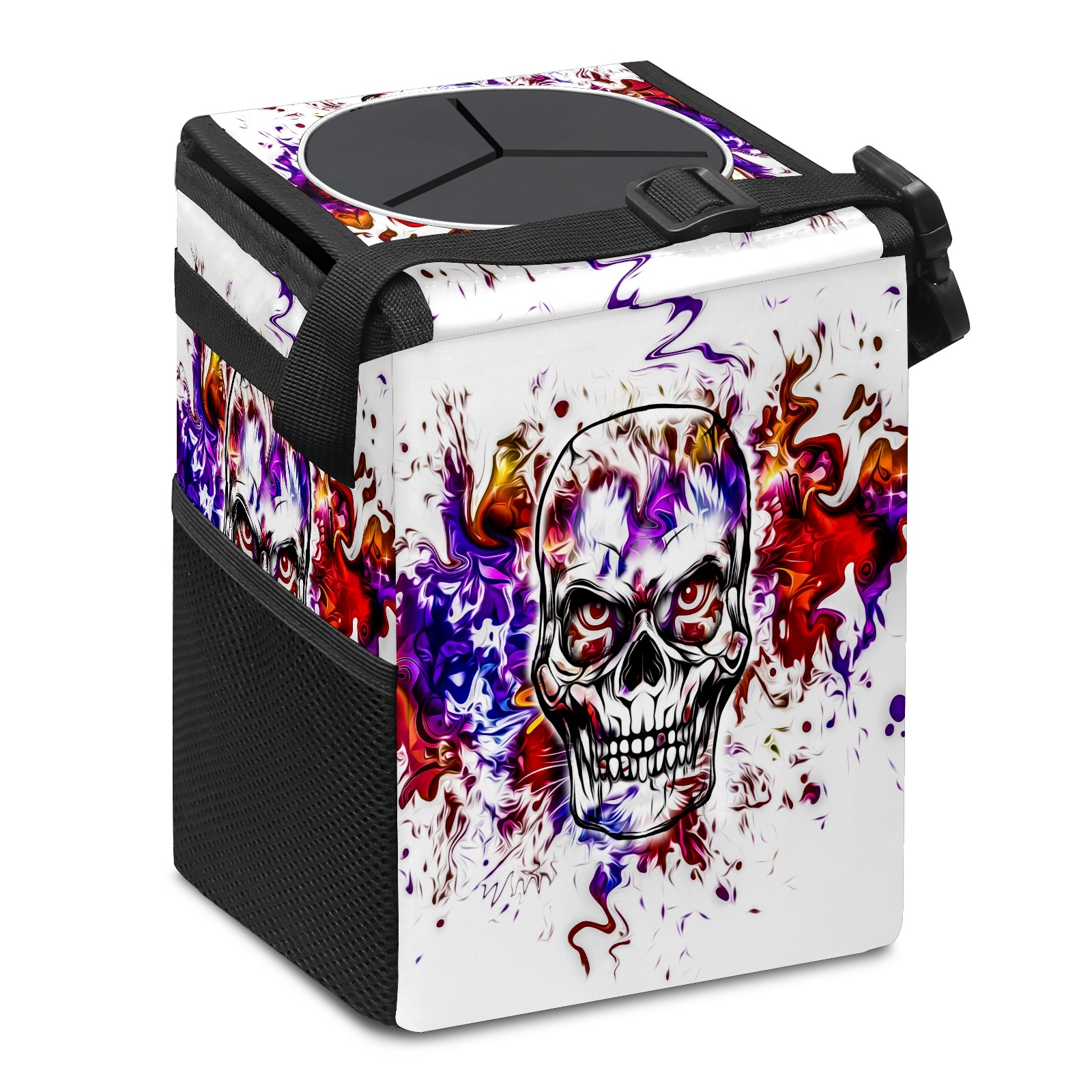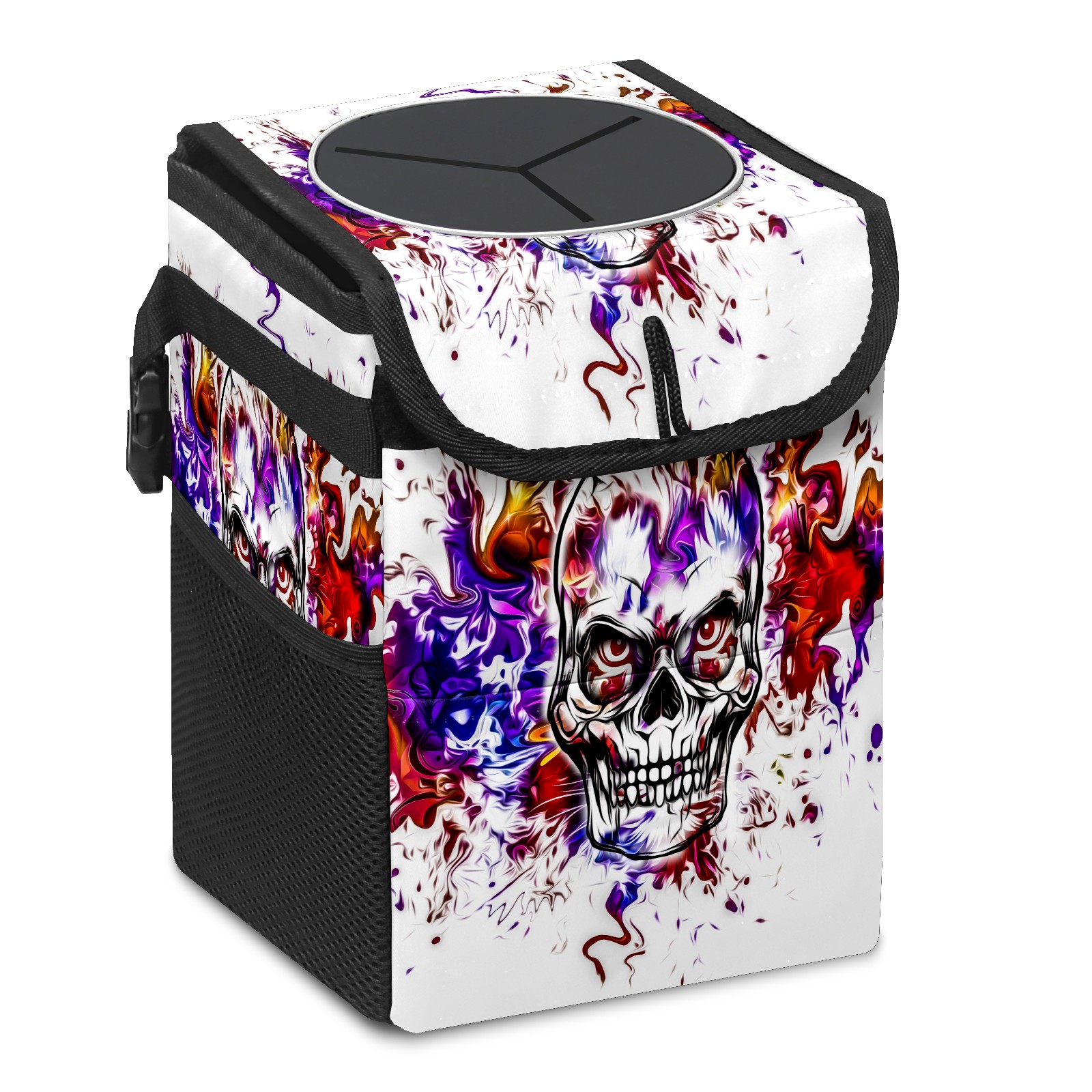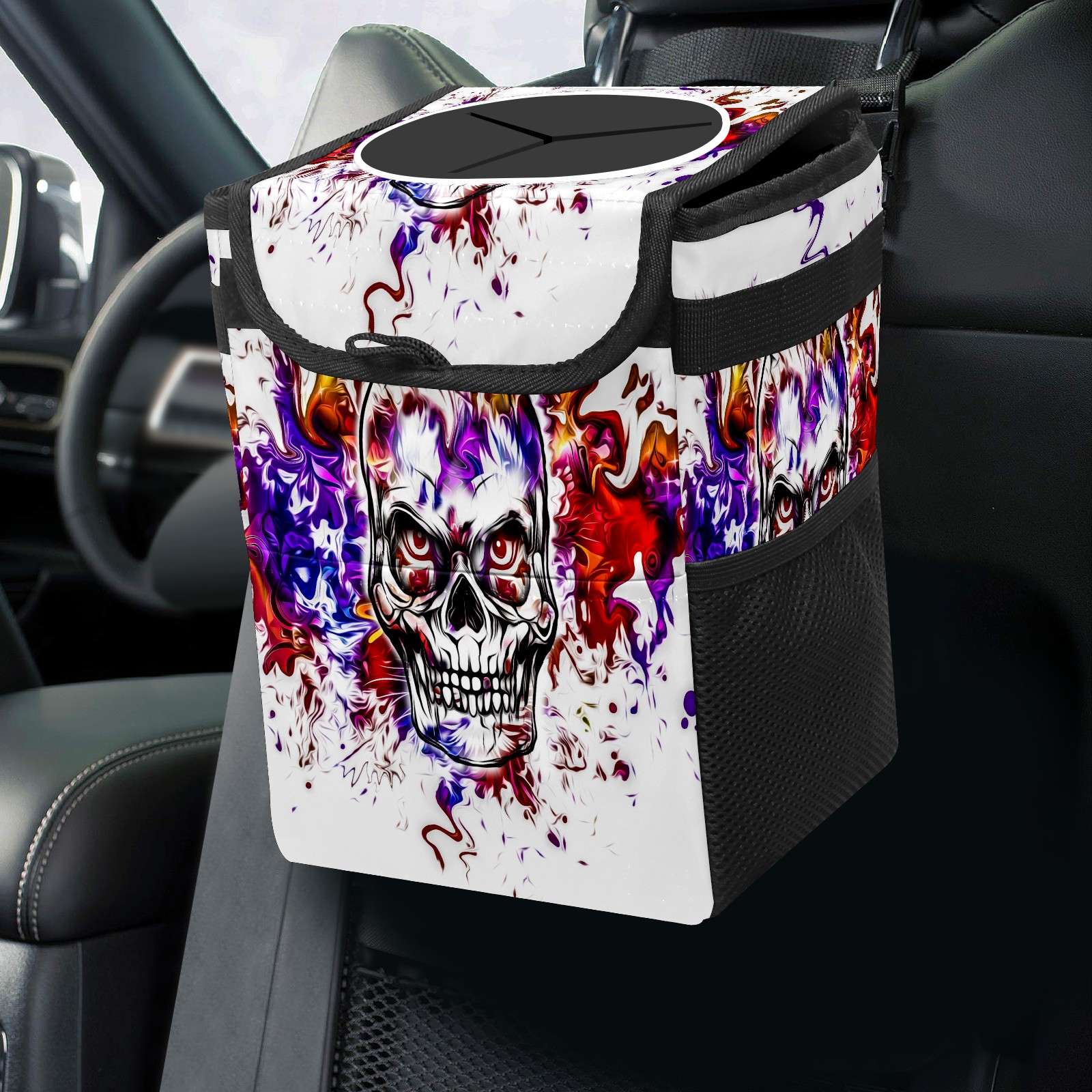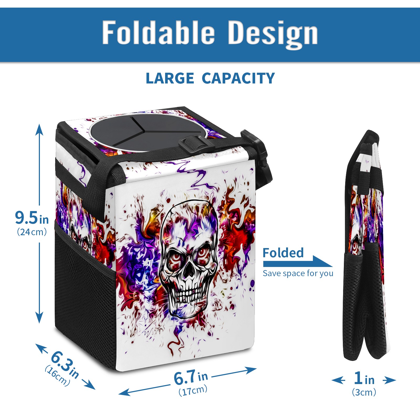• Эта многофункциональная автомобильная мусорная корзина отличается стильным принтом, сочетающим в себе практичность и эстетику. Изготовленная из высококачественной саржевой ткани с плетеными ремнями, она прочная, долговечная и износостойкая. Размеры корзины составляют 24×17×16 см (9,5×6,7×6,3 дюйма). Верхнее отверстие имеет прорезиненное покрытие для удобной утилизации мусора; боковые сетчатые карманы и передний карман обеспечивают удобное хранение закусок, телефонов и других мелких предметов.