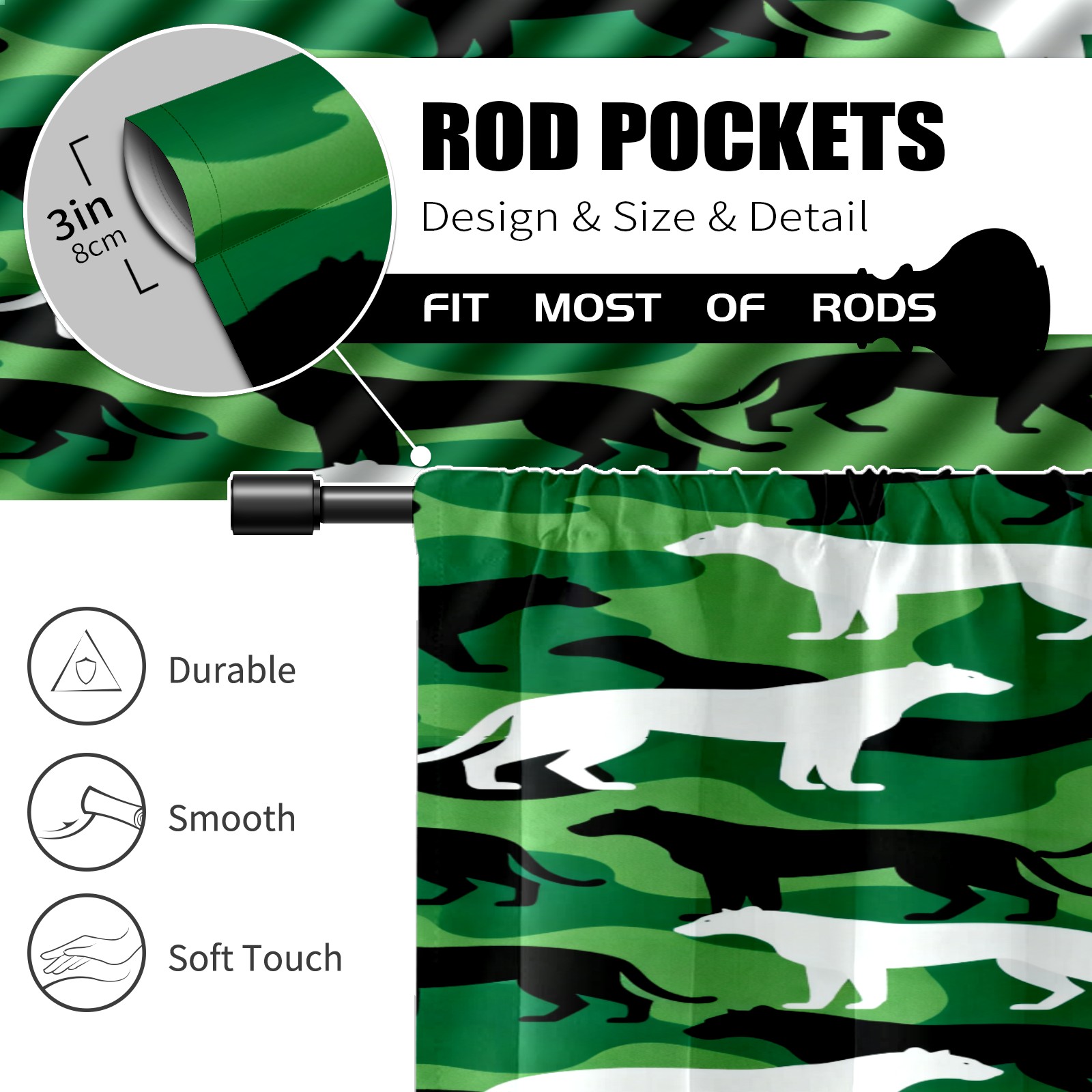 Шторы-панно для дома, декоративные драпировки для гостиной и спальни, легкие и прочные, Camouflage Silhouette Pattern Green