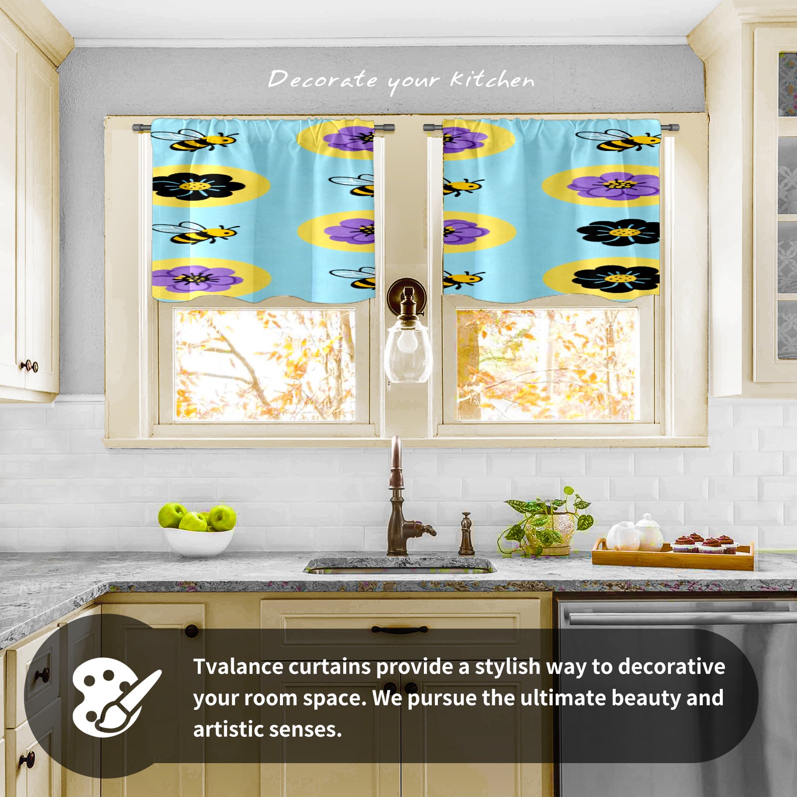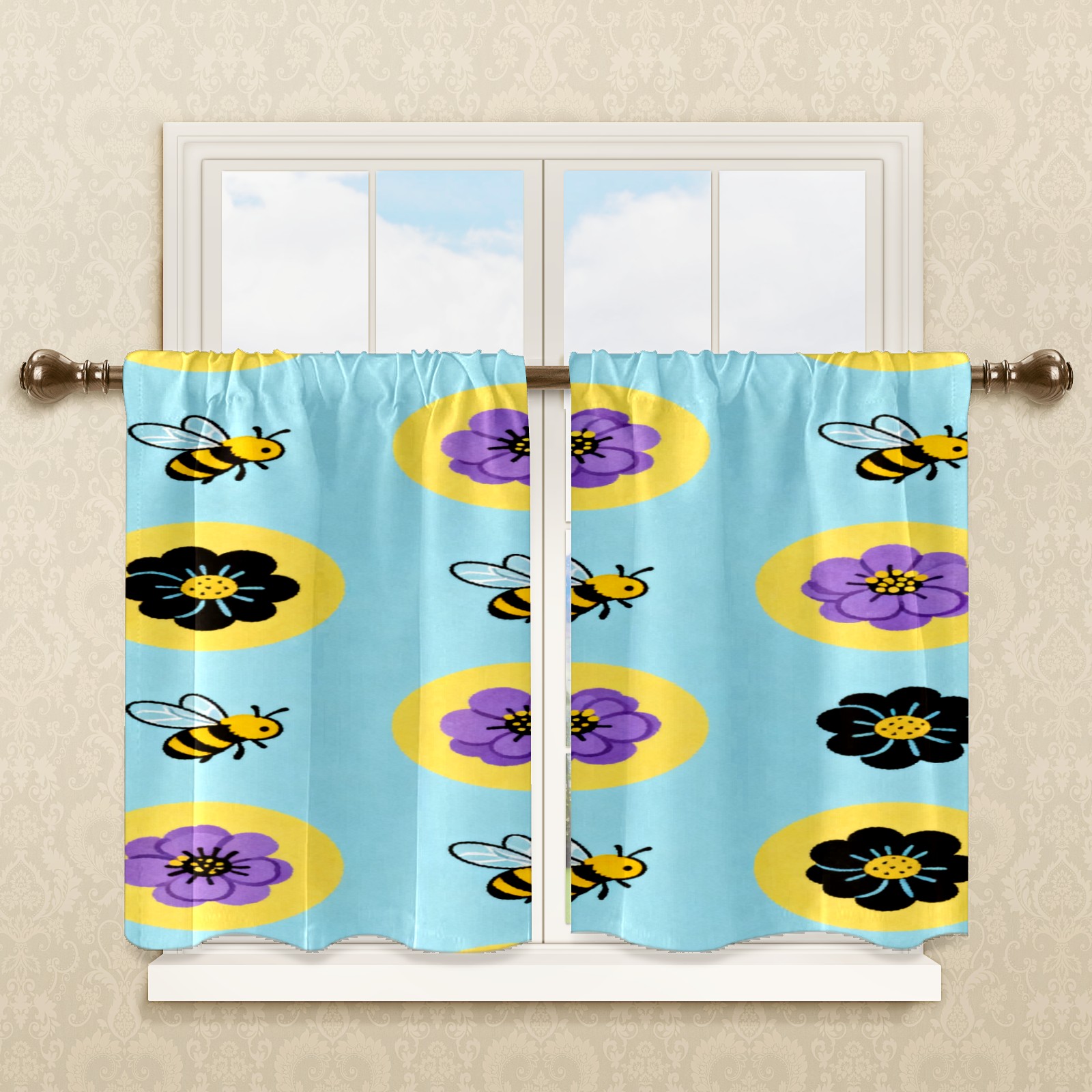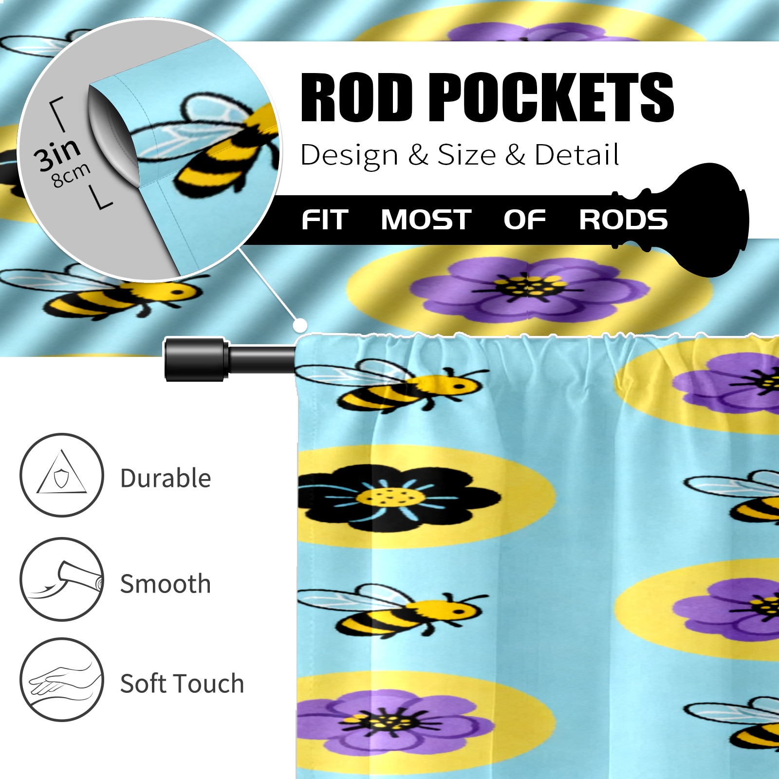 Шторы-панно для дома, декоративные драпировки для гостиной и спальни, легкие и прочные, Bee And Flower Pattern
