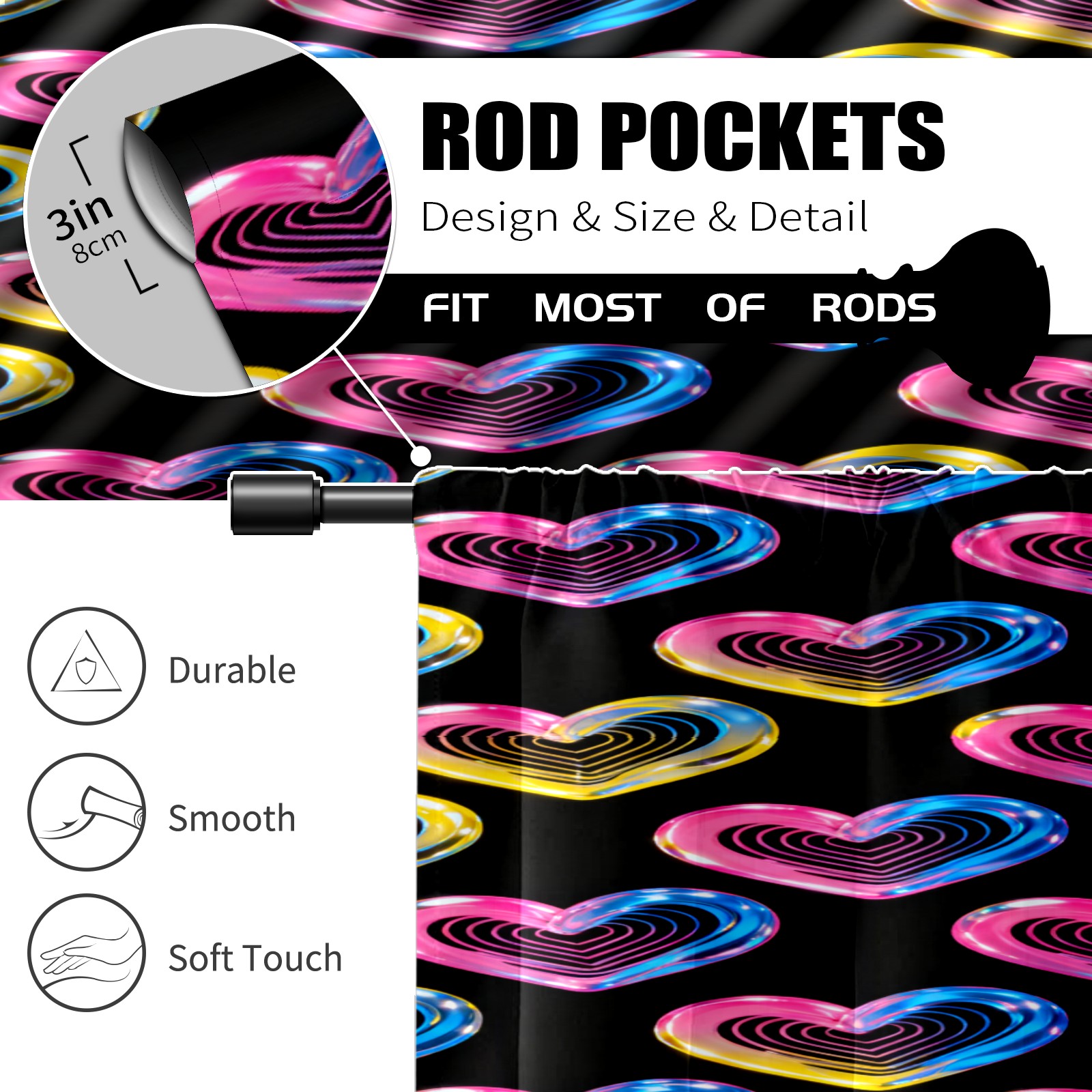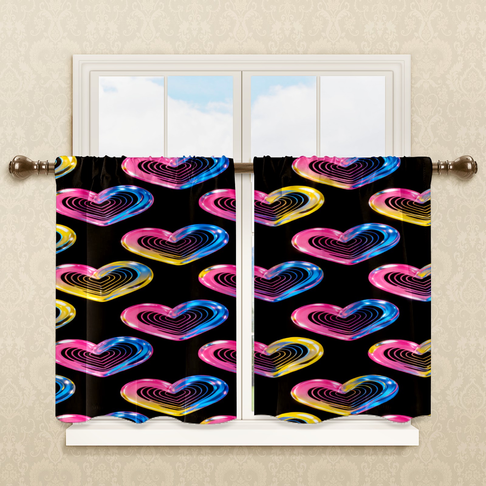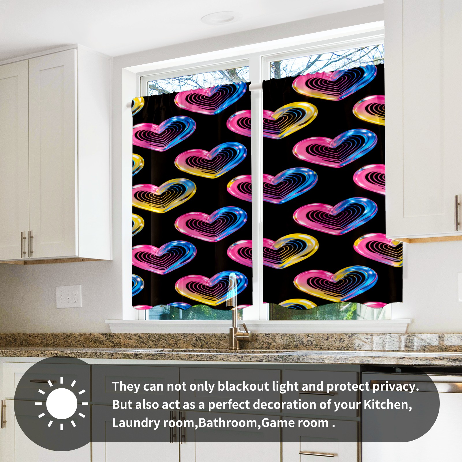 Шторы-панно для дома, декоративные драпировки для гостиной и спальни, легкие и прочные, Colorful Heart Pattern