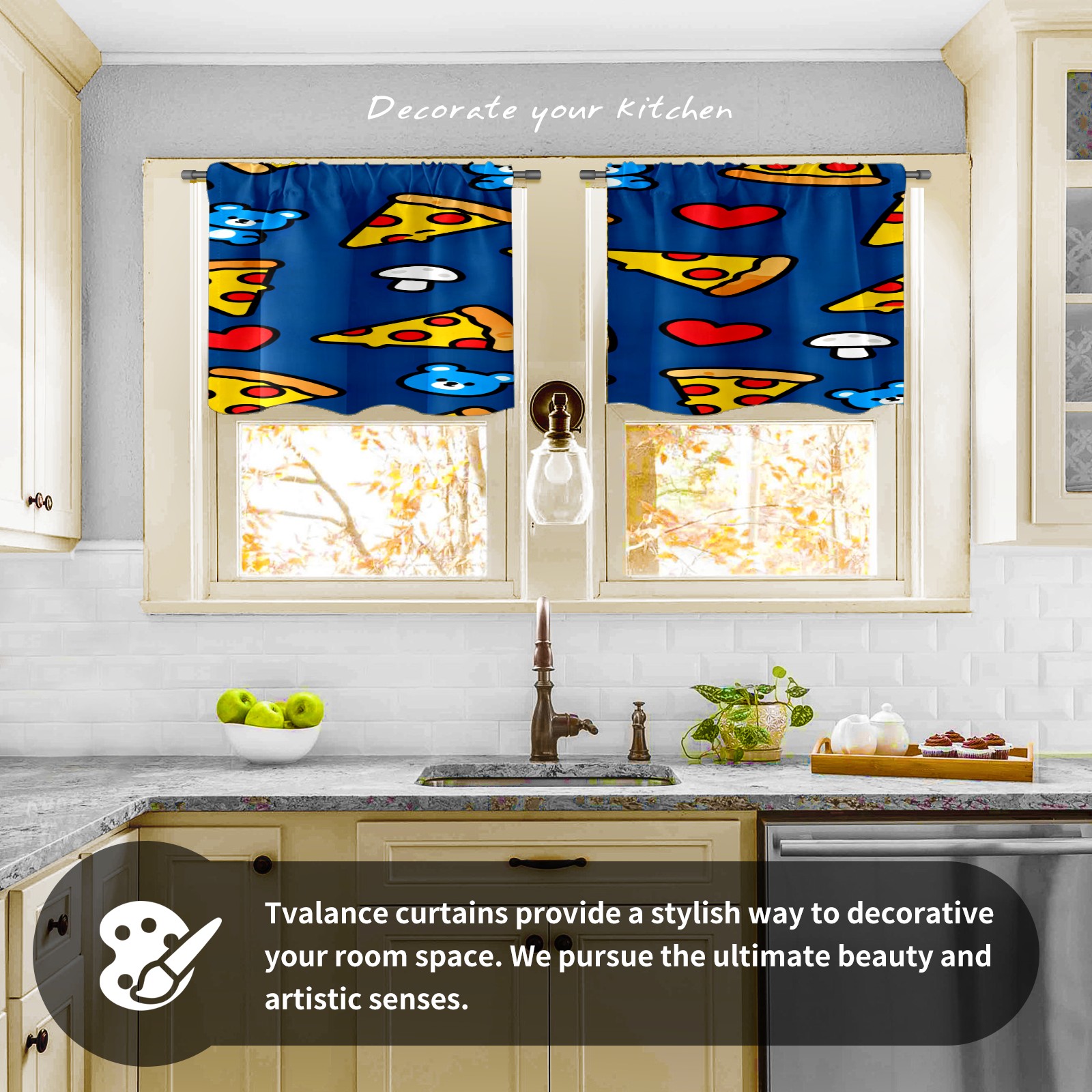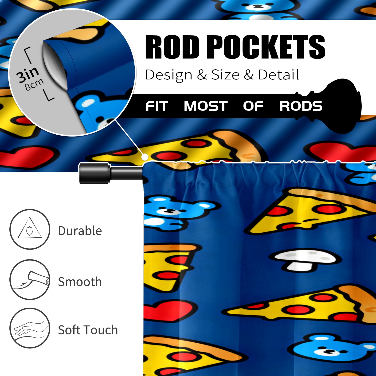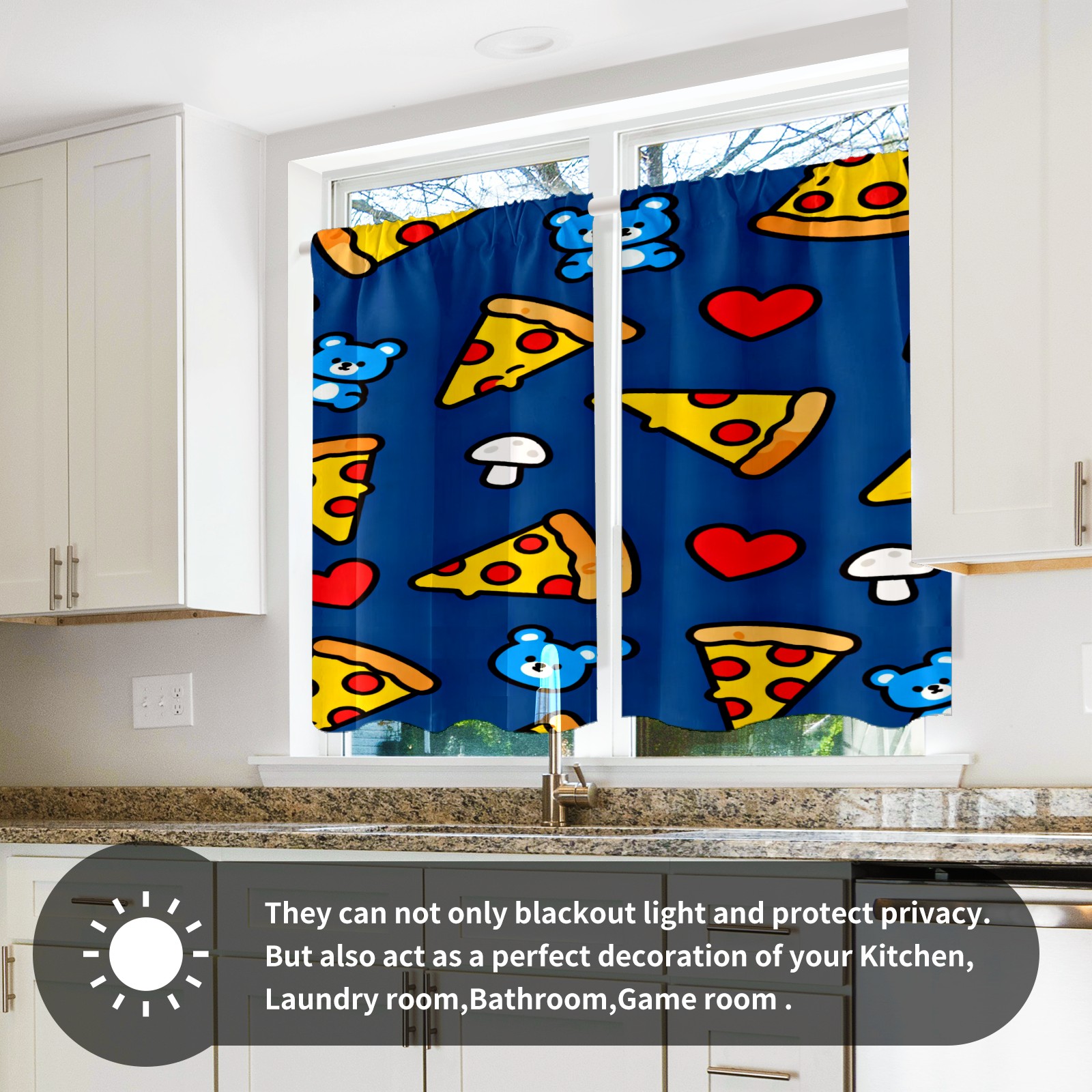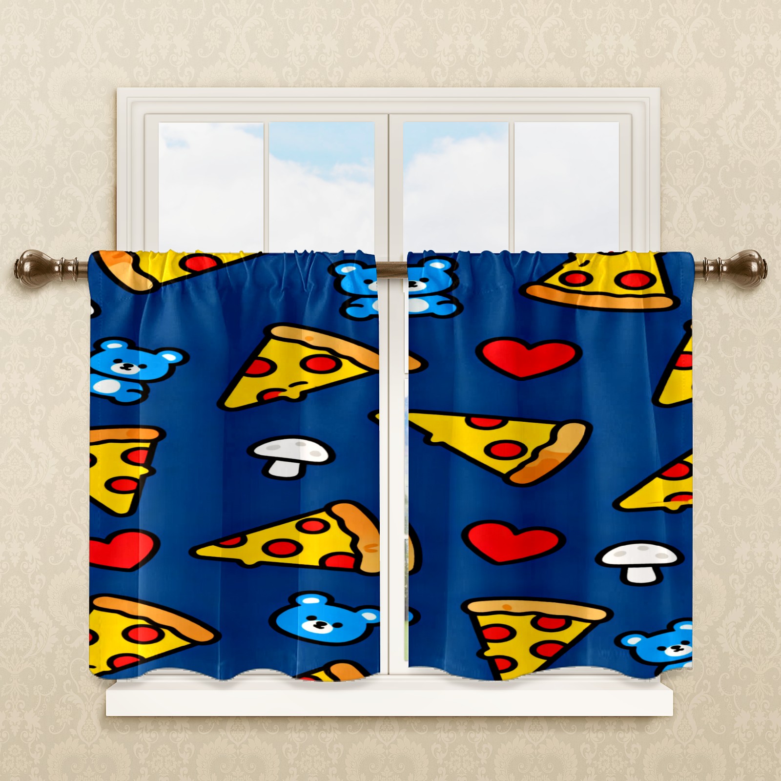 Шторы-панно для дома, декоративные драпировки для гостиной и спальни, легкие и прочные, Cartoon Pizza Pattern