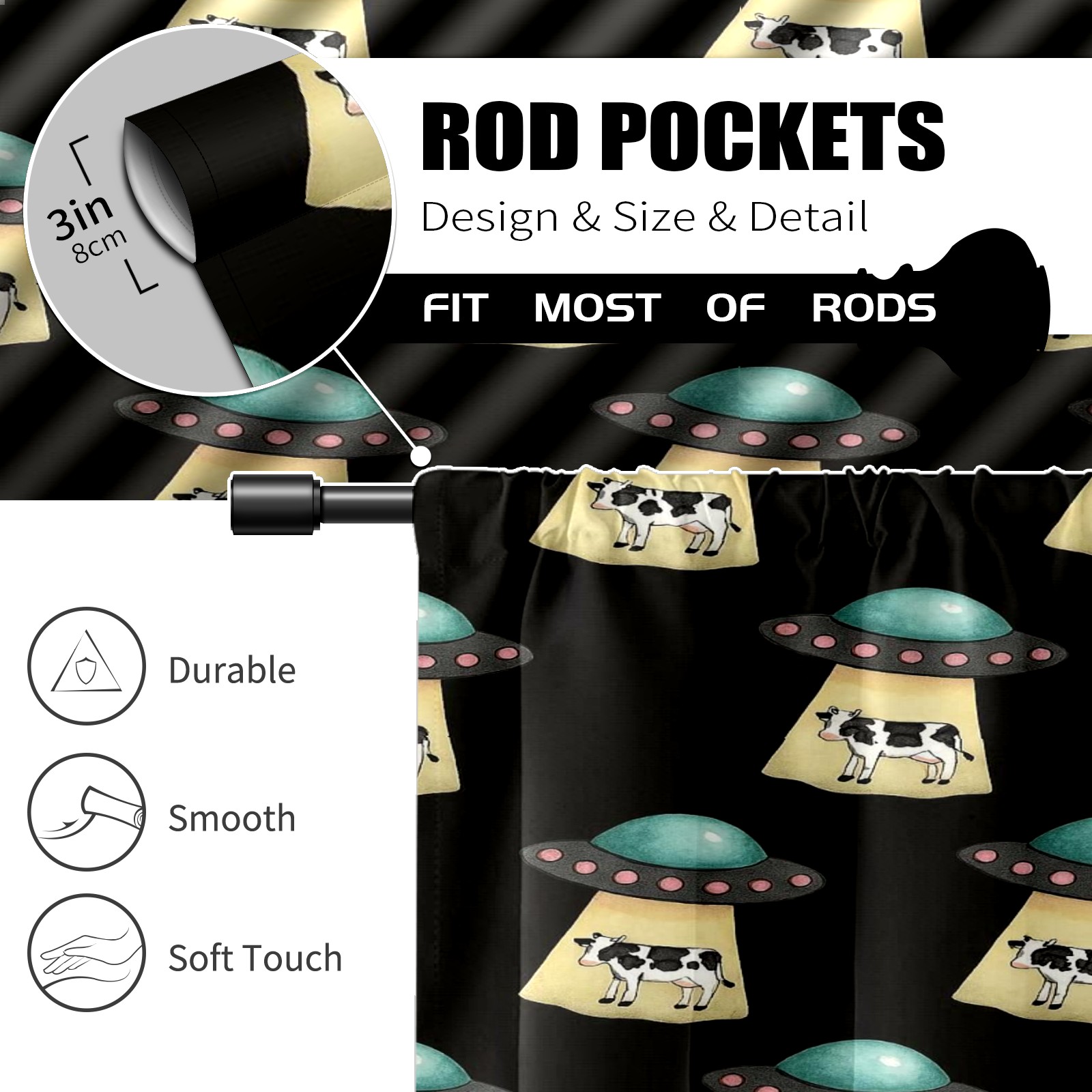 Шторы-панно для дома, декоративные драпировки для гостиной и спальни, легкие и прочные, Black UFOs