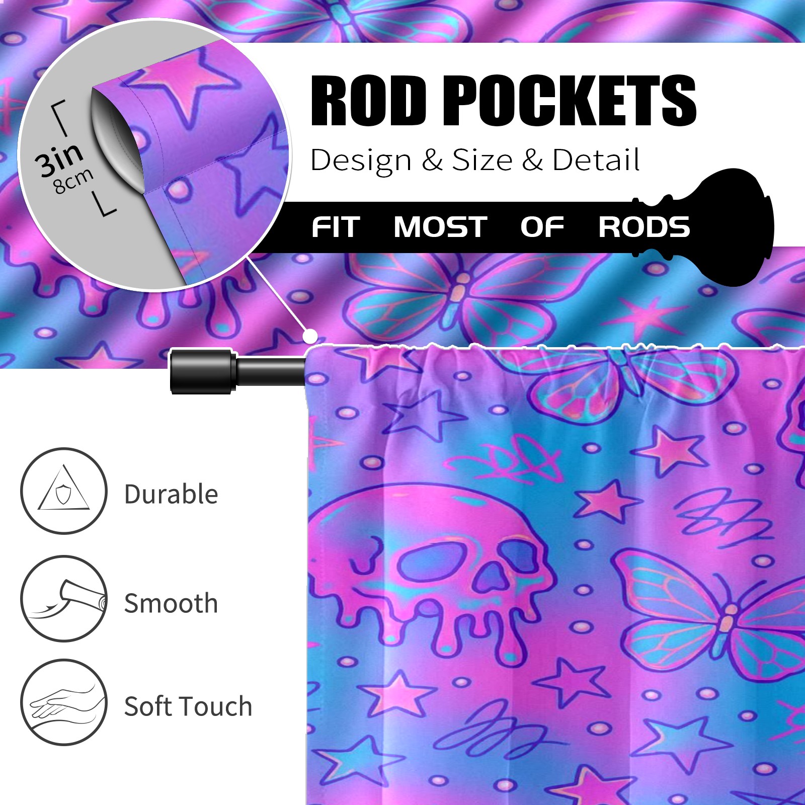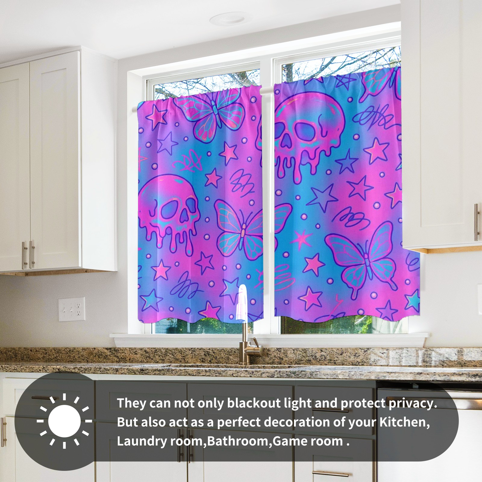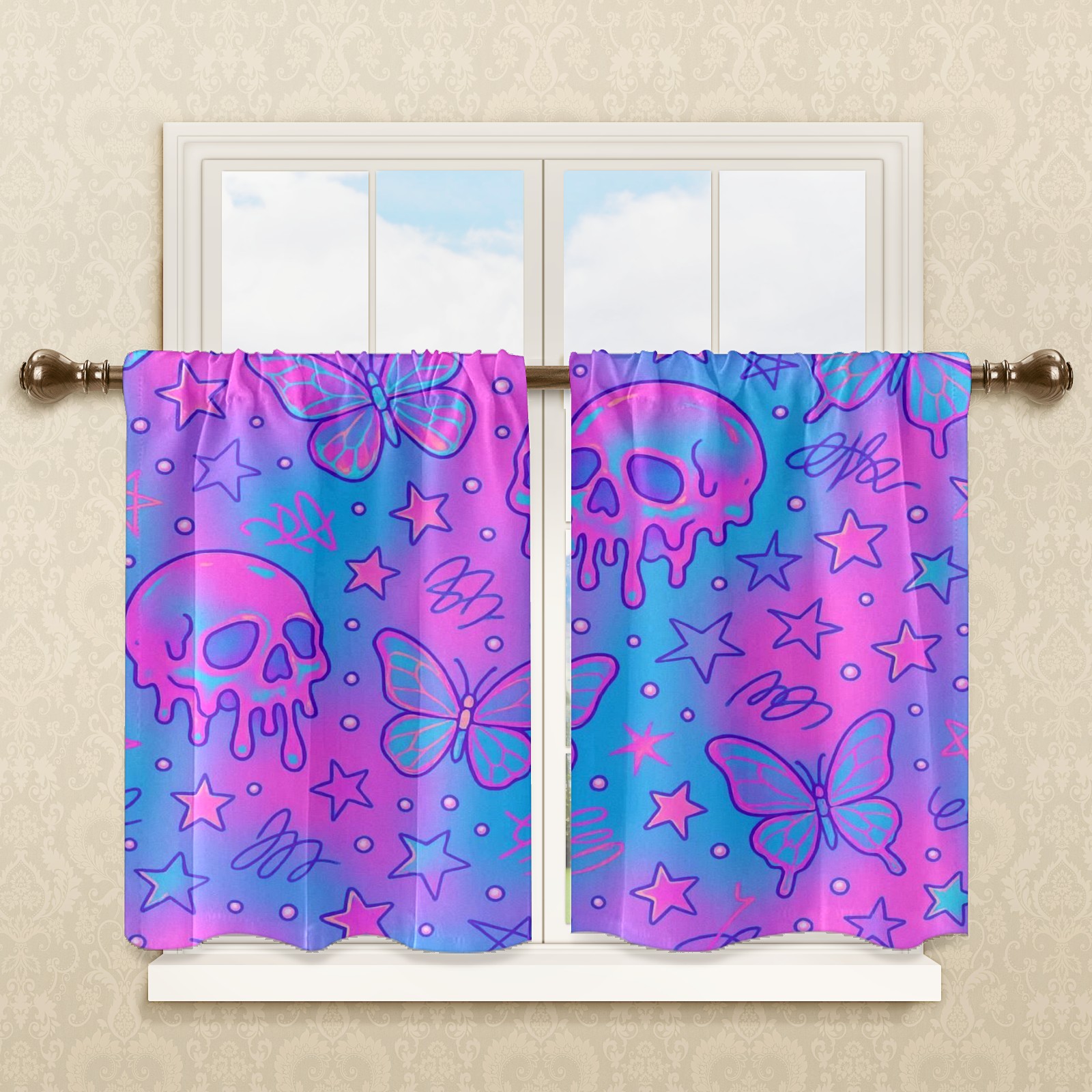 Шторы-панно для дома, декоративные драпировки для гостиной и спальни, легкие и прочные, Pink Skulls Butterflies