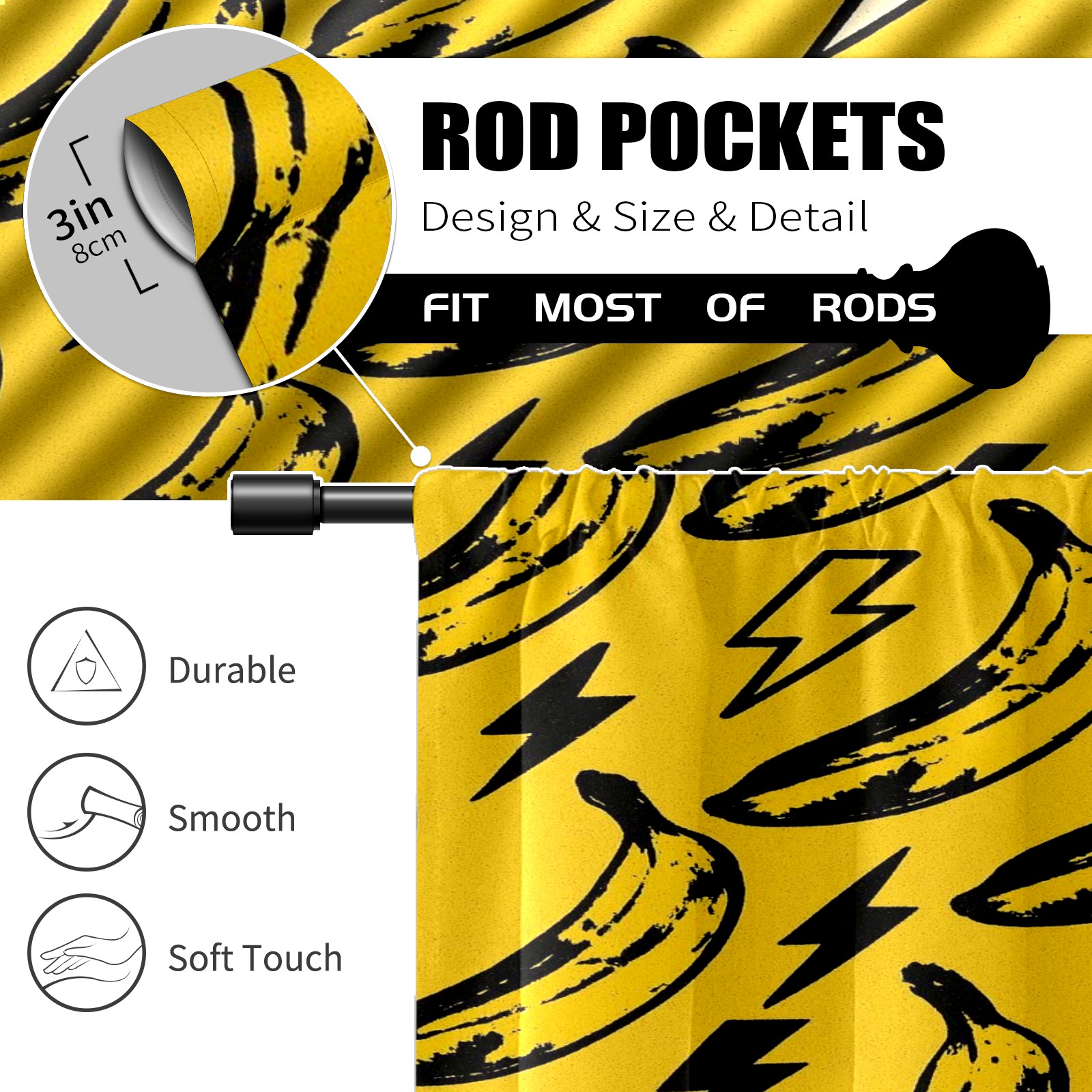 Шторы-панно для дома, декоративные драпировки для гостиной и спальни, легкие и прочные, Yellow Bananas Lightning