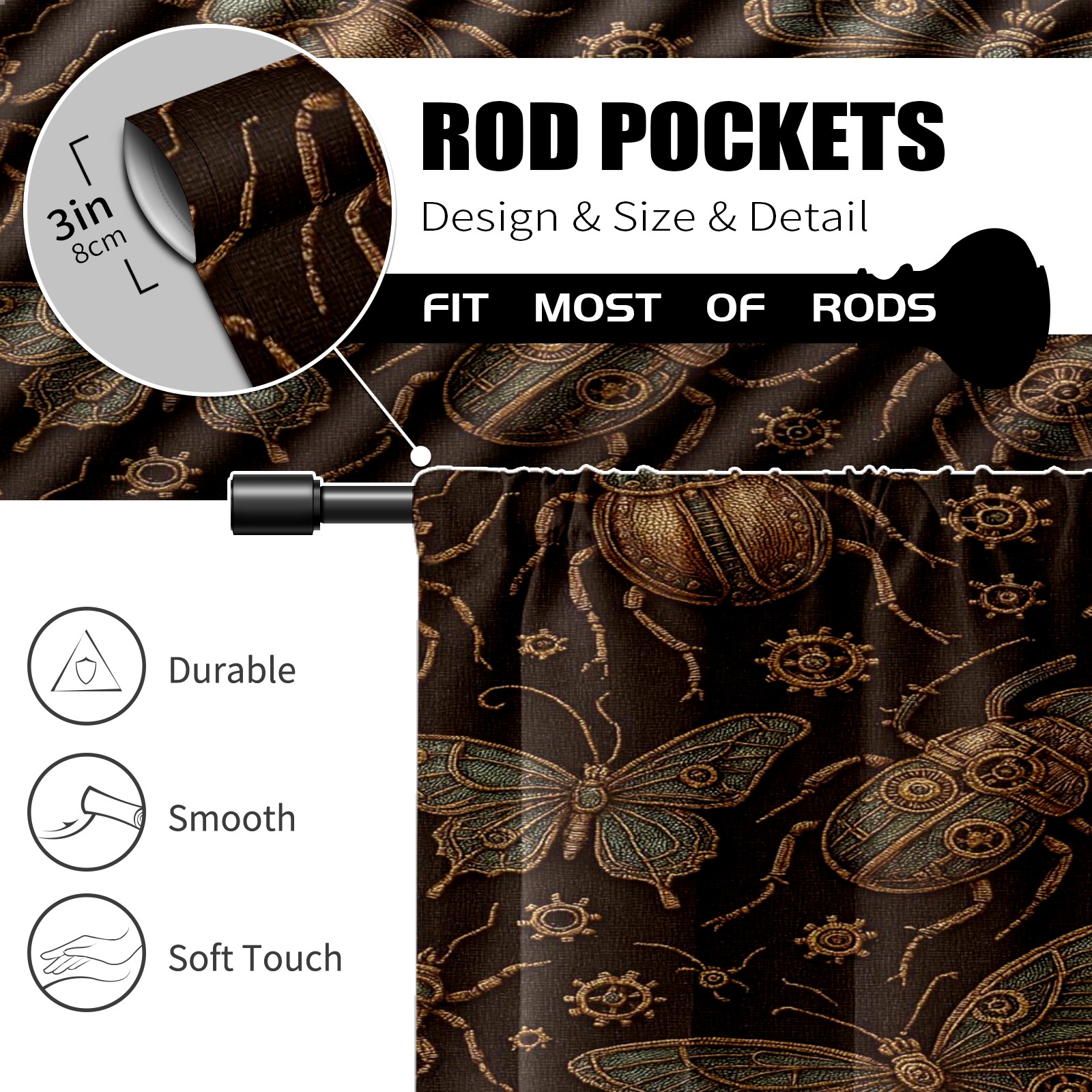 Шторы-панно для дома, декоративные драпировки для гостиной и спальни, легкие и прочные, Brown Butterflies Bugs