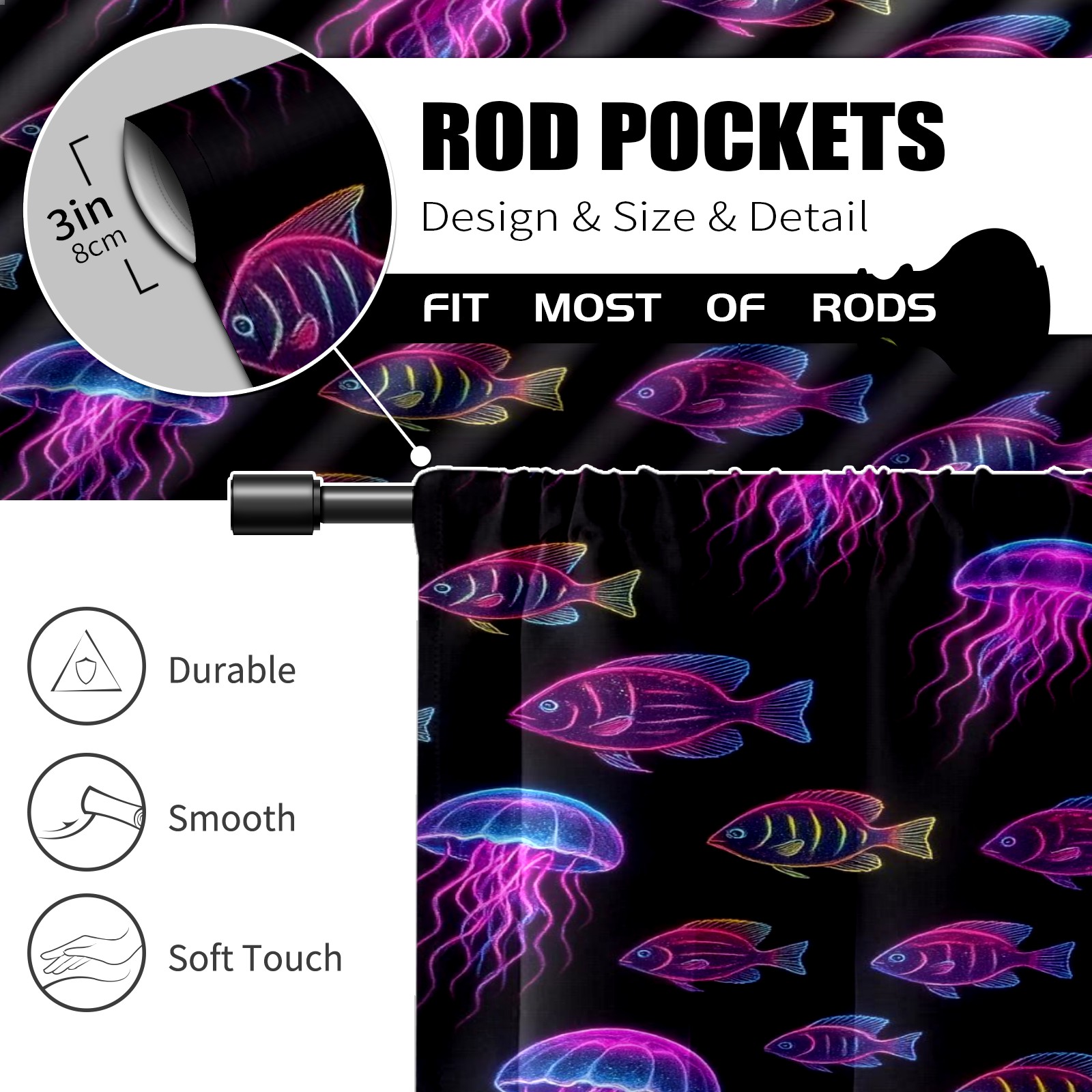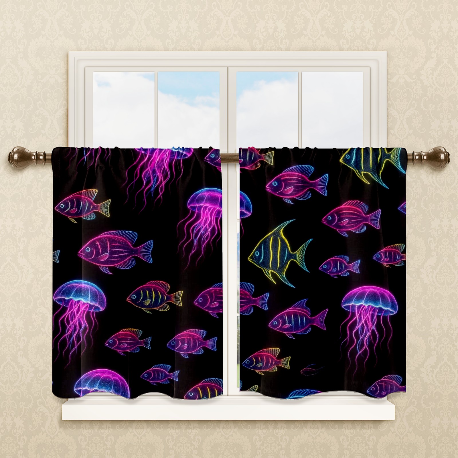Шторы-панно для дома, декоративные драпировки для гостиной и спальни, легкие и прочные, Purple Jellyfish Fish