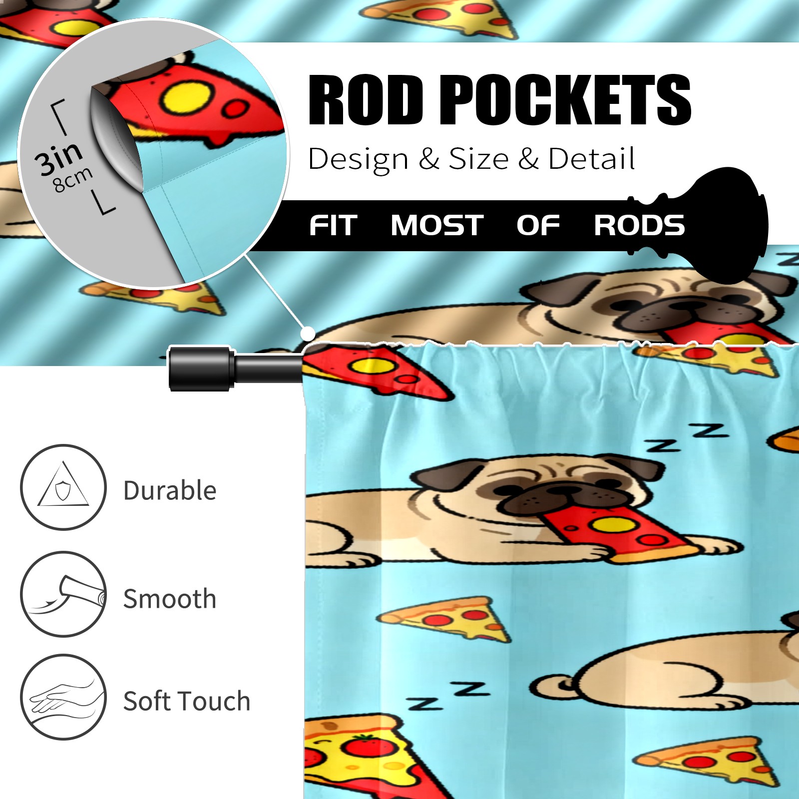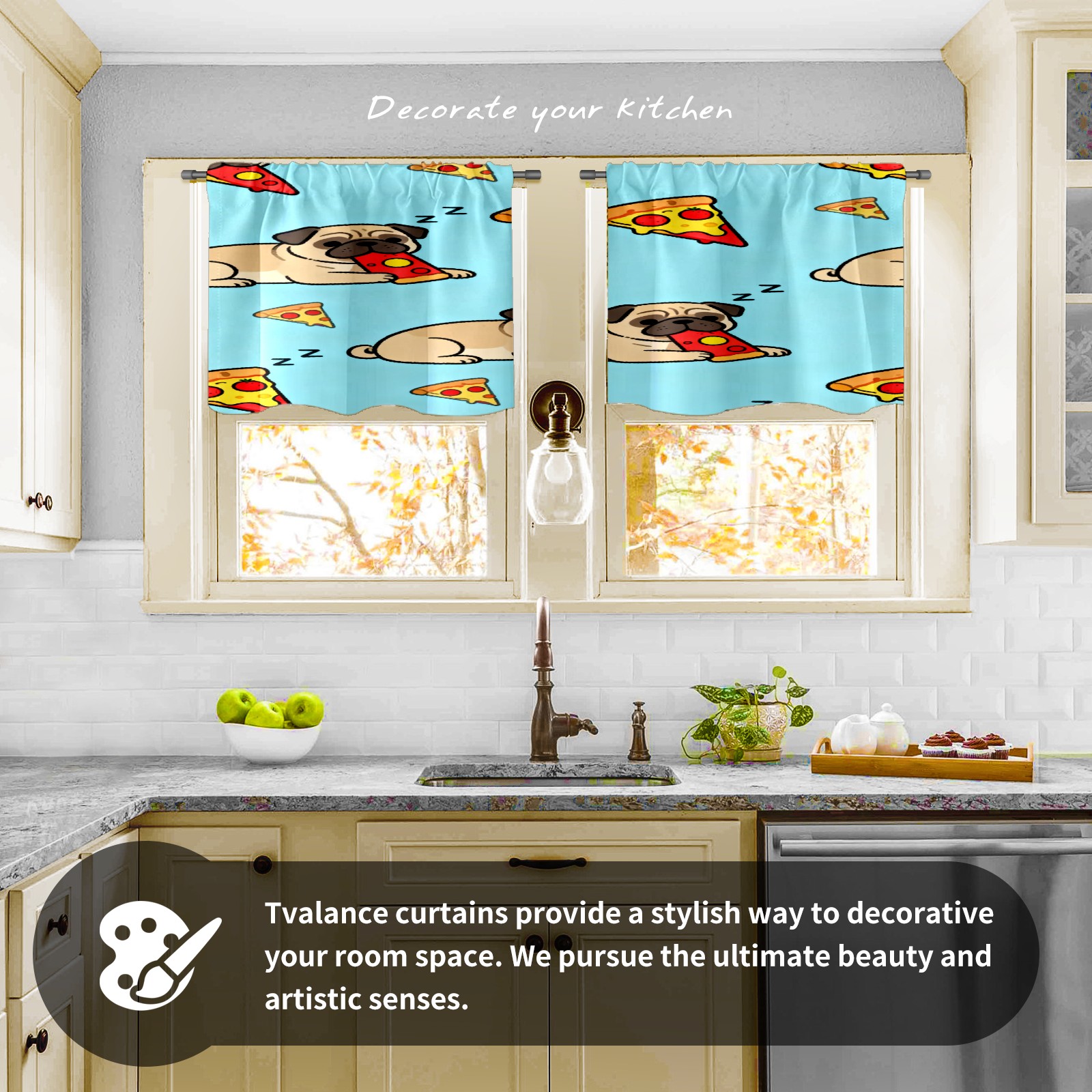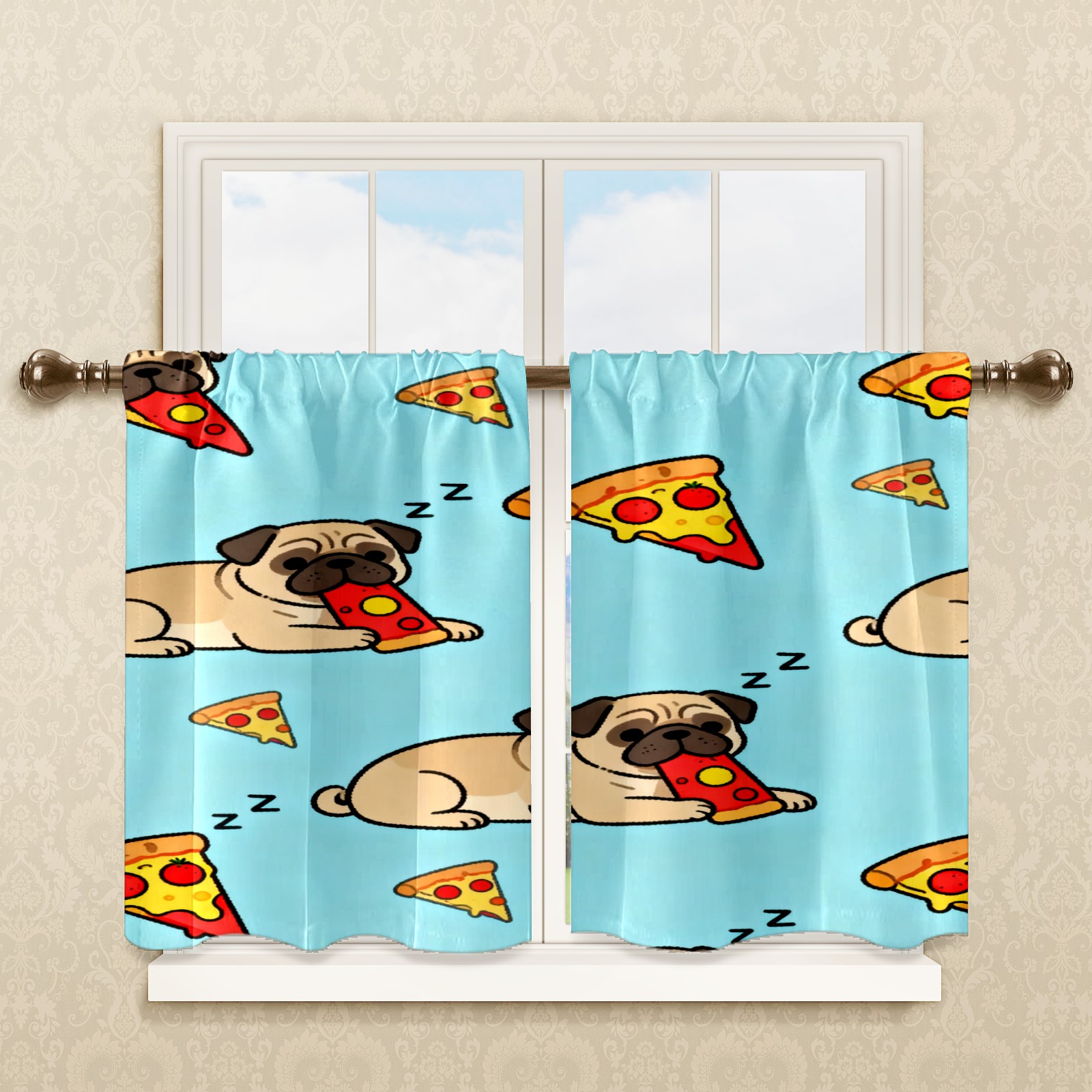 Шторы-панно для дома, декоративные драпировки для гостиной и спальни, легкие и прочные, Light Brown Pug Pizza