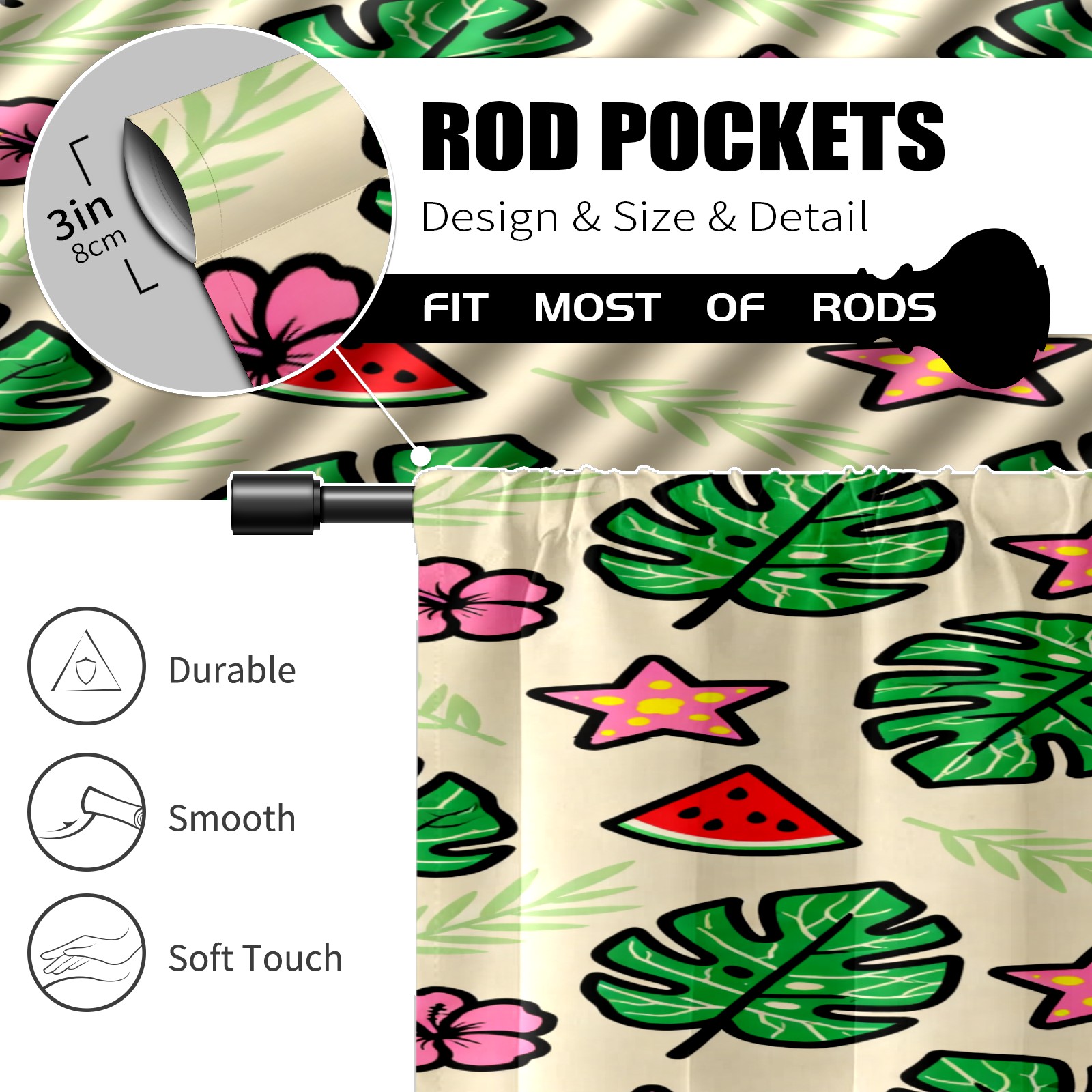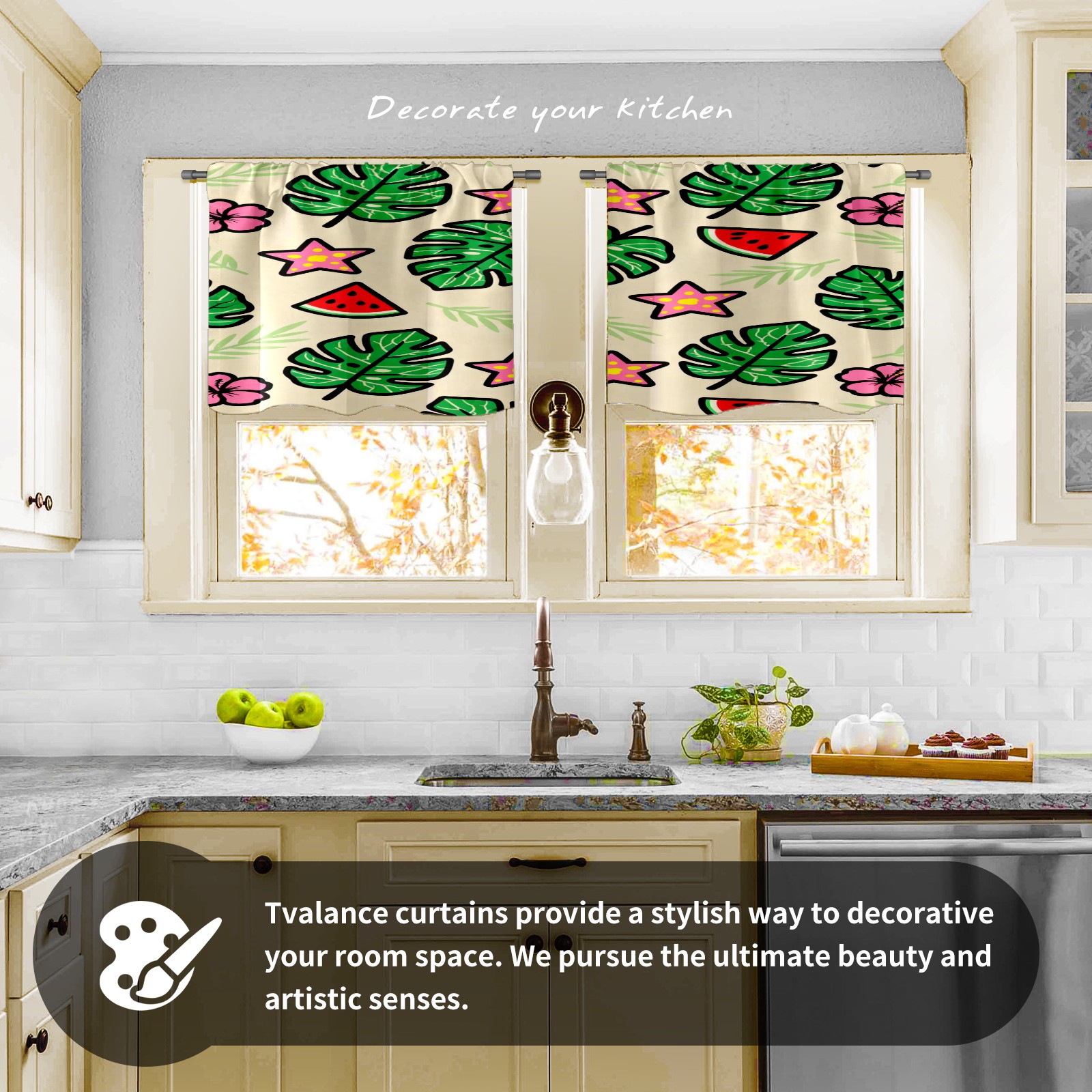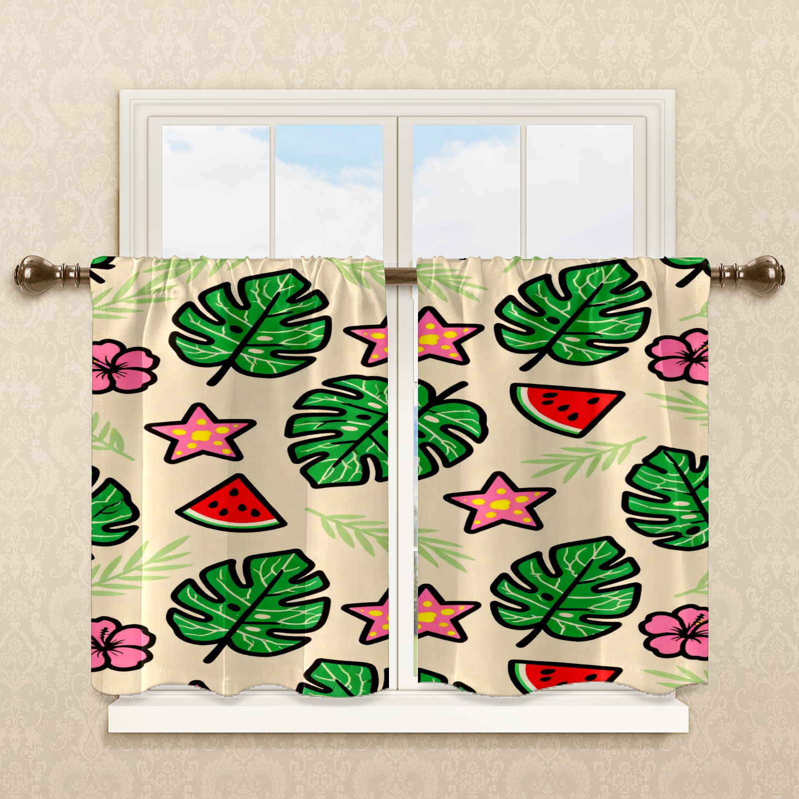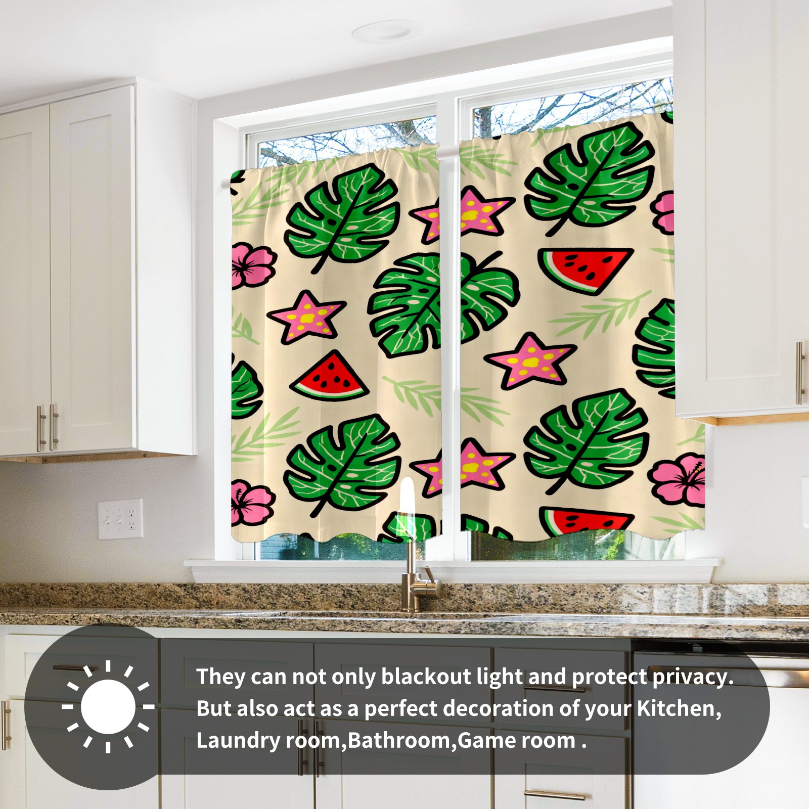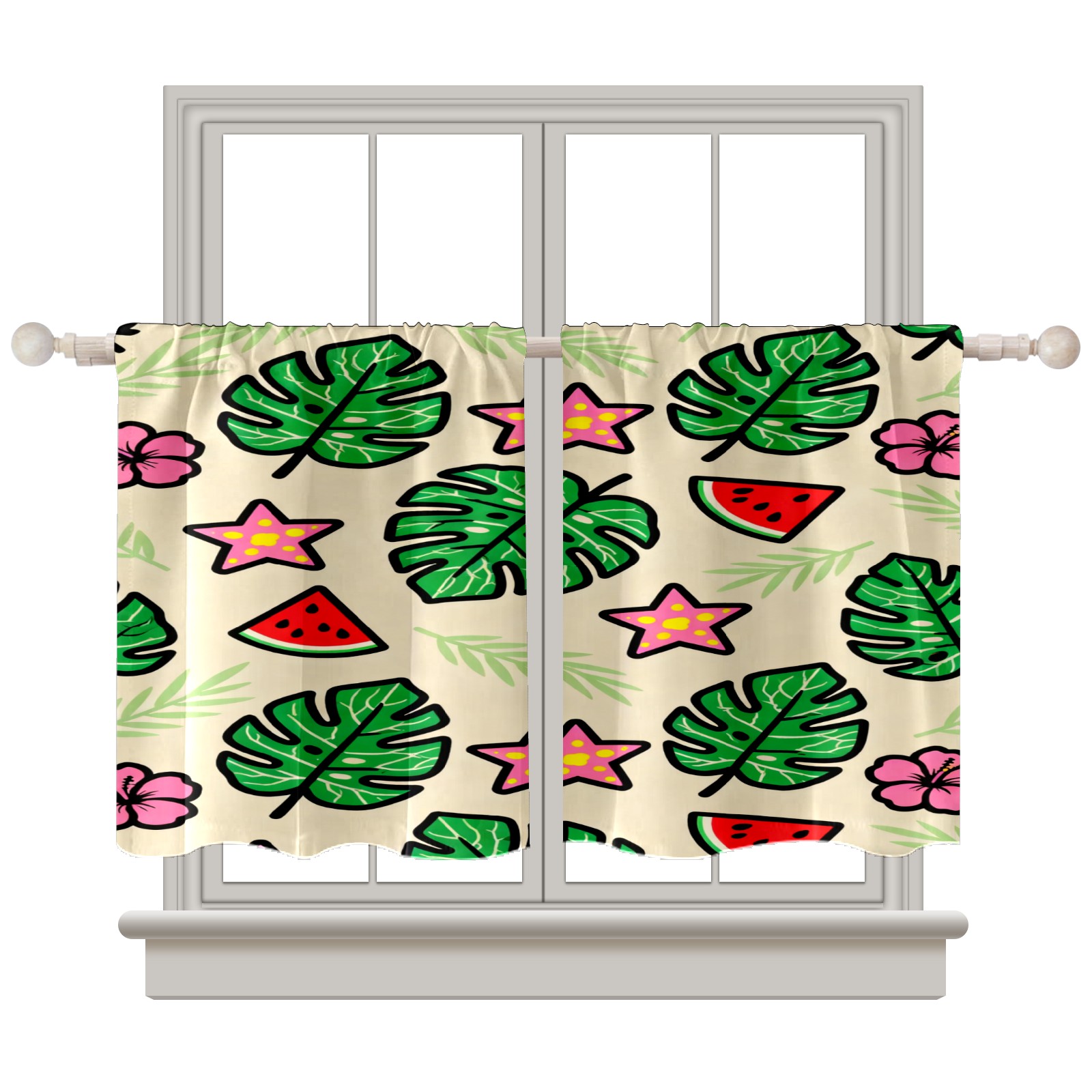 Шторы-панно для дома, декоративные драпировки для гостиной и спальни, легкие и прочные, Green Monstera Leaves And Flowers